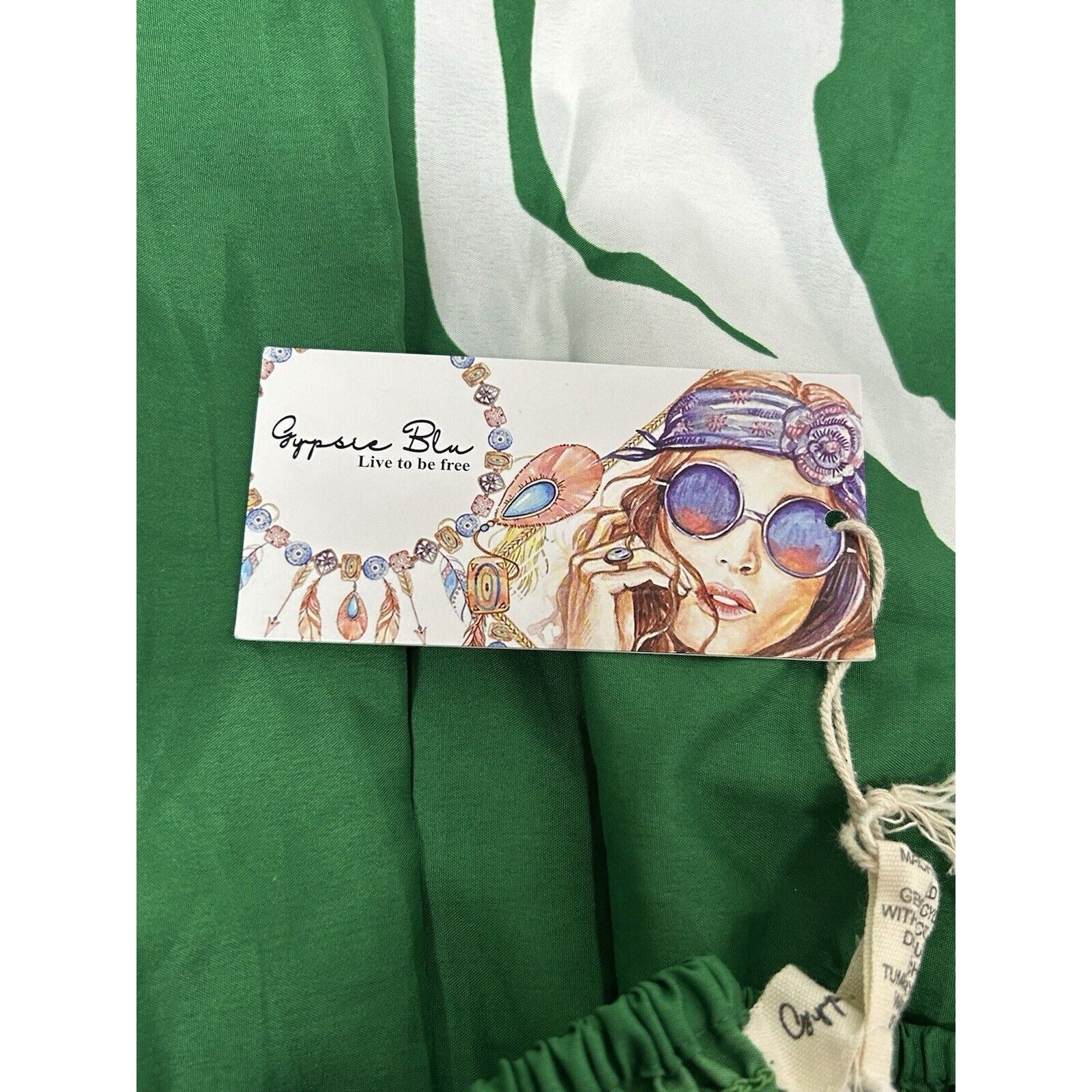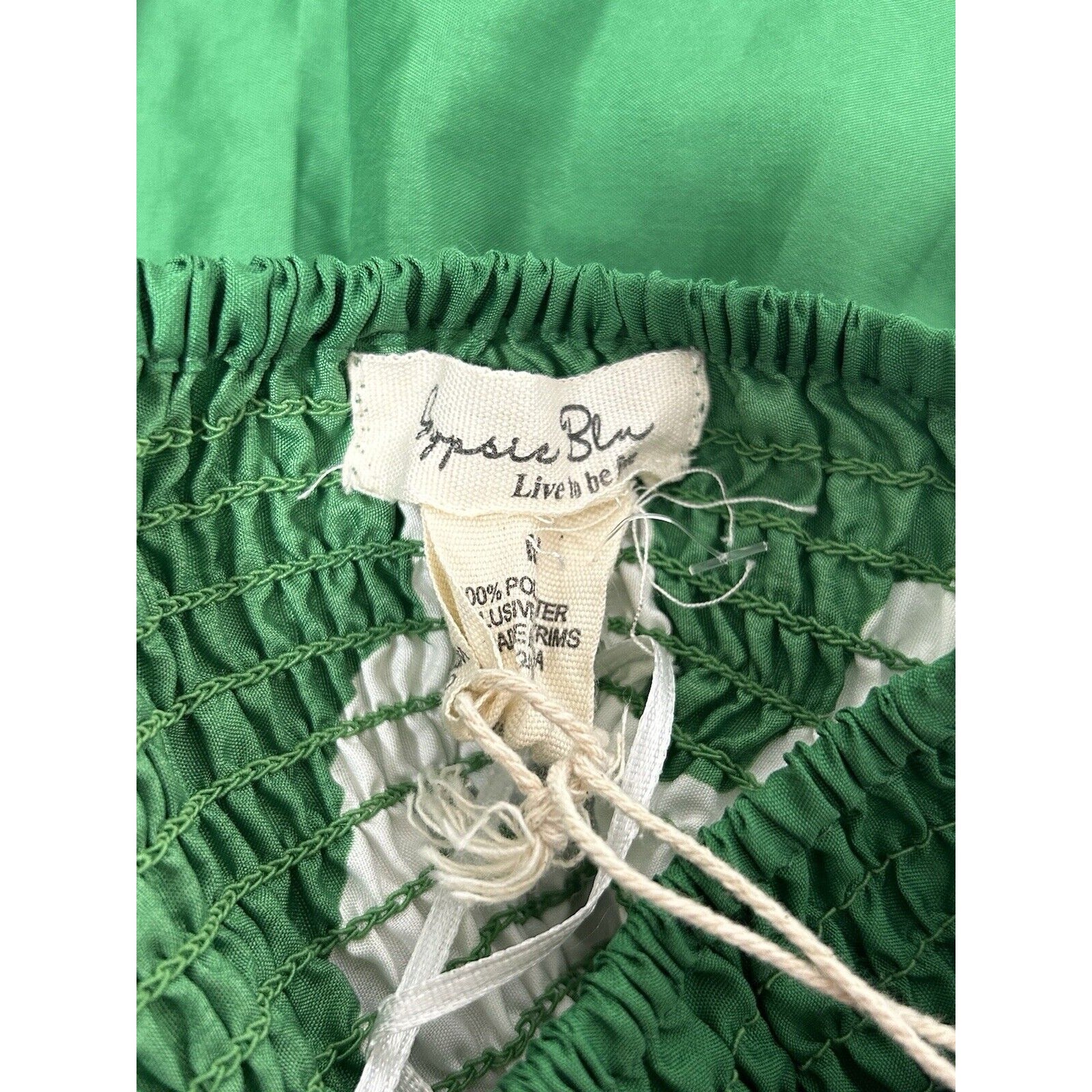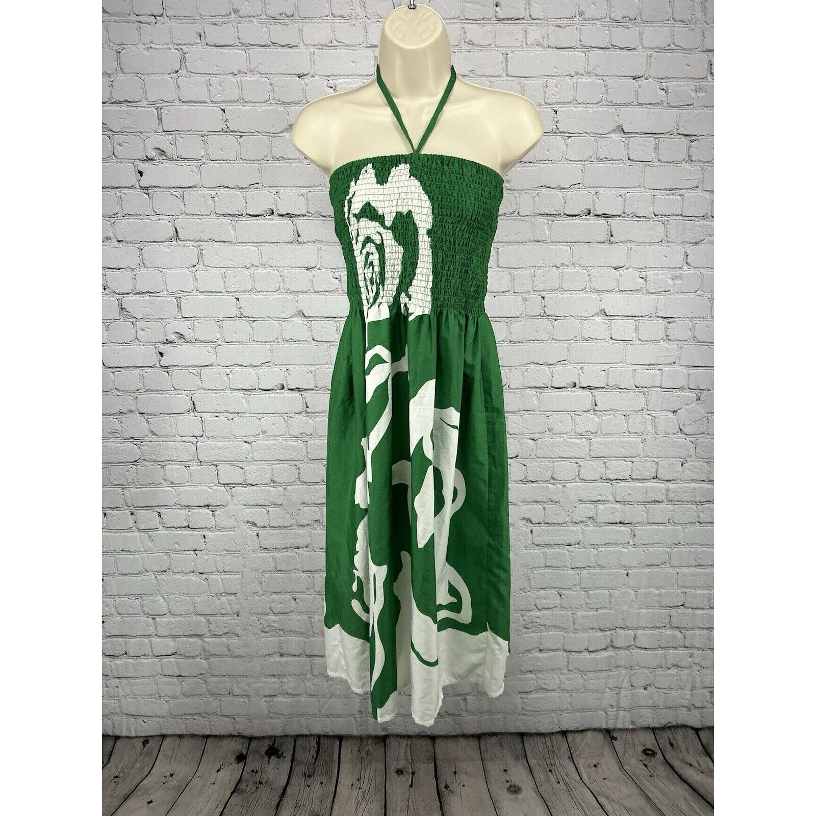 NWD Gypsie Blu Green White Shirred Halter Strapless Midi Tube Top Dress M