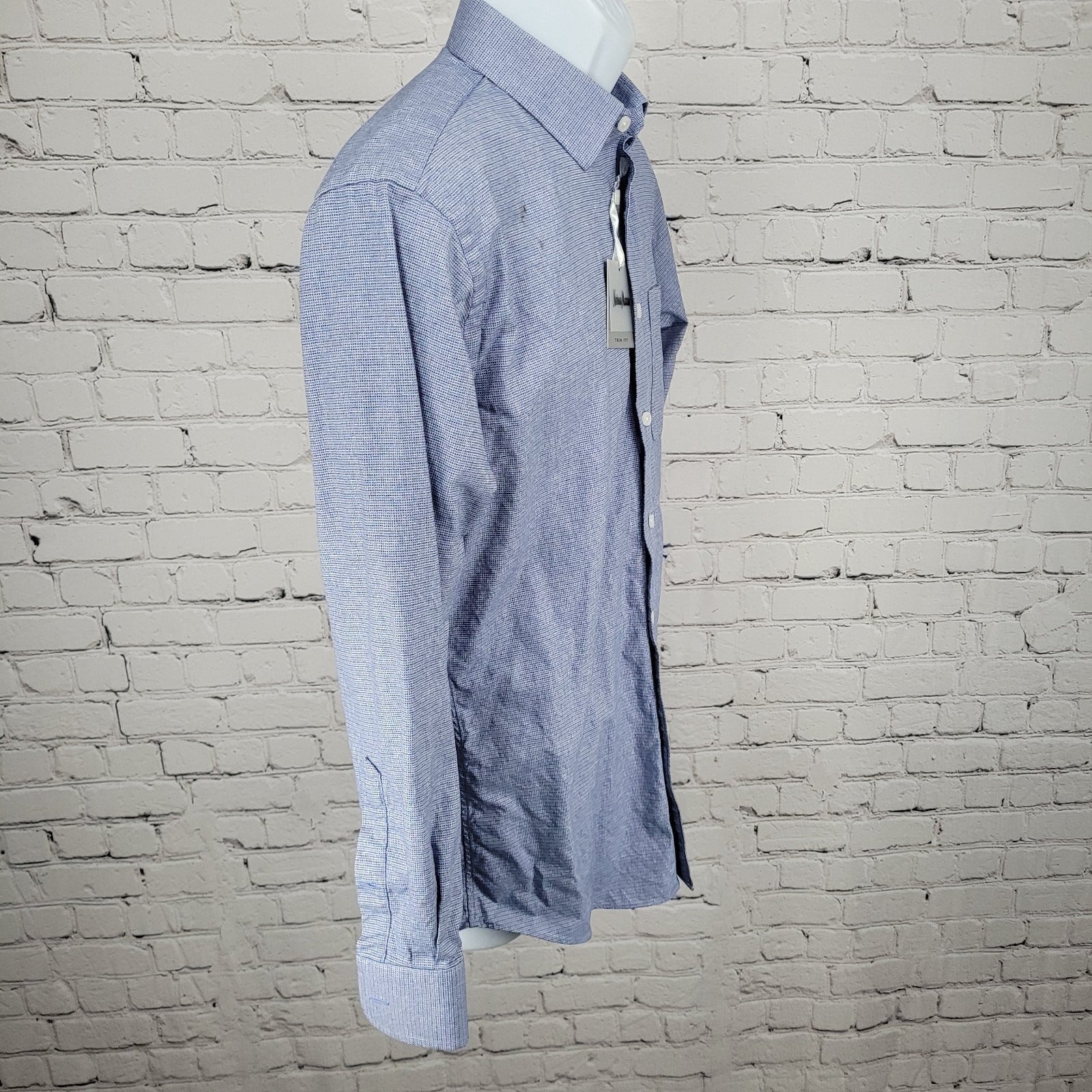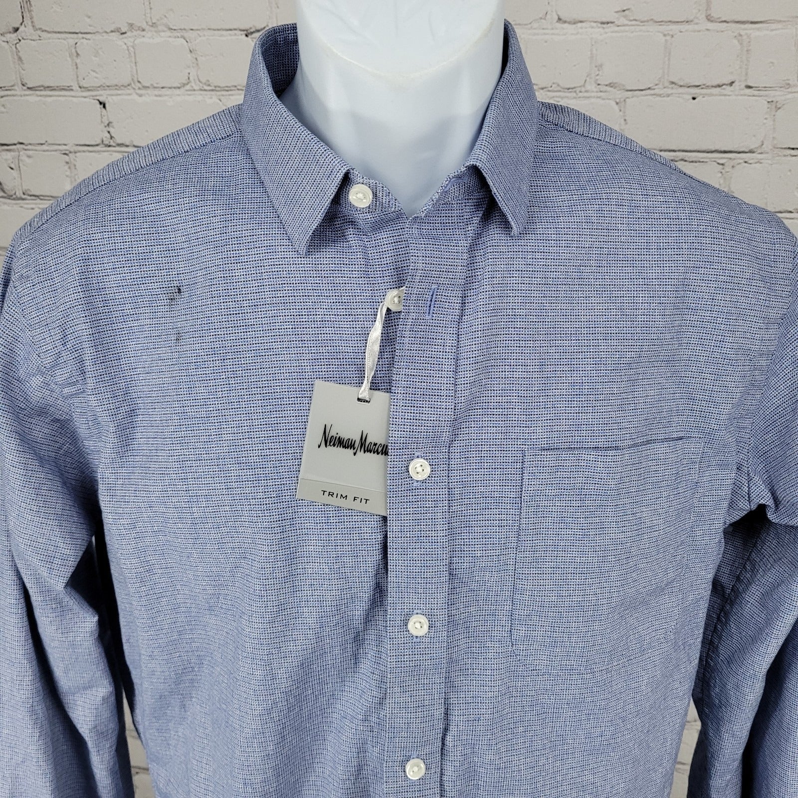 NWD Neiman Marcus Blue 100% Cotton Trim Fit Button Up Shirt Size 15.5 32/33