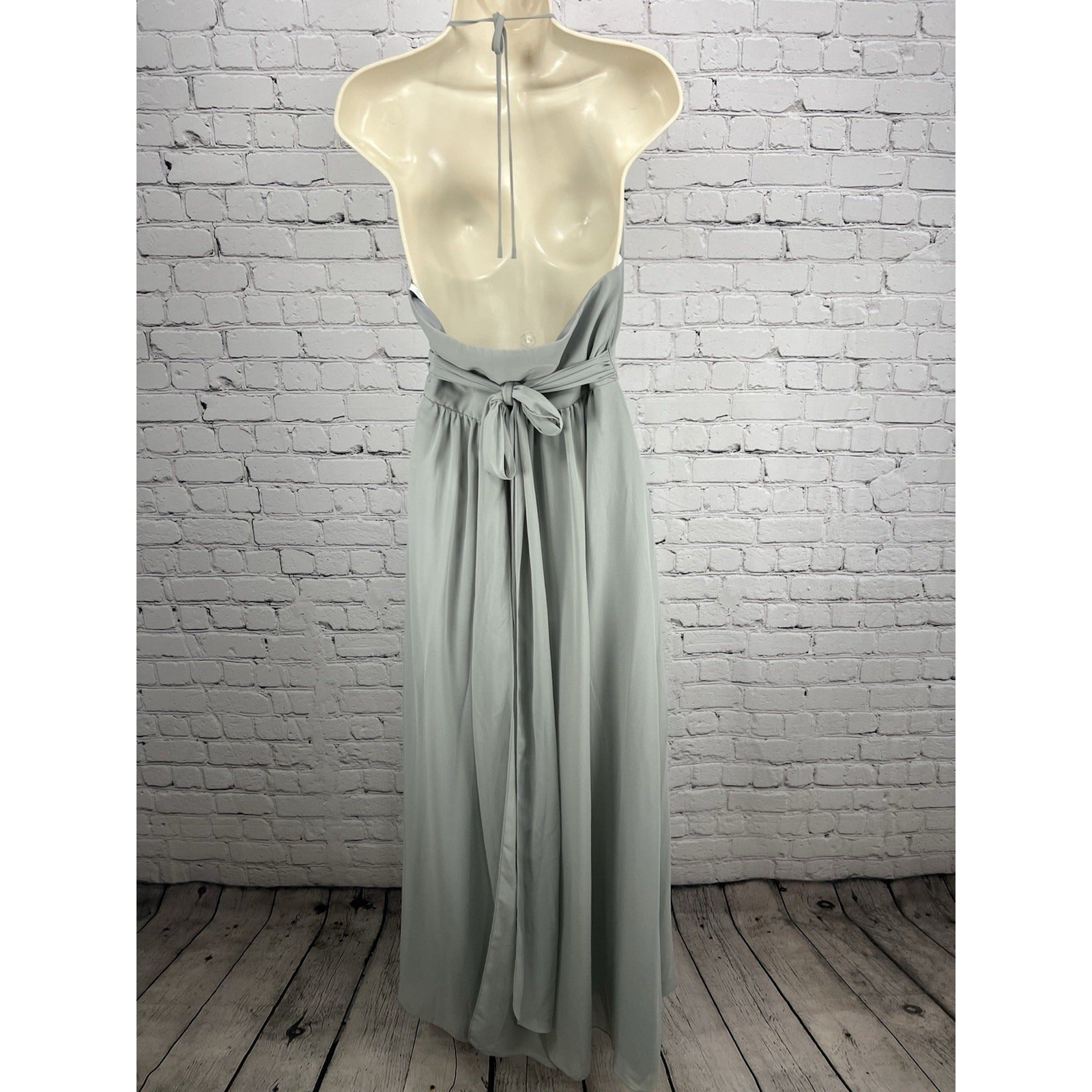 NWD Revelry Platinum Grey Hannah Chiffon Faux Wrap Slit Petite Maxi Long Dress 6