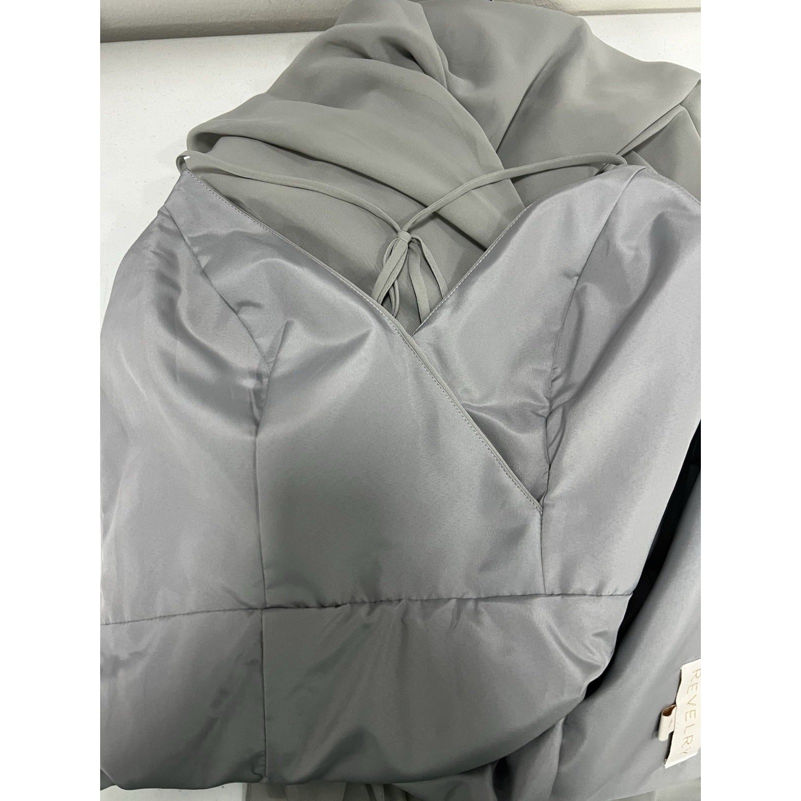 The NWT Revelry Platinum Grey Hannah Chiffon Faux Wrap Petite Maxi Long Bridesmaids Dress in size 6 is a stunning formal dress perfect for wedding and special occasion. The dress features a sleeveless design with a chiffon material, giving it a elegant and sophisticated look. The faux wrap design adds a touch of glamour, making it a standout piece for any bridesmaid or formal event. This petite maxi dress in a beautiful gray color is ideal for creating a graceful and chic ensemble.