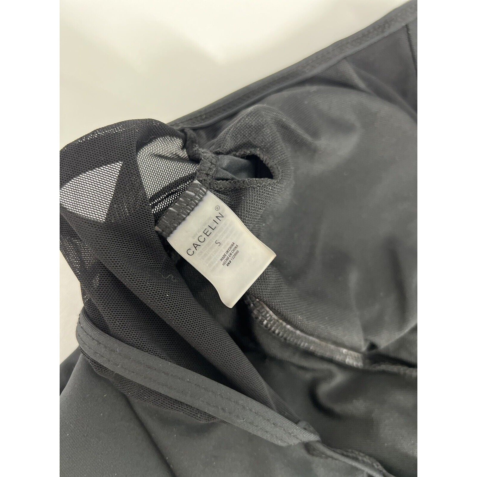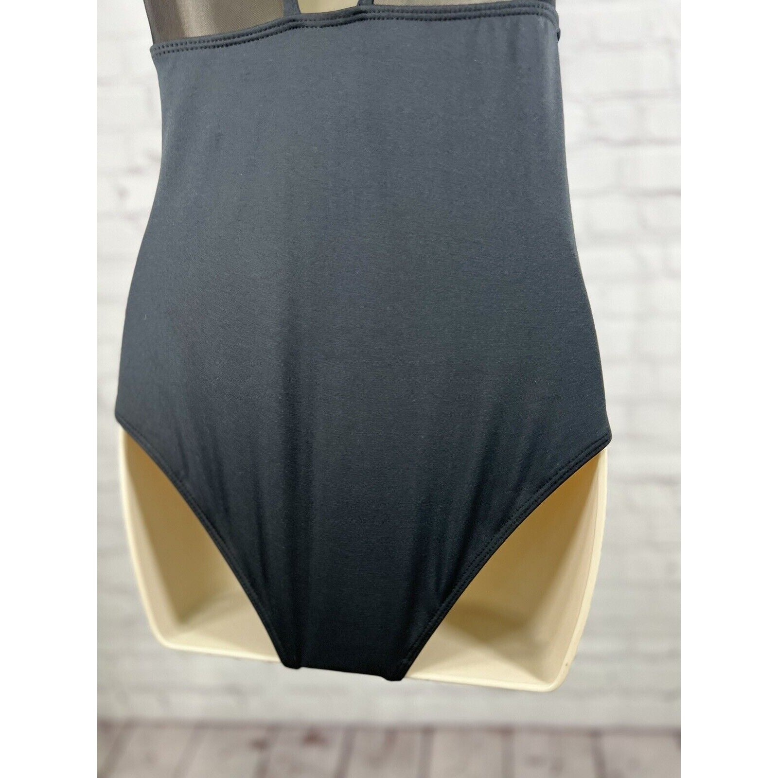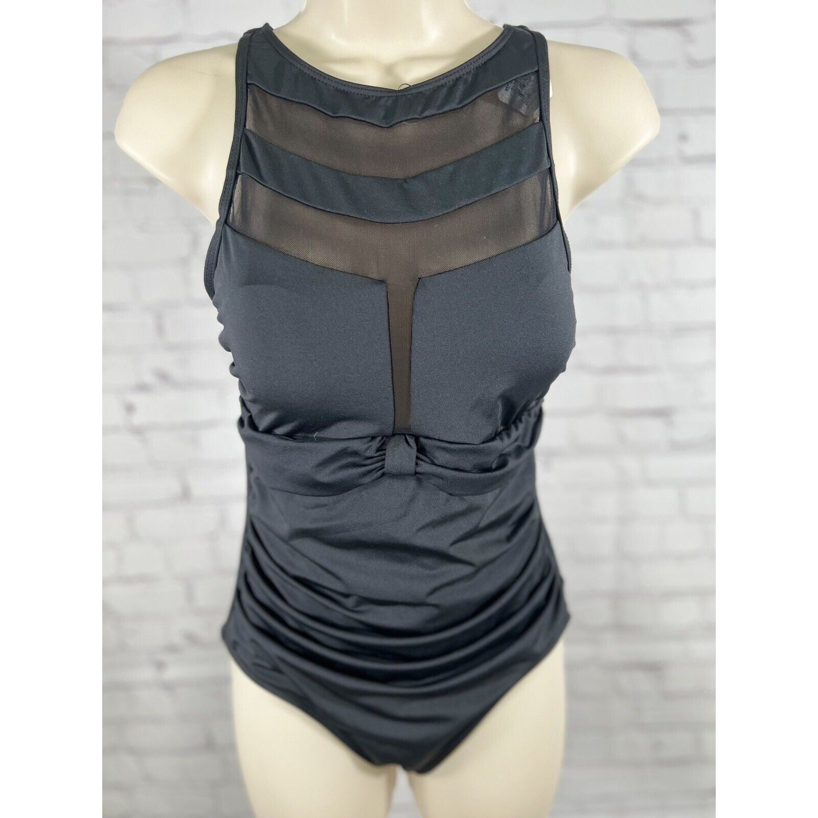 NWOT Cacelin Black Mesh High Neck Deep V Ruching One Piece Women's Swimsuit S