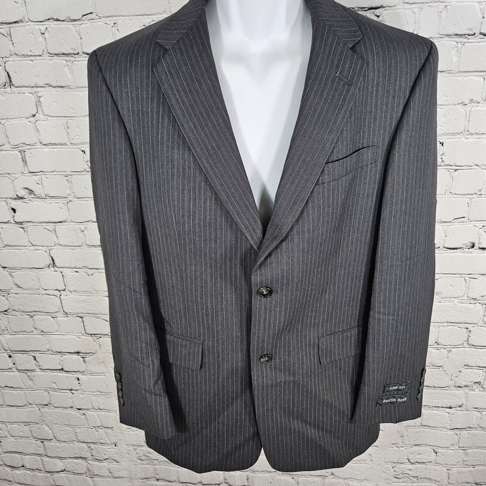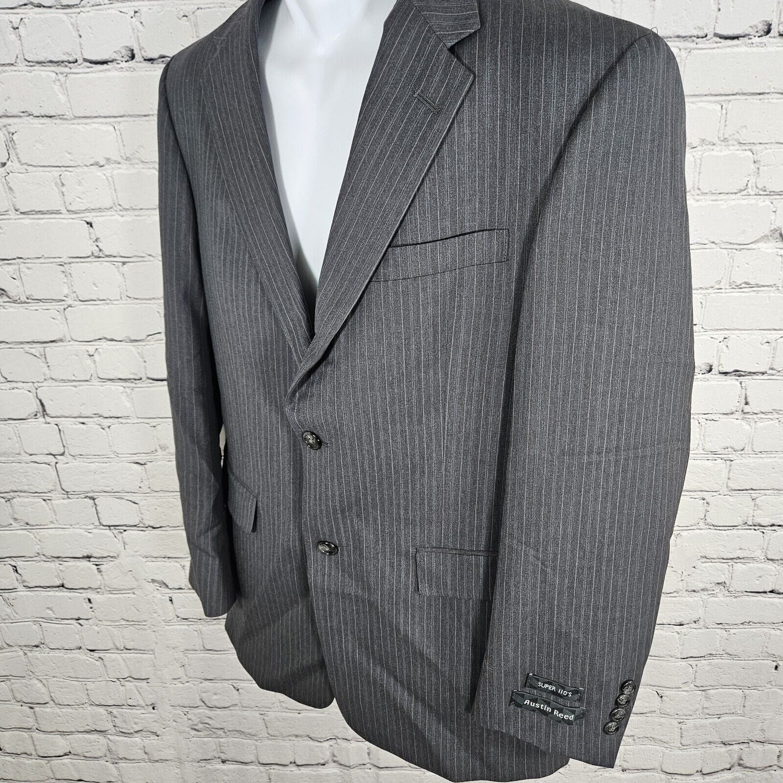 NWT Austin Reed Blazer Grey Pin Striped Super 100s 2 Button Single Breast 39 R
