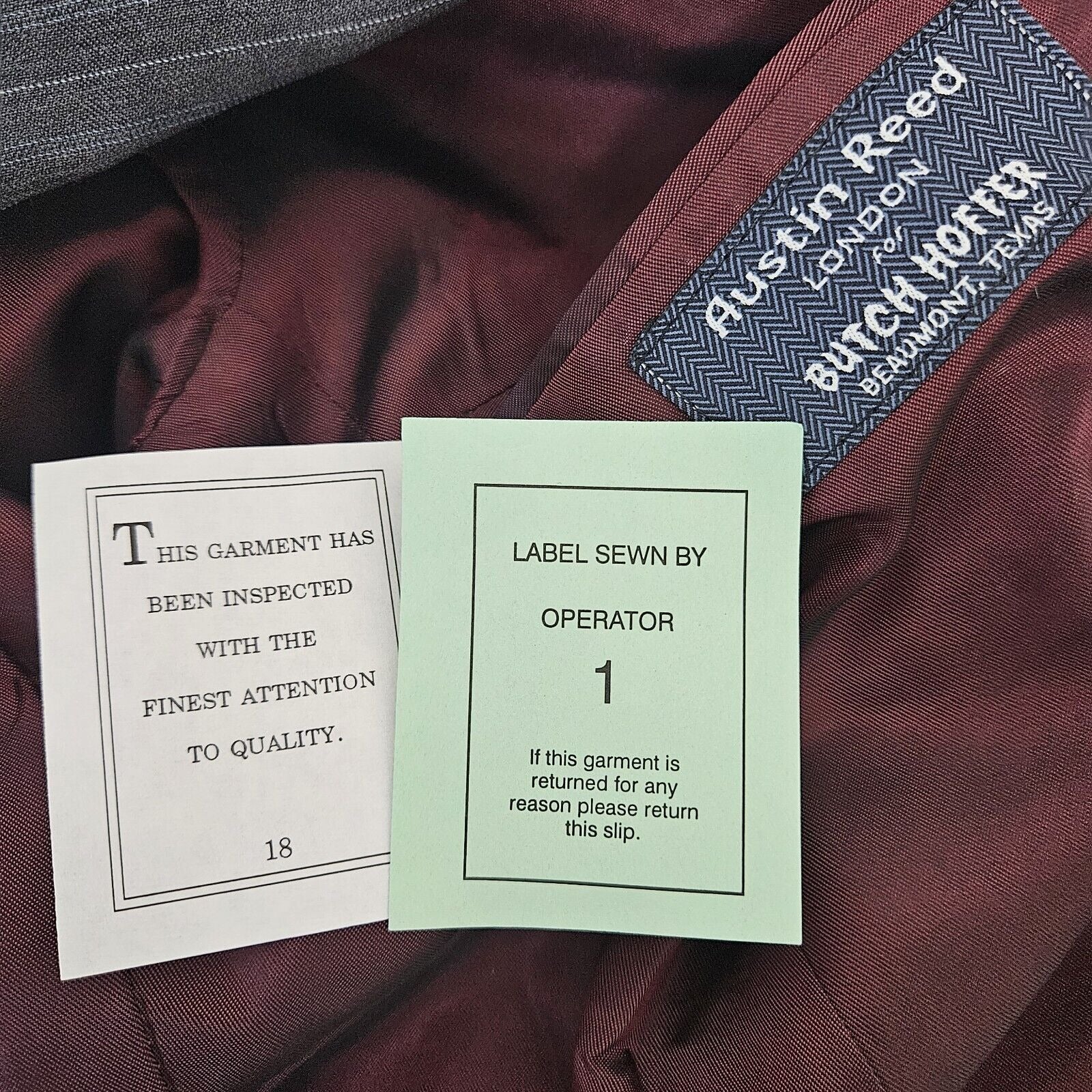 Elevate your formal attire with this new with tag Austin Reed Super 100s blazer. The gray and blue pin-striped wool blazer (witg matoon lining) features a two-button single-breasted cut, with a flat front and single vent. The blazer also comes with inner pockets for added convenience. Perfect for any occasion, whether it be a party, cocktail event, or business meeting, this blazer is a must-have for any fashion-forward man's wardrobe. Dry clean only.