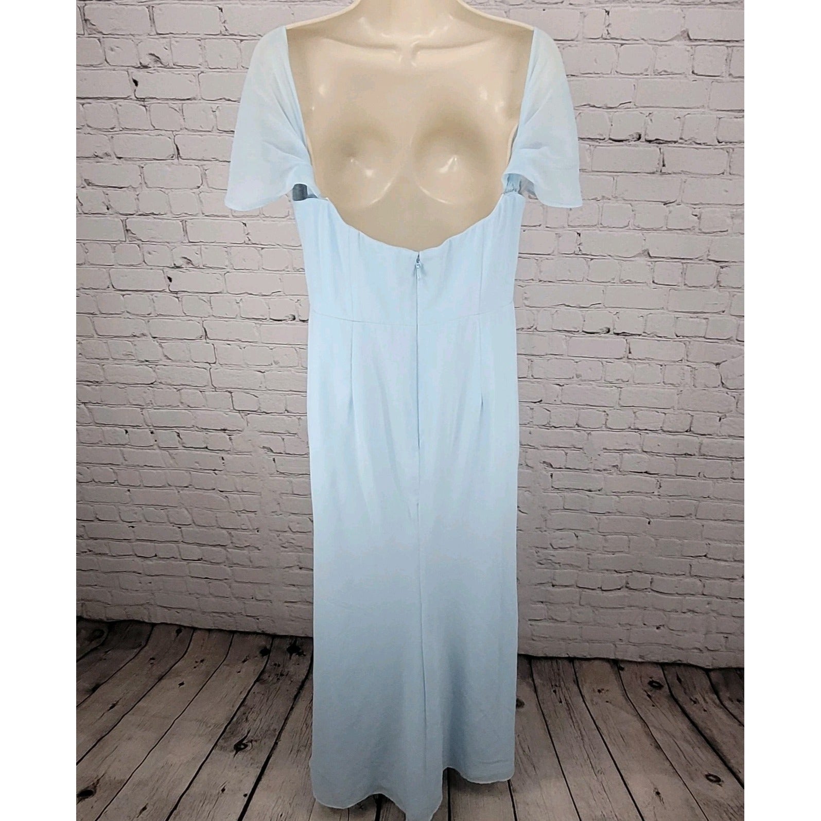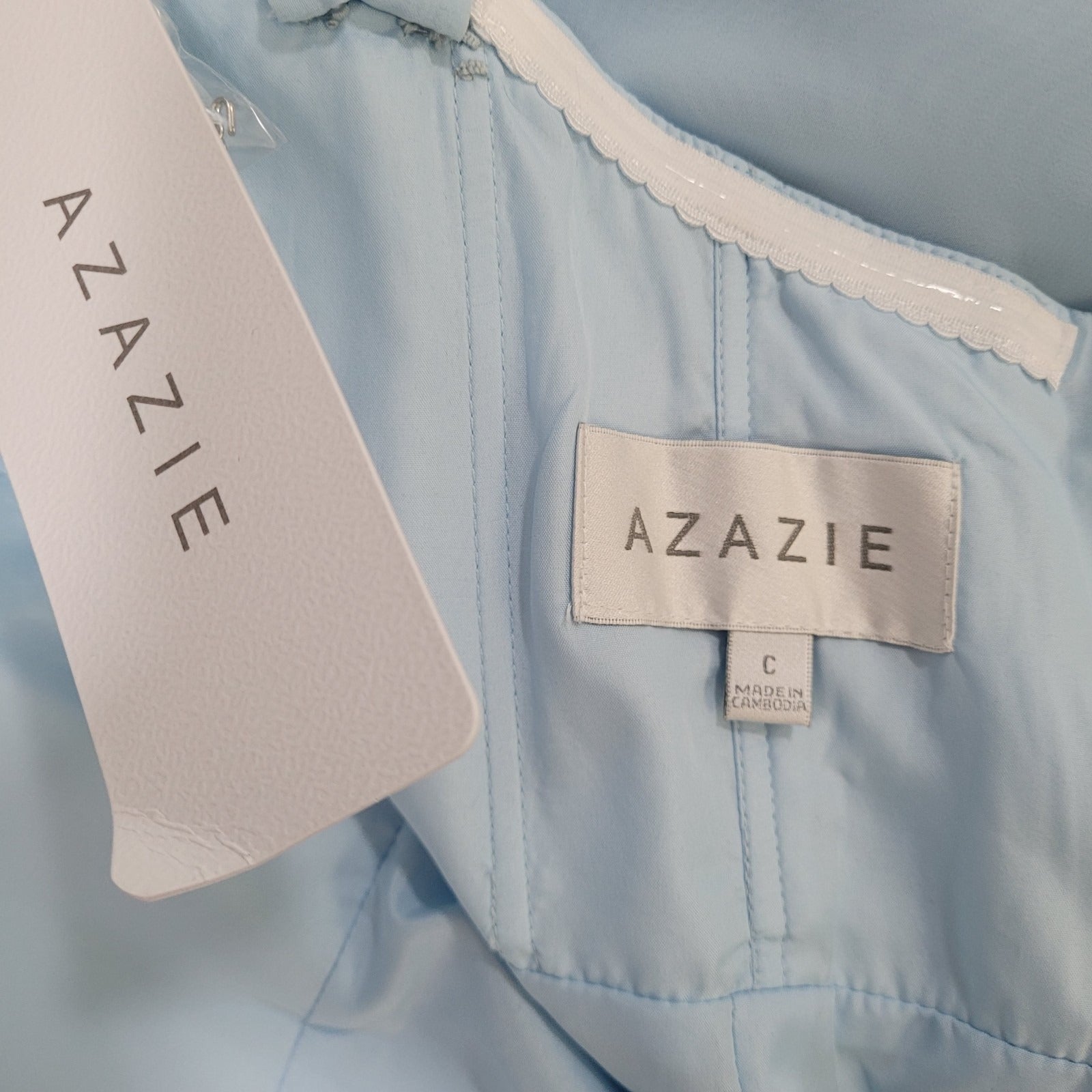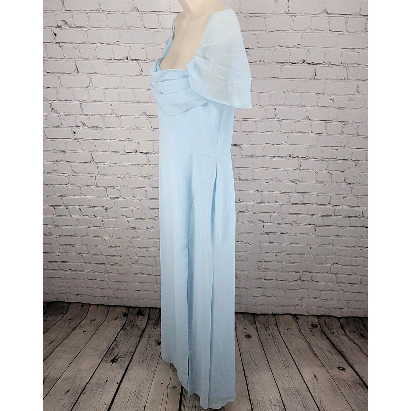 NWT Azazie Saige Sky Blue Empire Waist Side Slit Bridesmaid Dress Custom Size