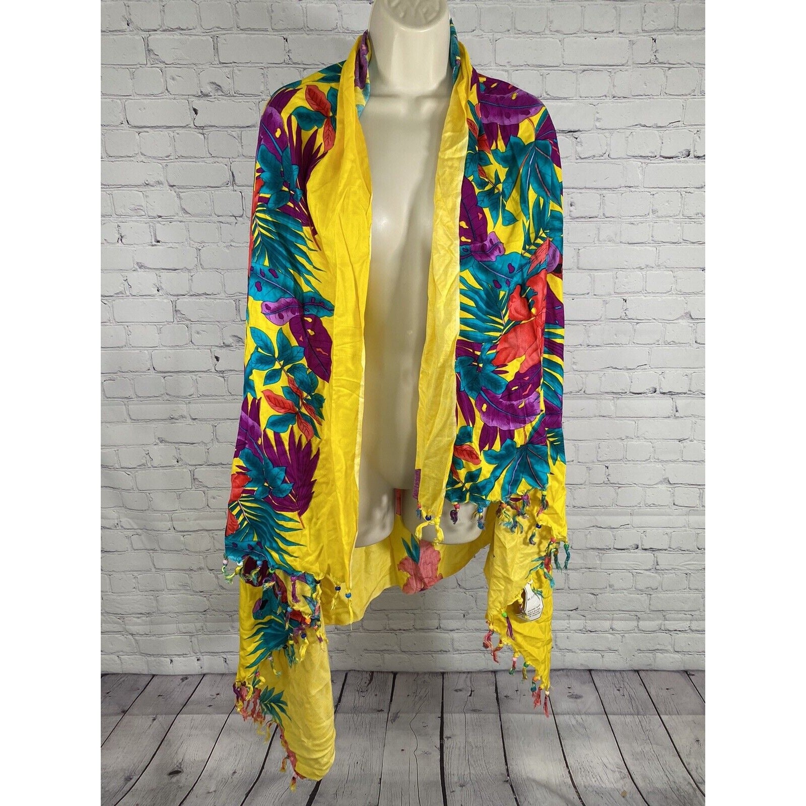 NWT Caribbean Fashion Colorful Floral Beaded Fringe Wrap Scarf Shawl (66x44).