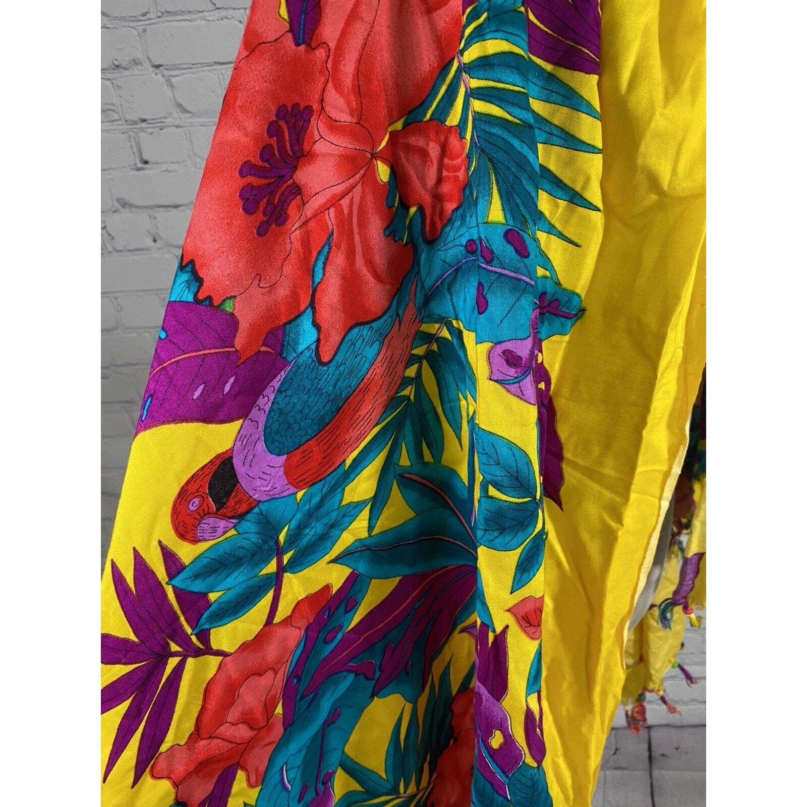 NWT Caribbean Fashion Colorful Floral Beaded Fringe Wrap Scarf Shawl (66x44)