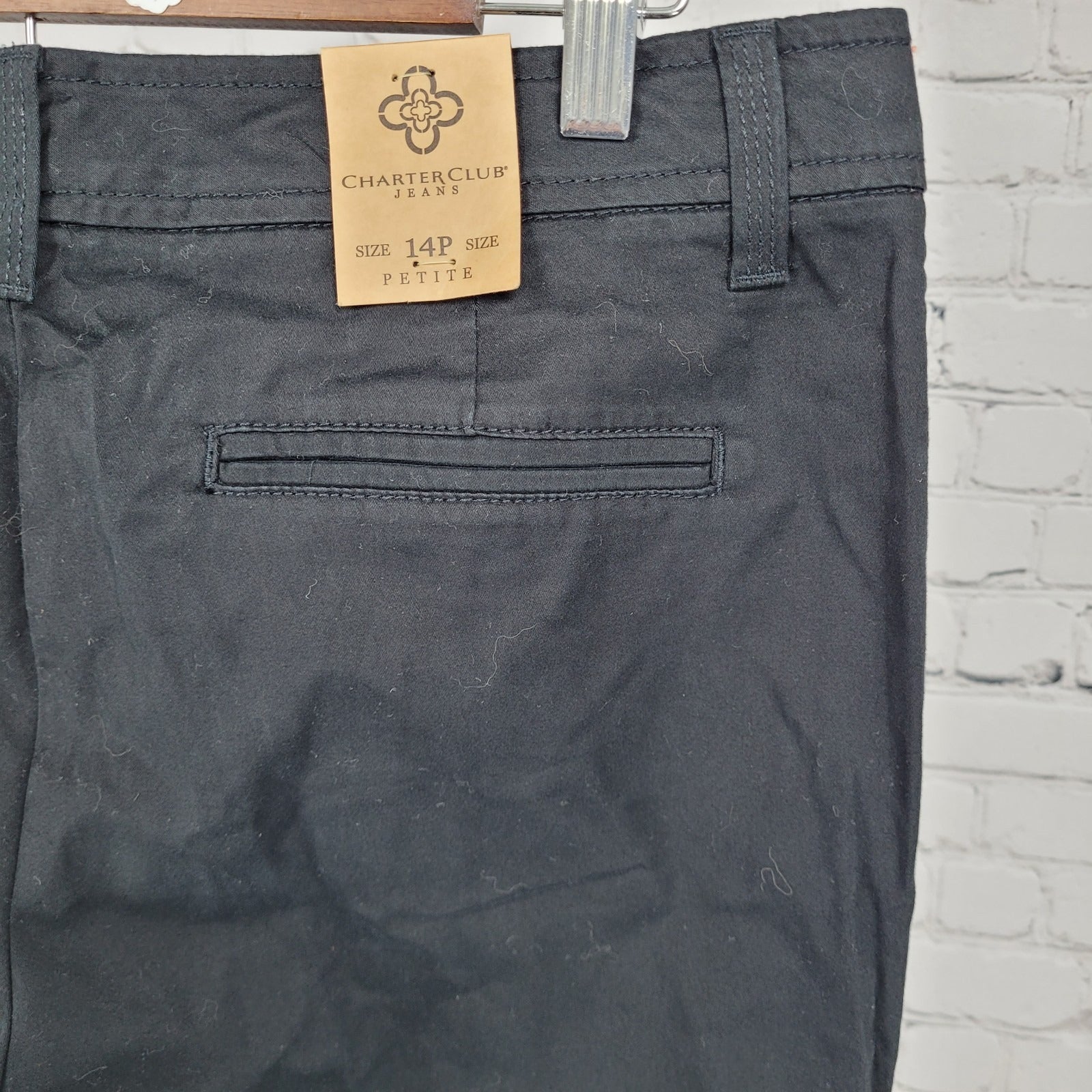 NWT Charter Club Black Cotton Stretch Slimming Mid Rise Pants Size 14P (32x29.5)