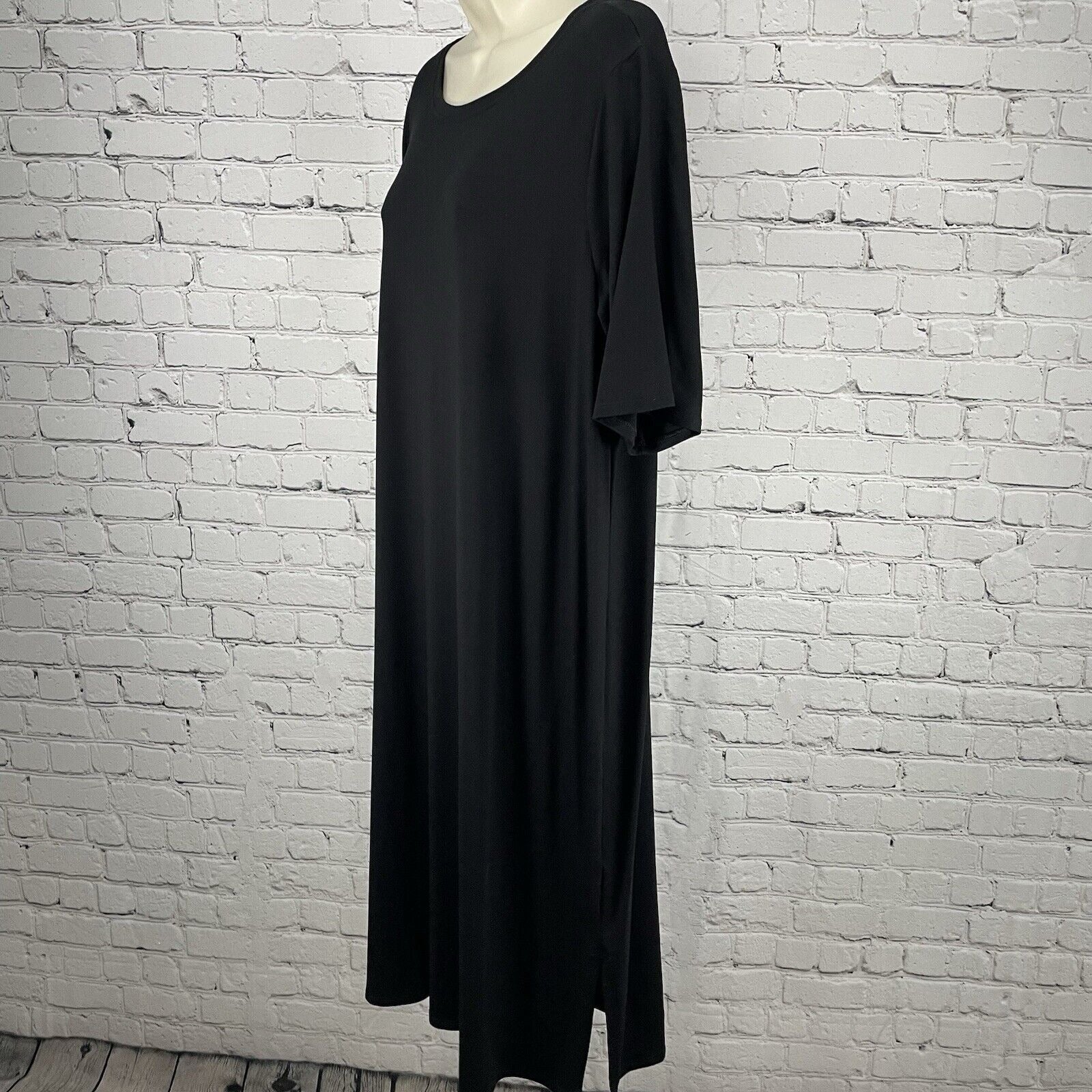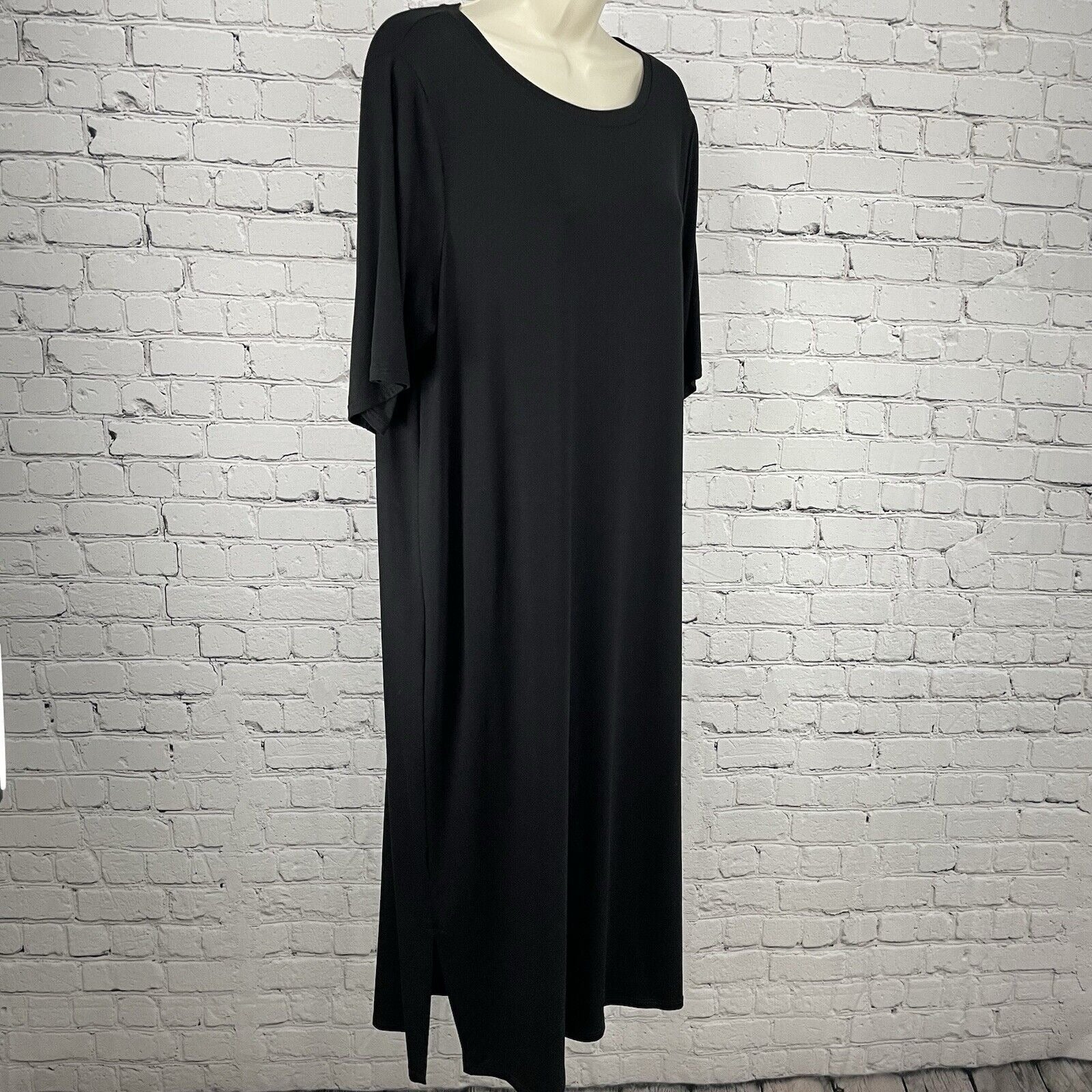 NWT Eileen Fisher Black Fine Tensel Jersey Midi Shirt Dress USA Size Large L