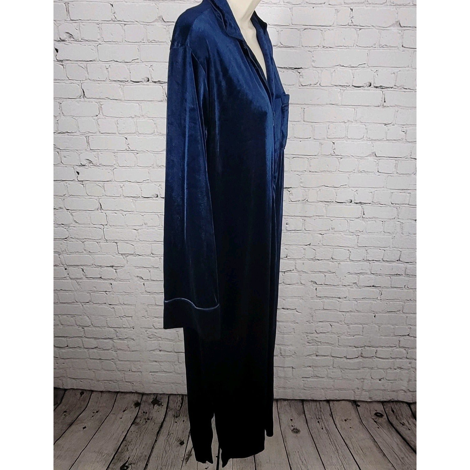 This Lauren Ralph Lauren blue velvety velour zip long sleeve robe in size small is a luxurious addition to any woman's sleepwear collection. The robe features a zip closure, long sleeves, and a stylish blue color that exudes elegance and comfort. Made from soft velour fabric, this robe is perfect for lounging around the house or adding a touch of sophistication to your bedtime routine.