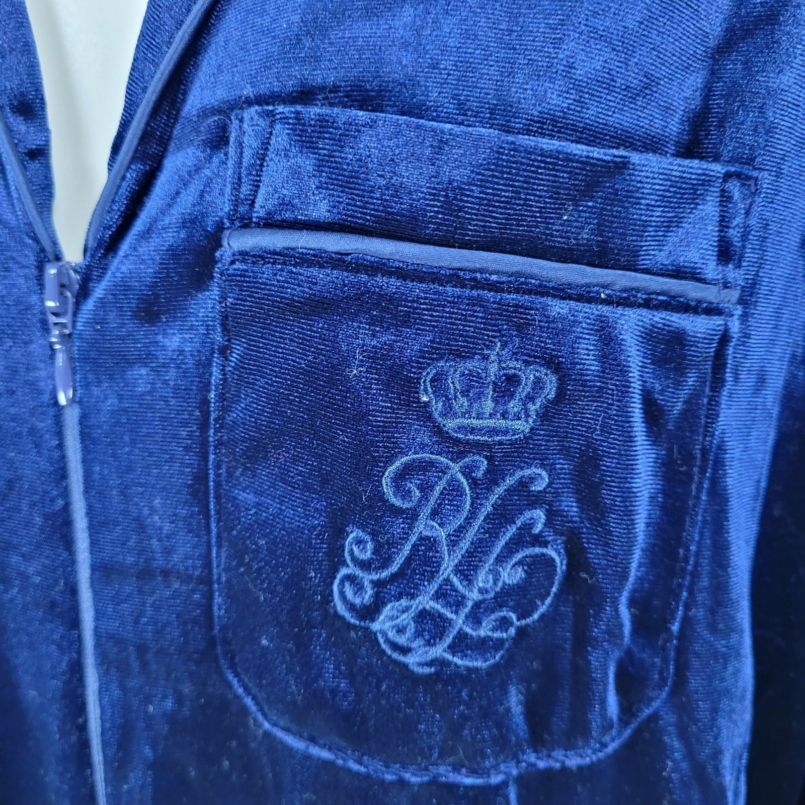 NWT Lauren Ralph Lauren Blue Velvety Velour Zip Long Sleeve Robe Size Small S