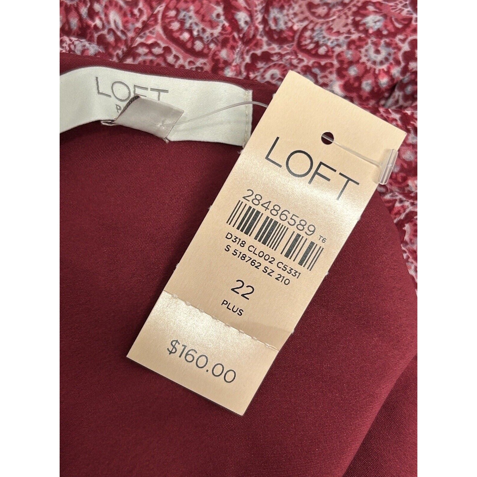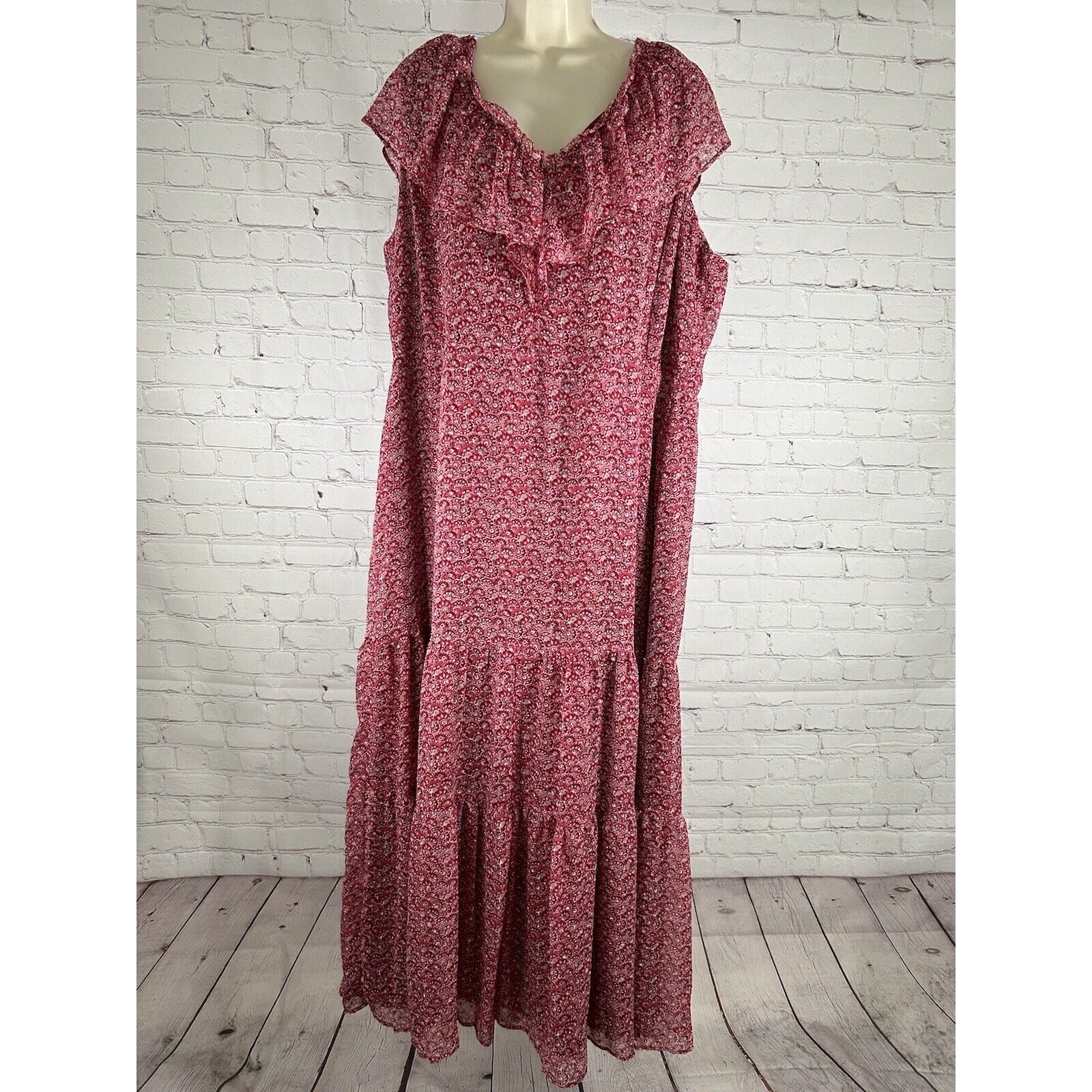 NWT Loft Plus Red Floral Flounce Tie Back Lined Lightweight Tiered Maxi Dress 22