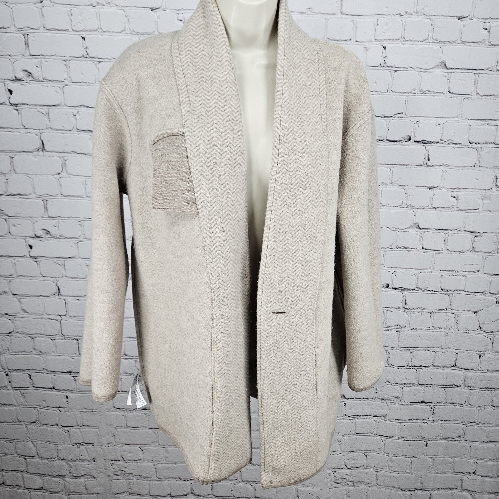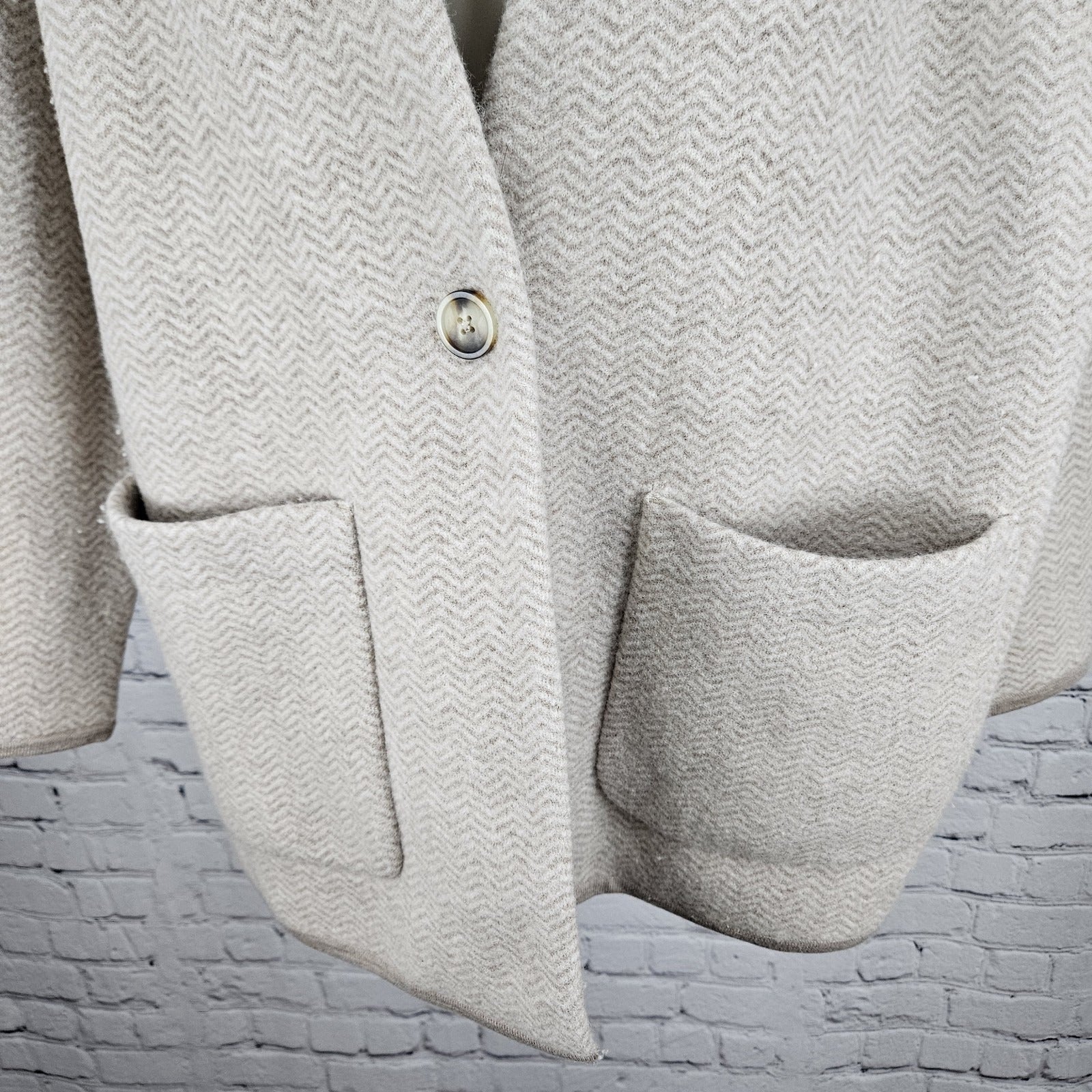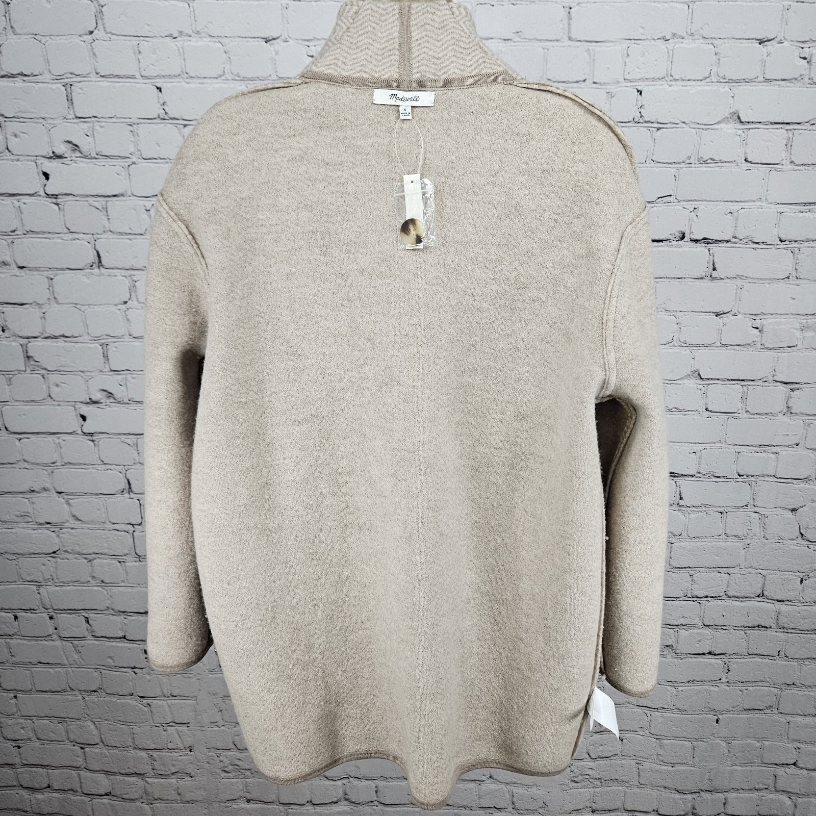 NWT Madewell Beige 100% Merino Wool Herringbone Buttoned Lightweight Coat Small