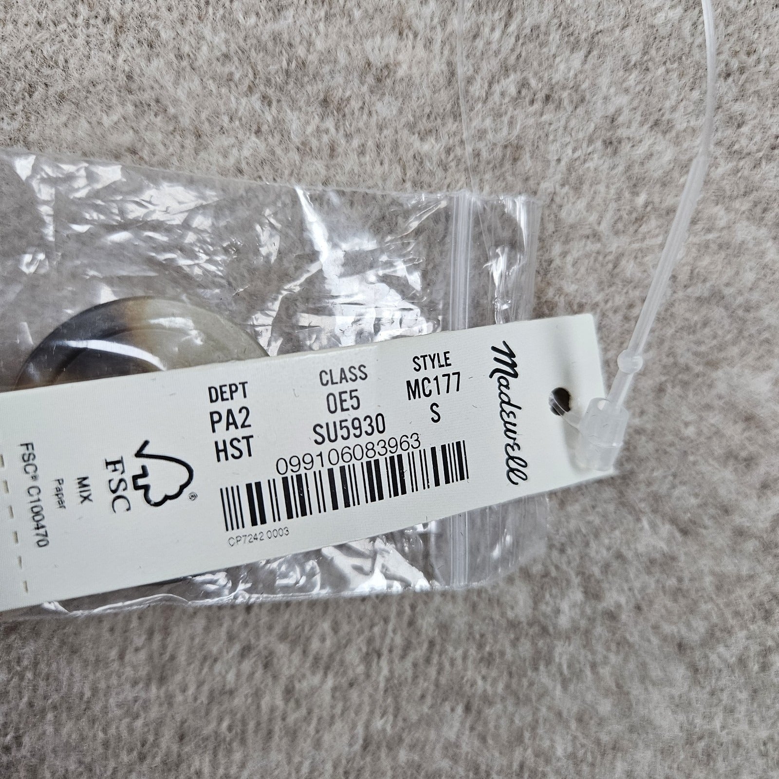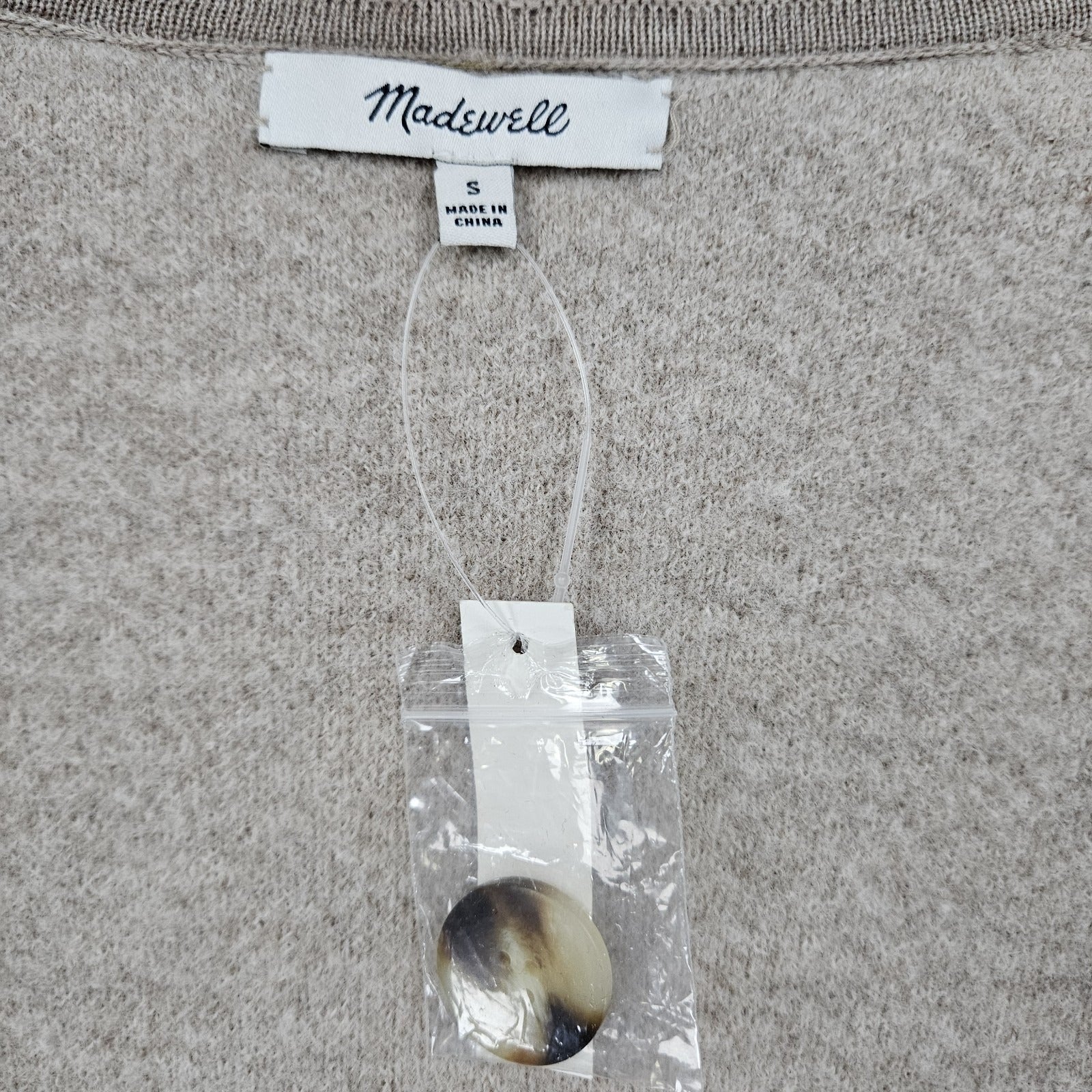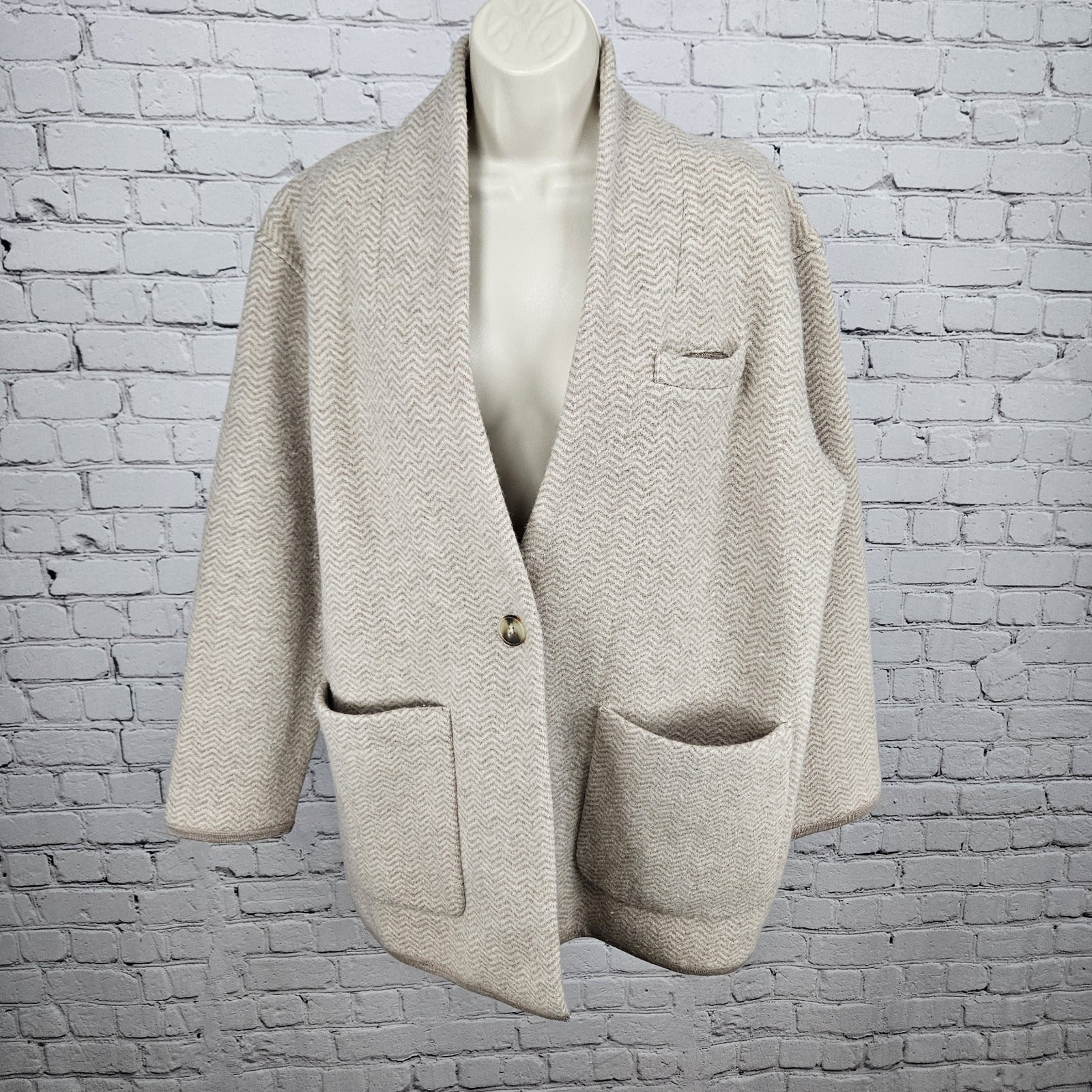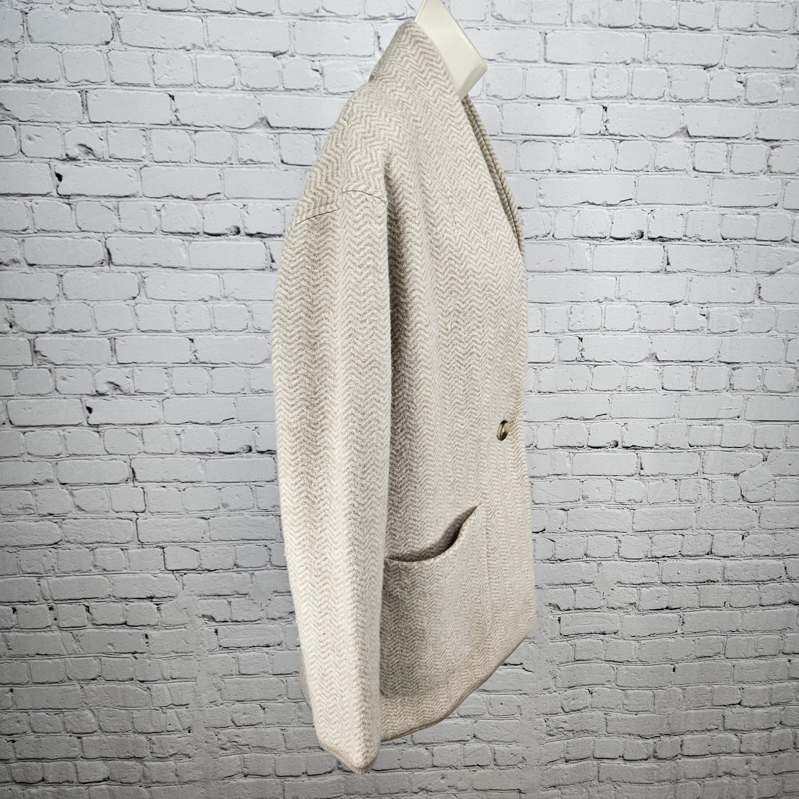 NWT Madewell Beige 100% Merino Wool Herringbone Buttoned Lightweight Coat Small