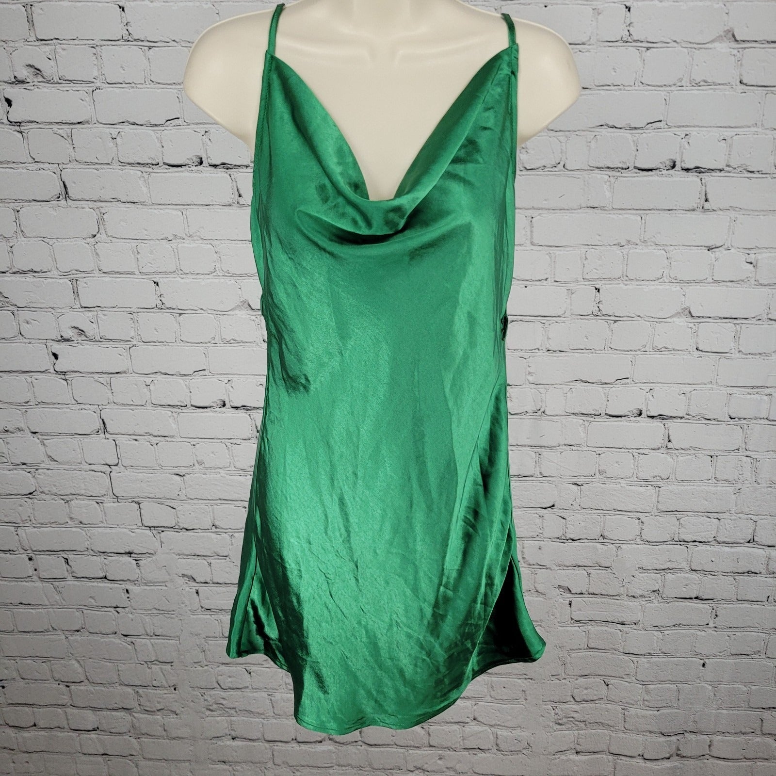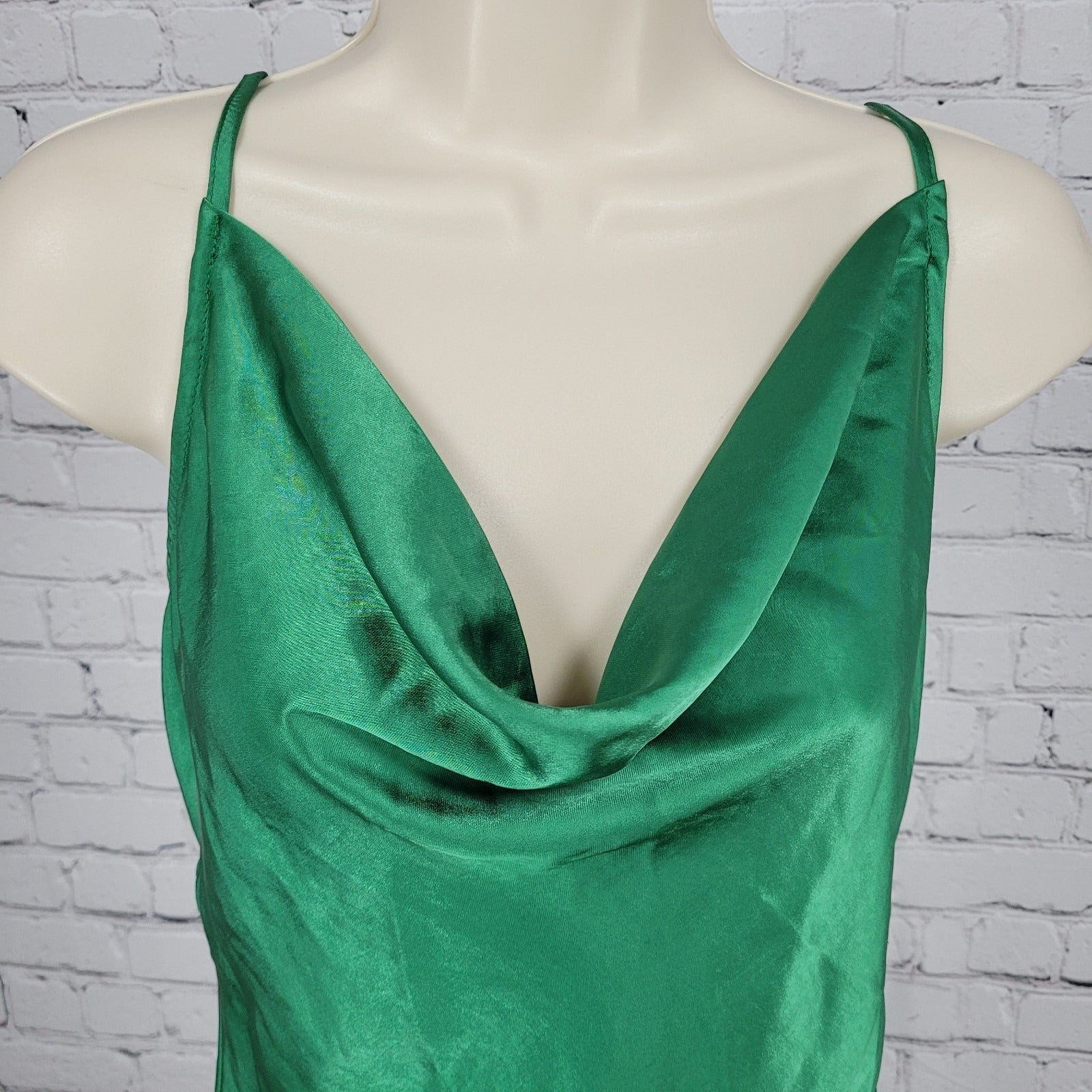 NWT Motel Kelly Green Silky Satin Stretch Paiva Strappy Slip Dress Size Small S