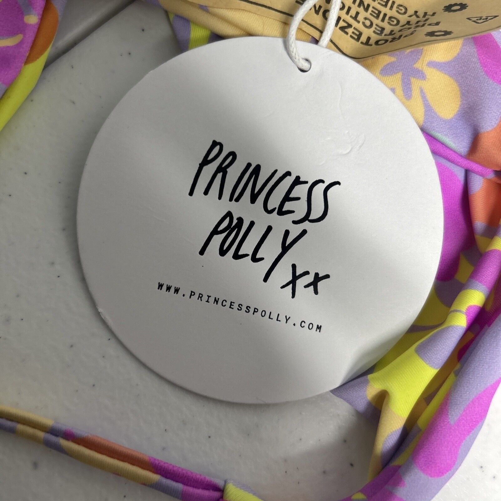 Get ready to hit the beach in style with this NWT Princess Polly Colorful Floral Maisy Bikini Bottom in Women's Size 6. The beautiful floral pattern and multicolor design make it the perfect choice for any beach or outdoor activity. Made from a blend of polyester and spandex, this bikini bottom is machine washable, ensuring that it stays looking great no matter how many times you wear it.