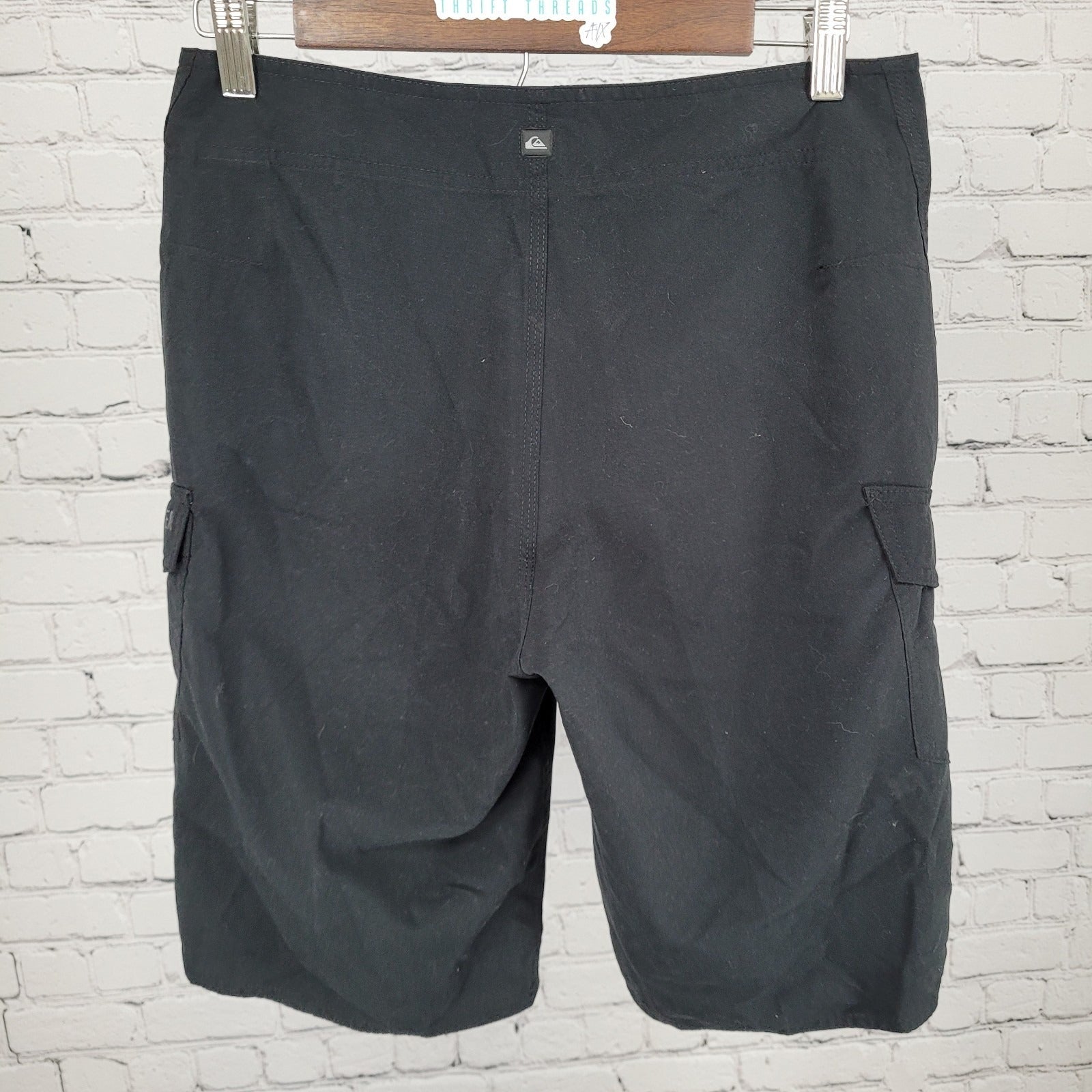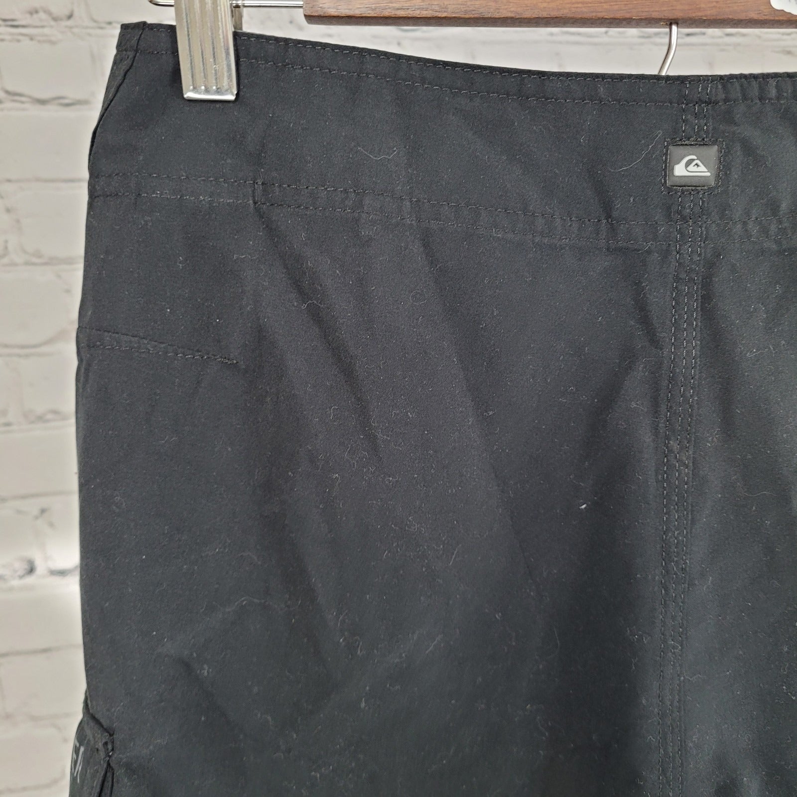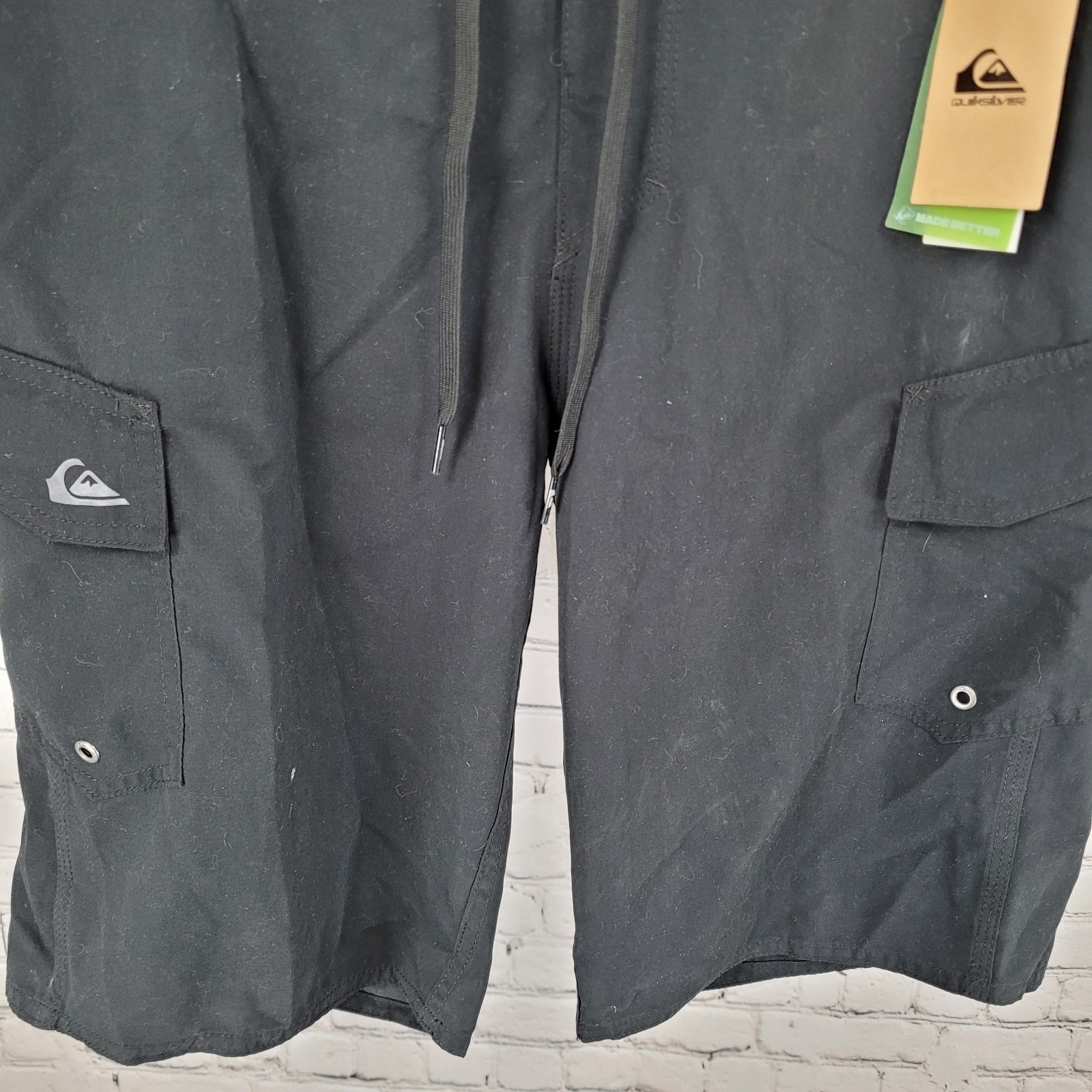 The NWT Quiksilver Black Cargo Drawstring Swim Trunks Board Shorts in size 29 Long are designed for men looking for stylish and functional swimwear. Featuring a drawstring waist for a secure fit, these board shorts offer comfort and flexibility during water activities. The black color adds a sleek and versatile touch, making them a great choice for various outdoor adventures.
