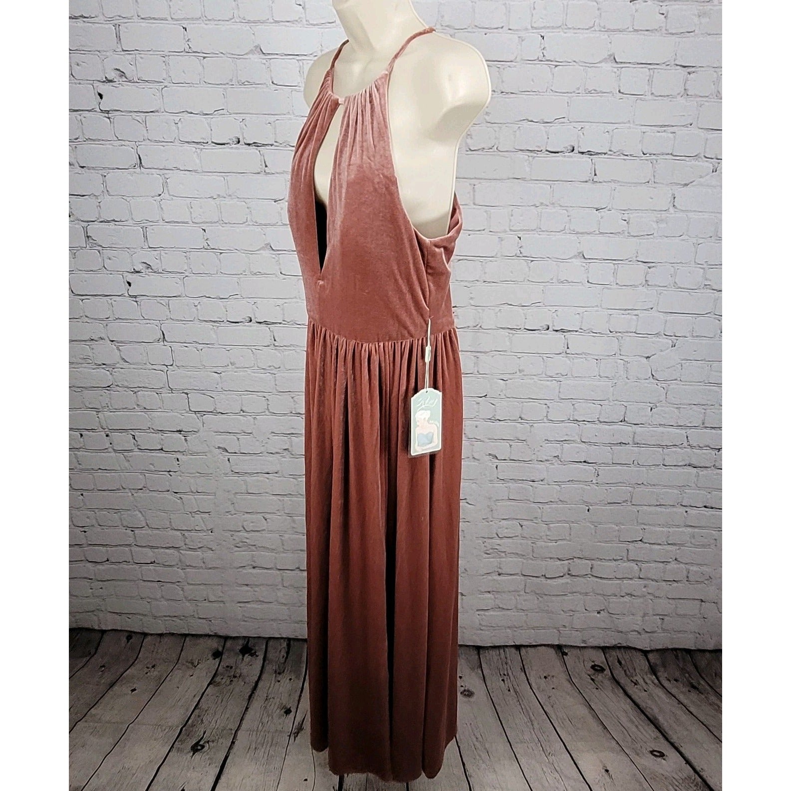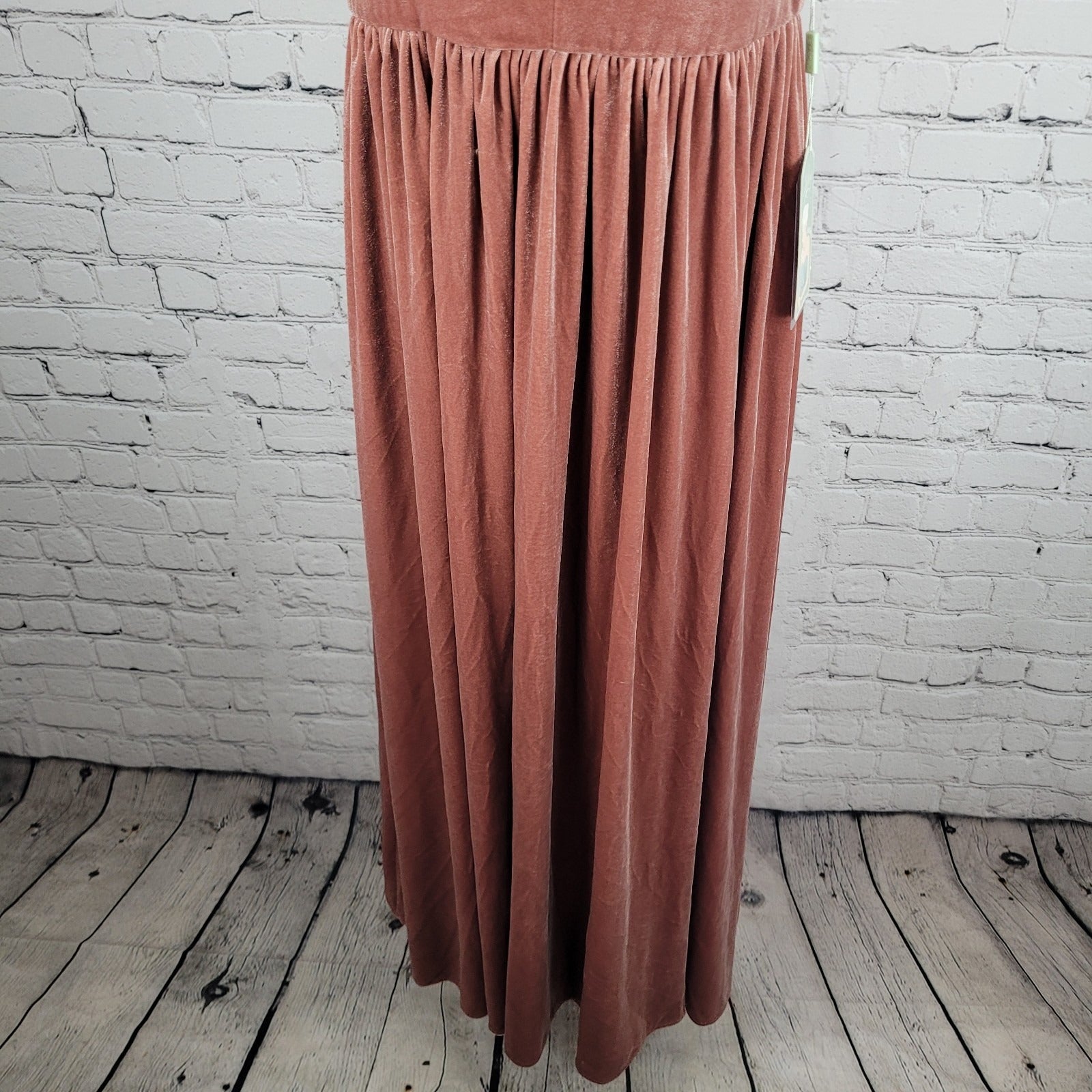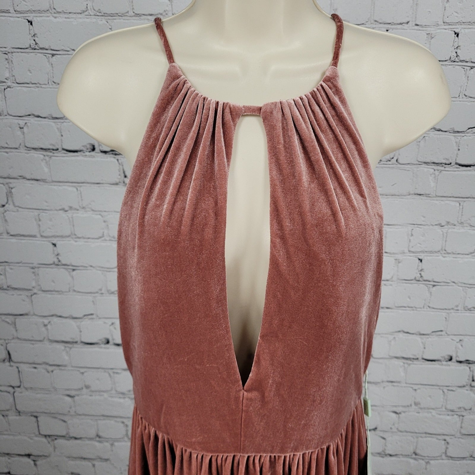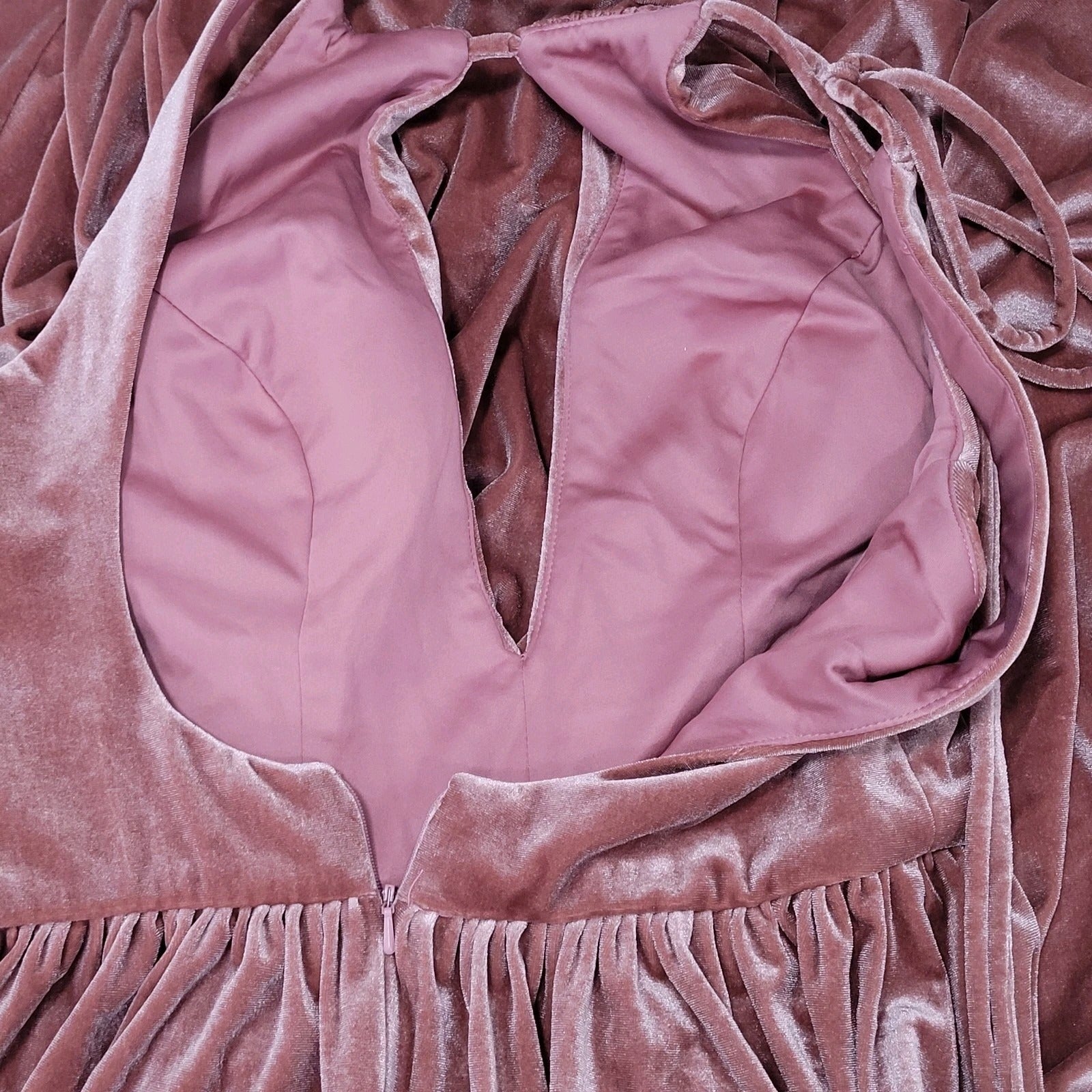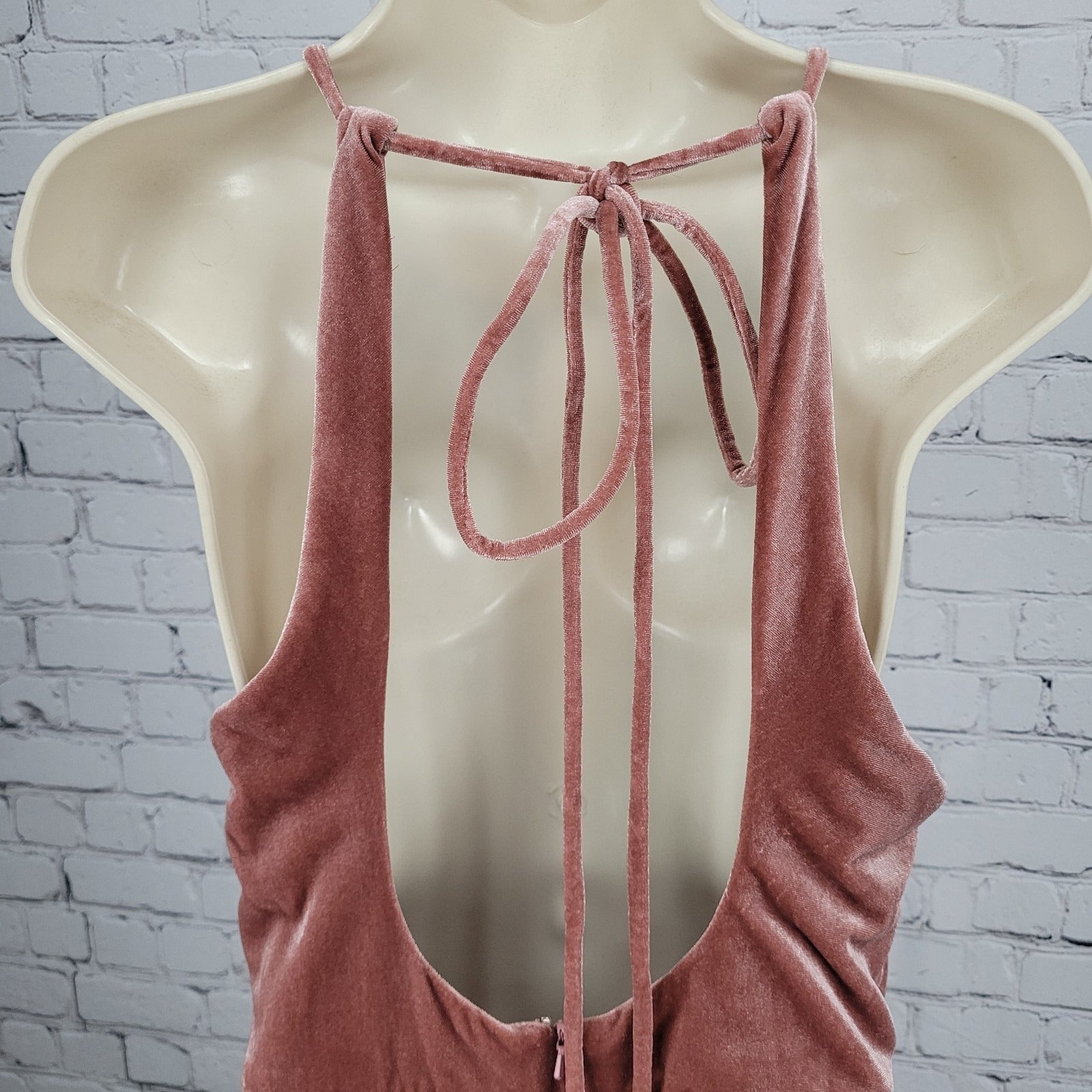 NWT Renz Bridal Pink Velvet Sleeveless Side Slit Bridesmaid Dress Size Small S