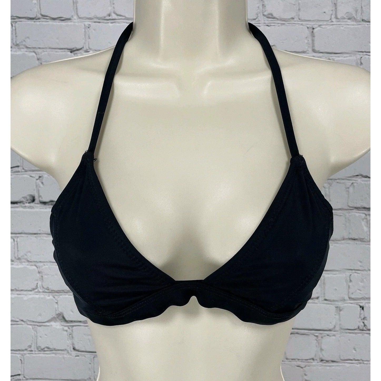 Oakley Black Unpadded Lined Halter Tie Swimsuit Bikini Top USA Made Size Small S