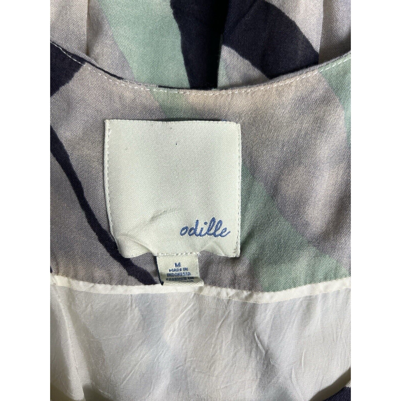 This Odille Anthropologie dress is a vibrant addition to any wardrobe. The tie-dye pattern in shades of green and black creates a unique, eye-catching look. The sleeveless design and lightweight material make it perfect for summer, spring, or fall occasions.