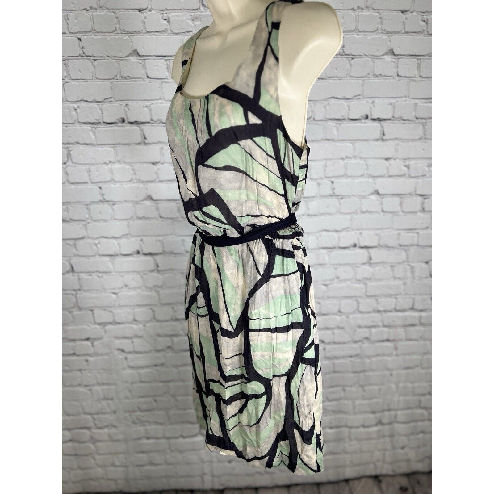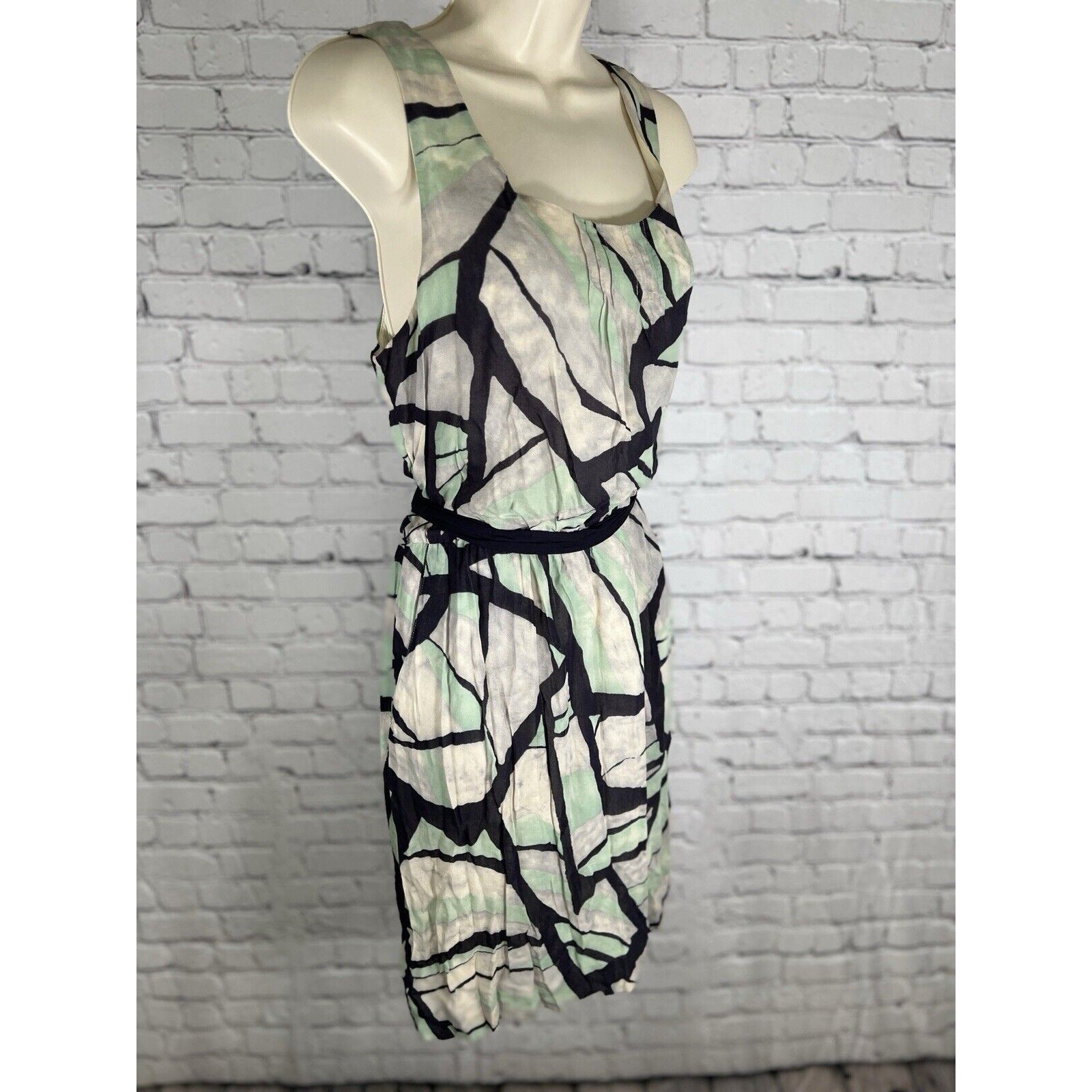 Odille Anthropologie Green Black Short Sleeveless Tied Waist Pockets Dress M