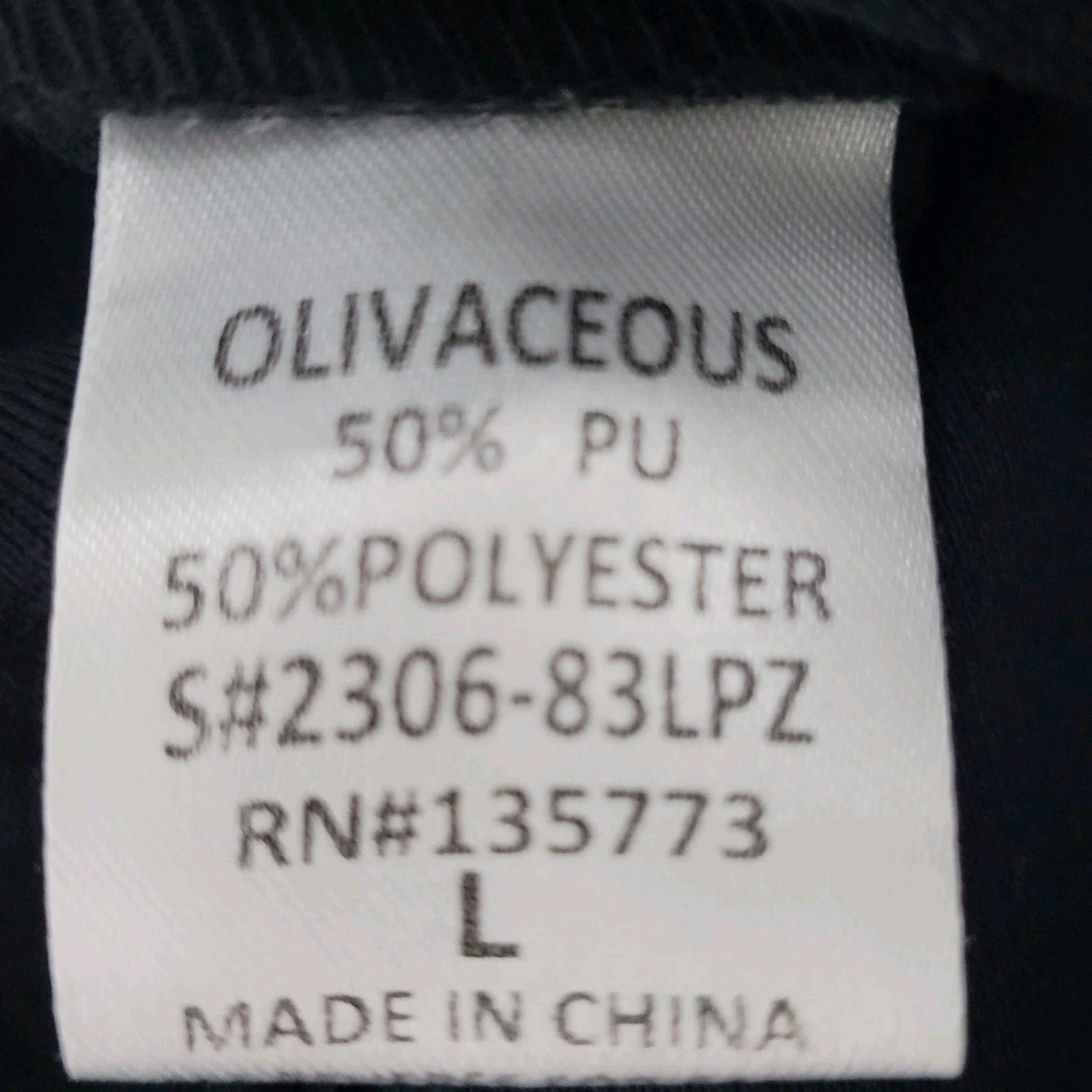 The Olivaceous Black Faux Leather Stretch High Rise Pants in size Large (31x32) are a versatile and stylish addition to any wardrobe. Made from a blend of polyester and polyurethane, these pants feature a solid black color and a wide-leg design, perfect for a variety of occasions including travel, weddings, parties, workwear, and more. With a high rise waist and zip and hook & eye closure, these pants offer a comfortable fit for everyday wear. The stretch material and pockets add extra convenience and style to this chic yet edgy piece.