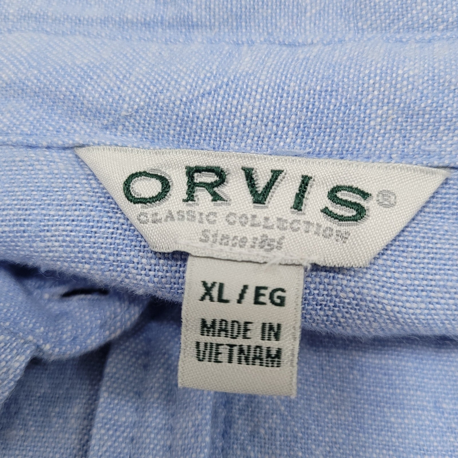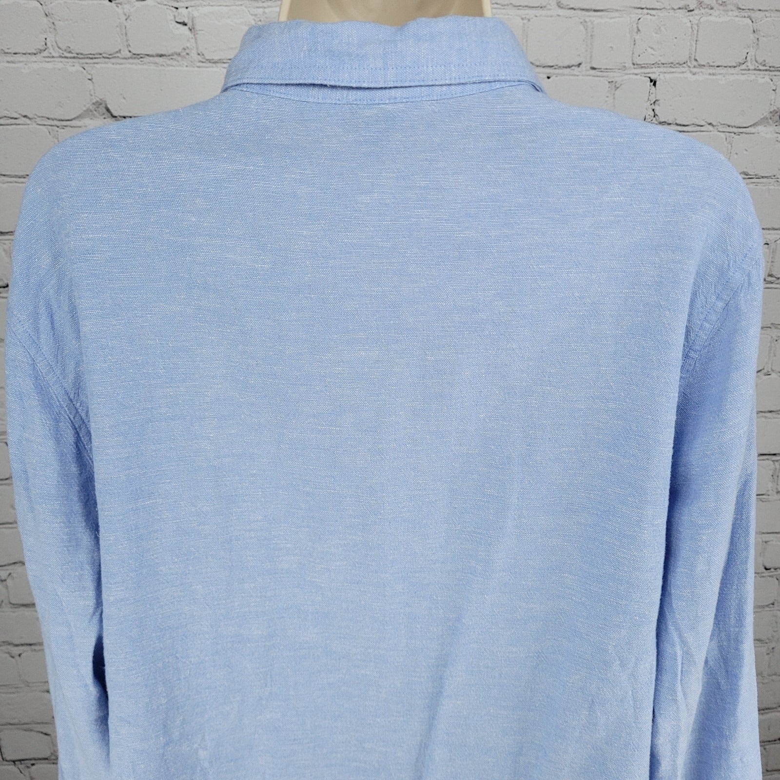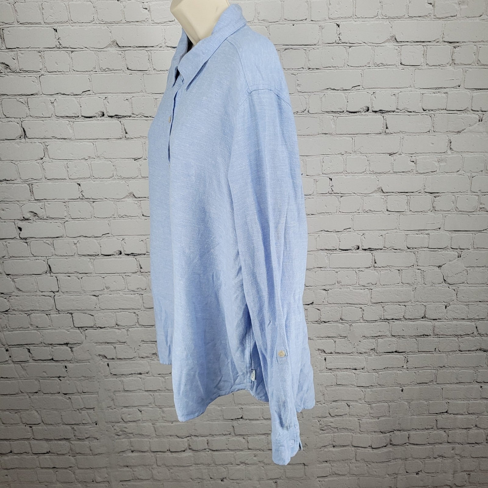 Orvis Blue Linen Blend Button Up Roll Tab Long Sleeve Shirt Top Size XL