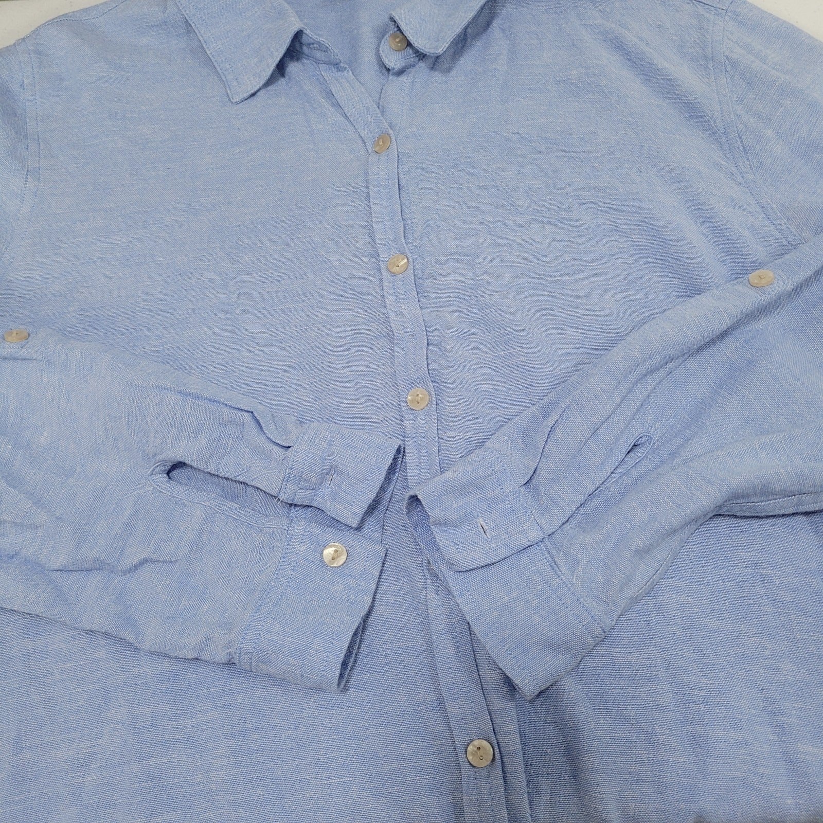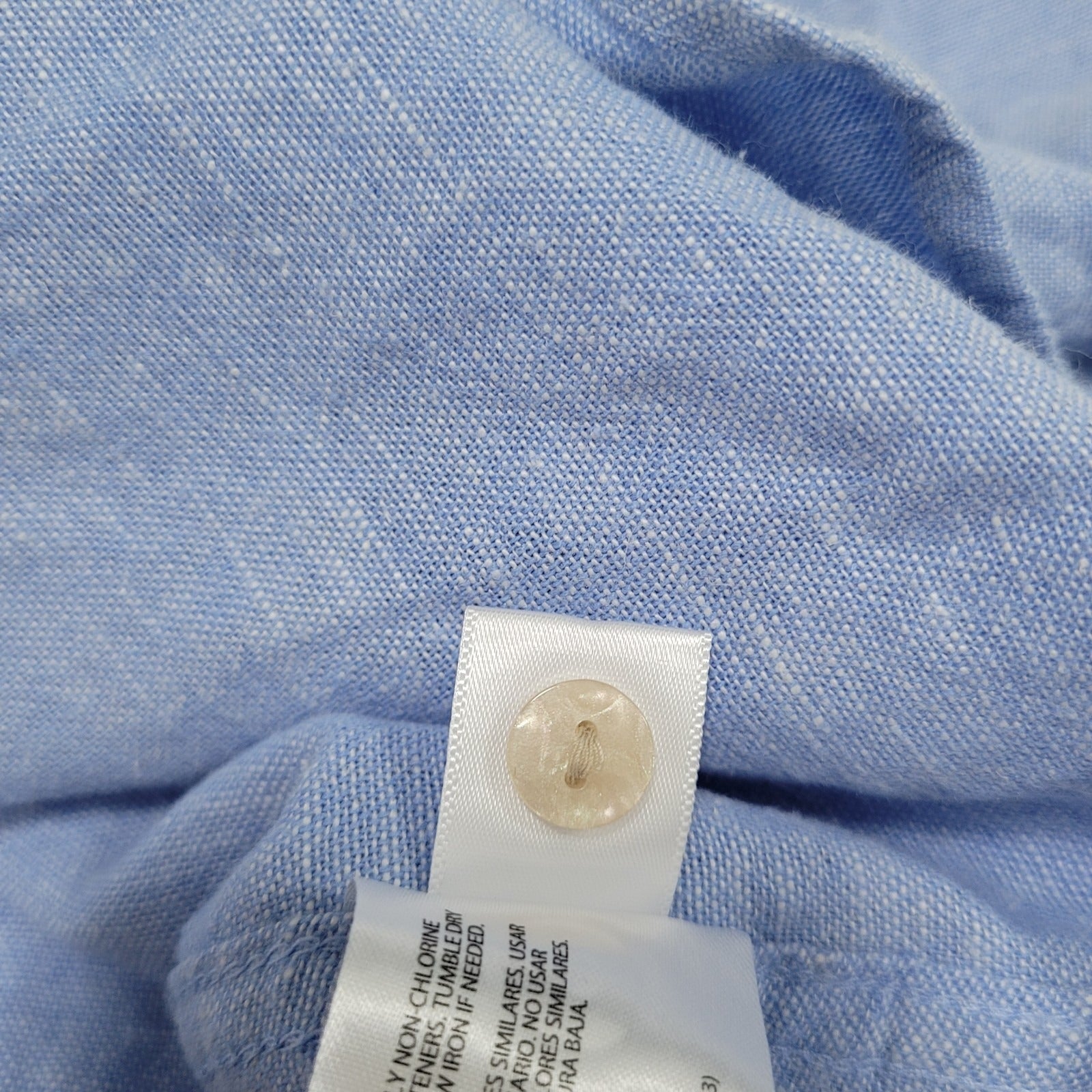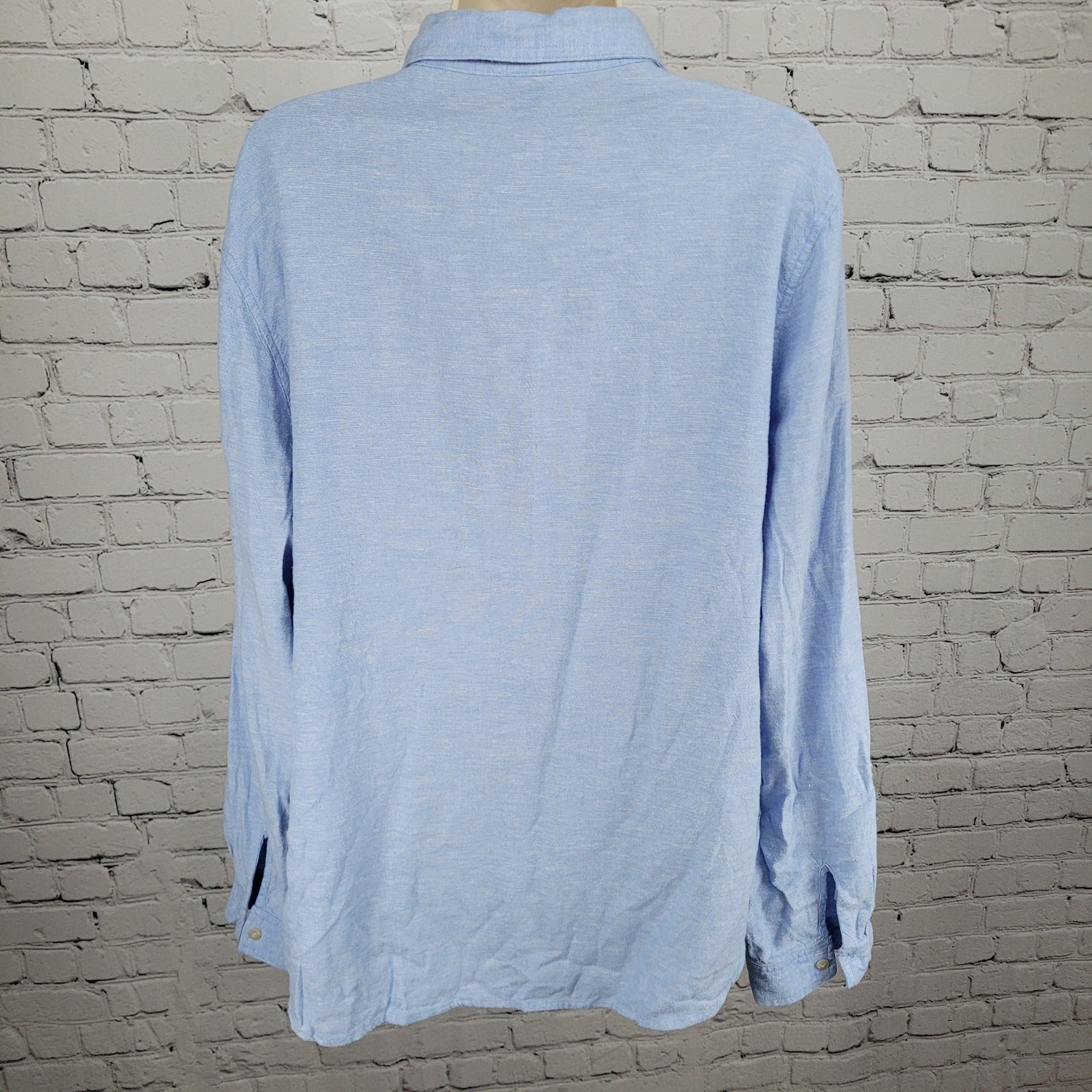 Orvis Blue Linen Blend Button Up Roll Tab Long Sleeve Shirt Top Size XL