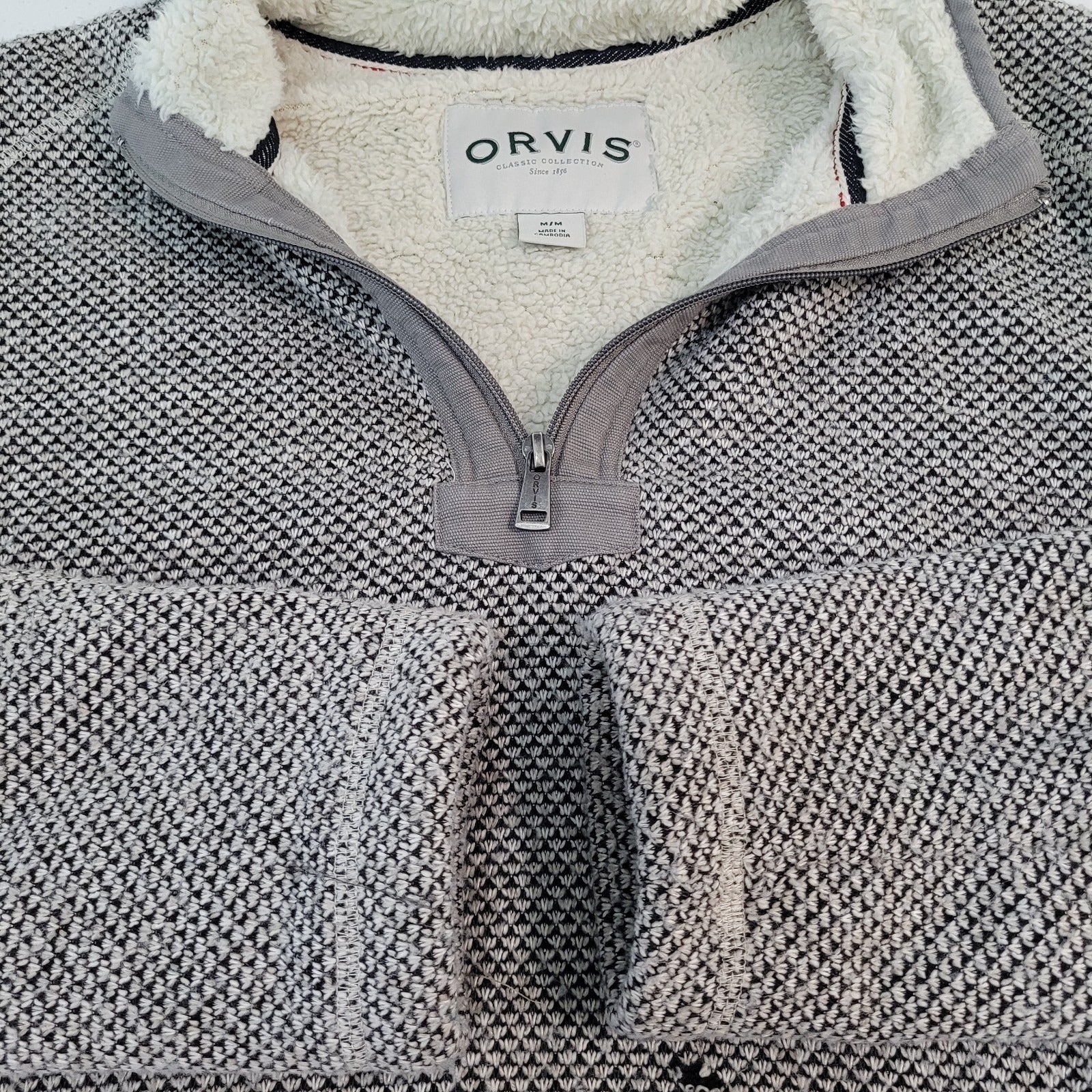Orvis Grey Classic Collection Sherpa Lined 1/4 Zip Pullover Jacket Size Medium M