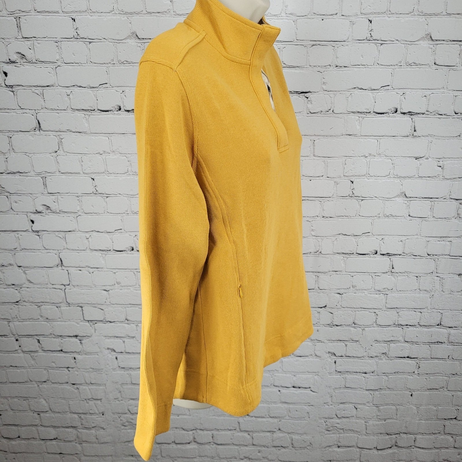 Orvis Yellow Print Trim Snap Collar Pullover Pockets Sweatshirt Size Medium M
