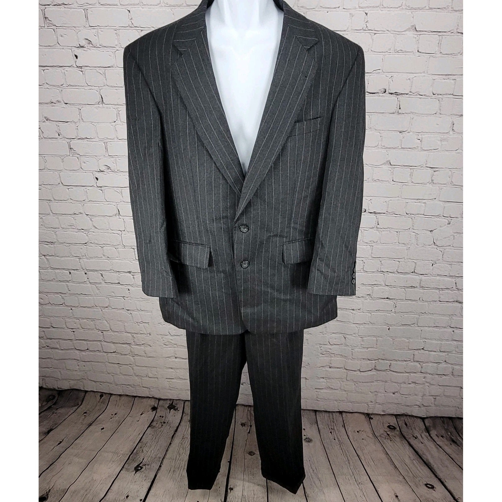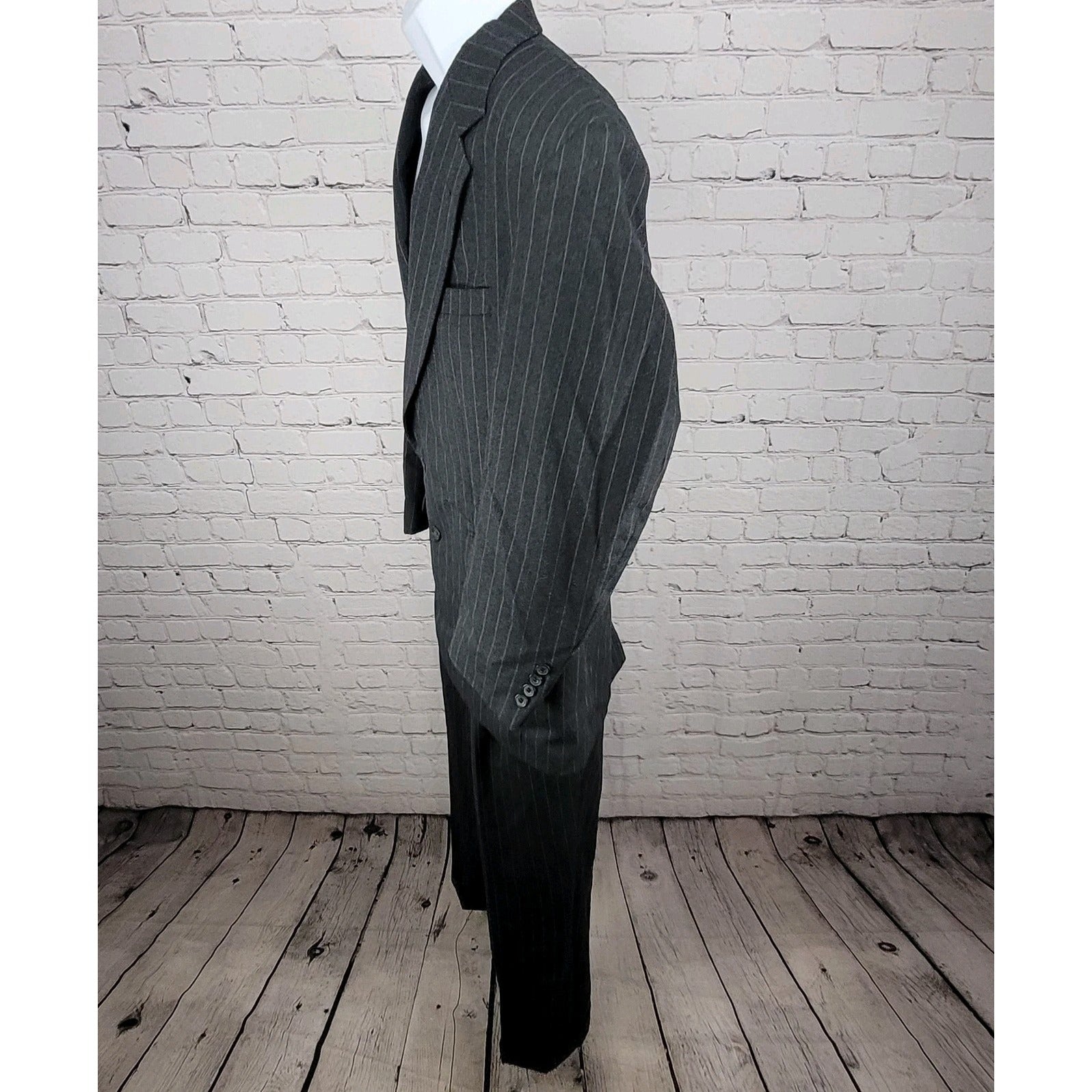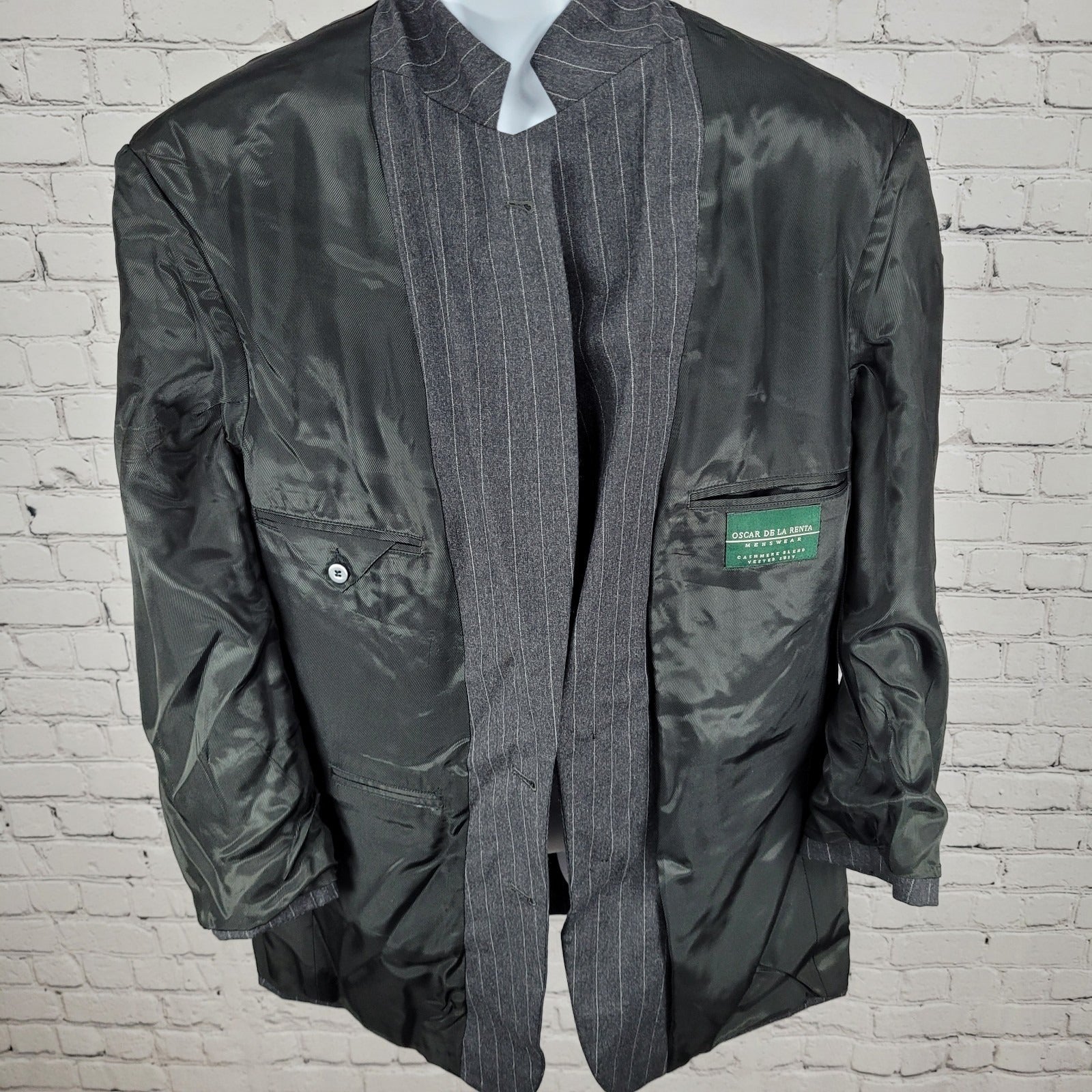 Oscar De La Renta Grey Pinstripe 100% Wool Blazer Suit Set Size 42R 36W (33x29)