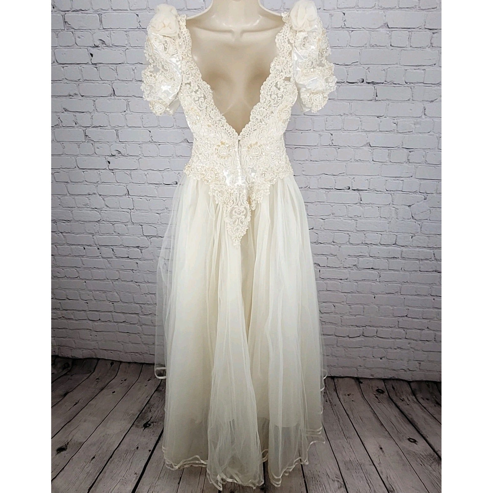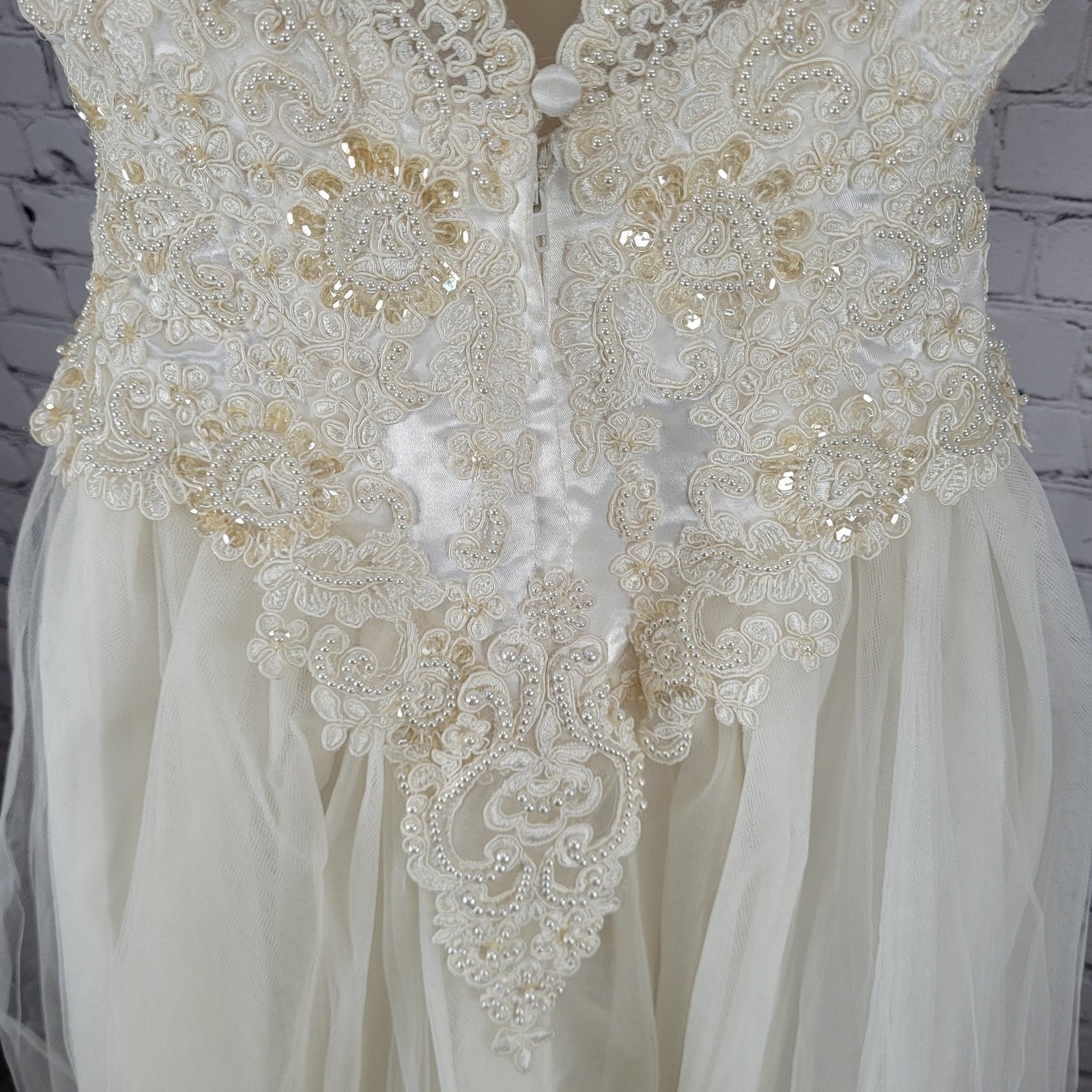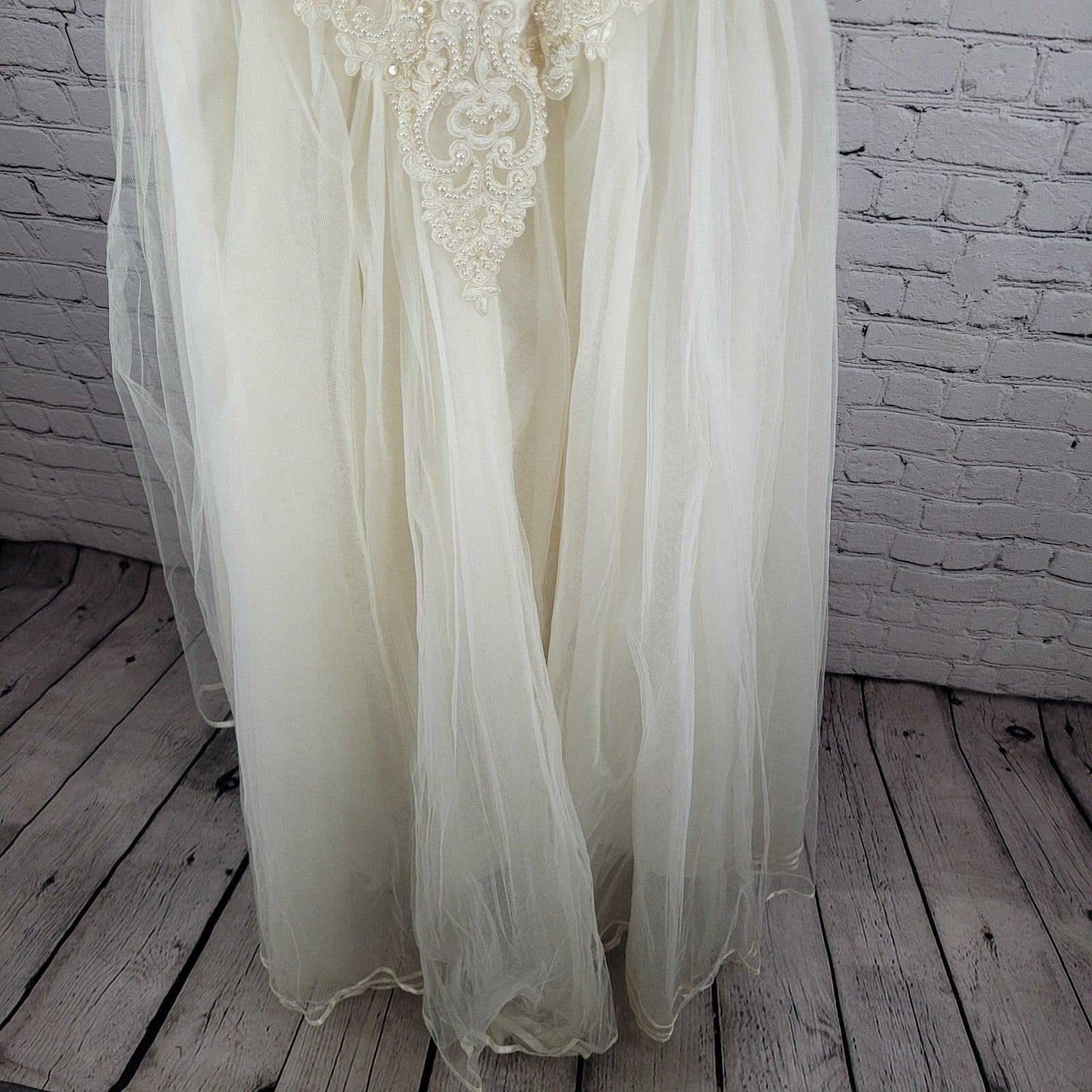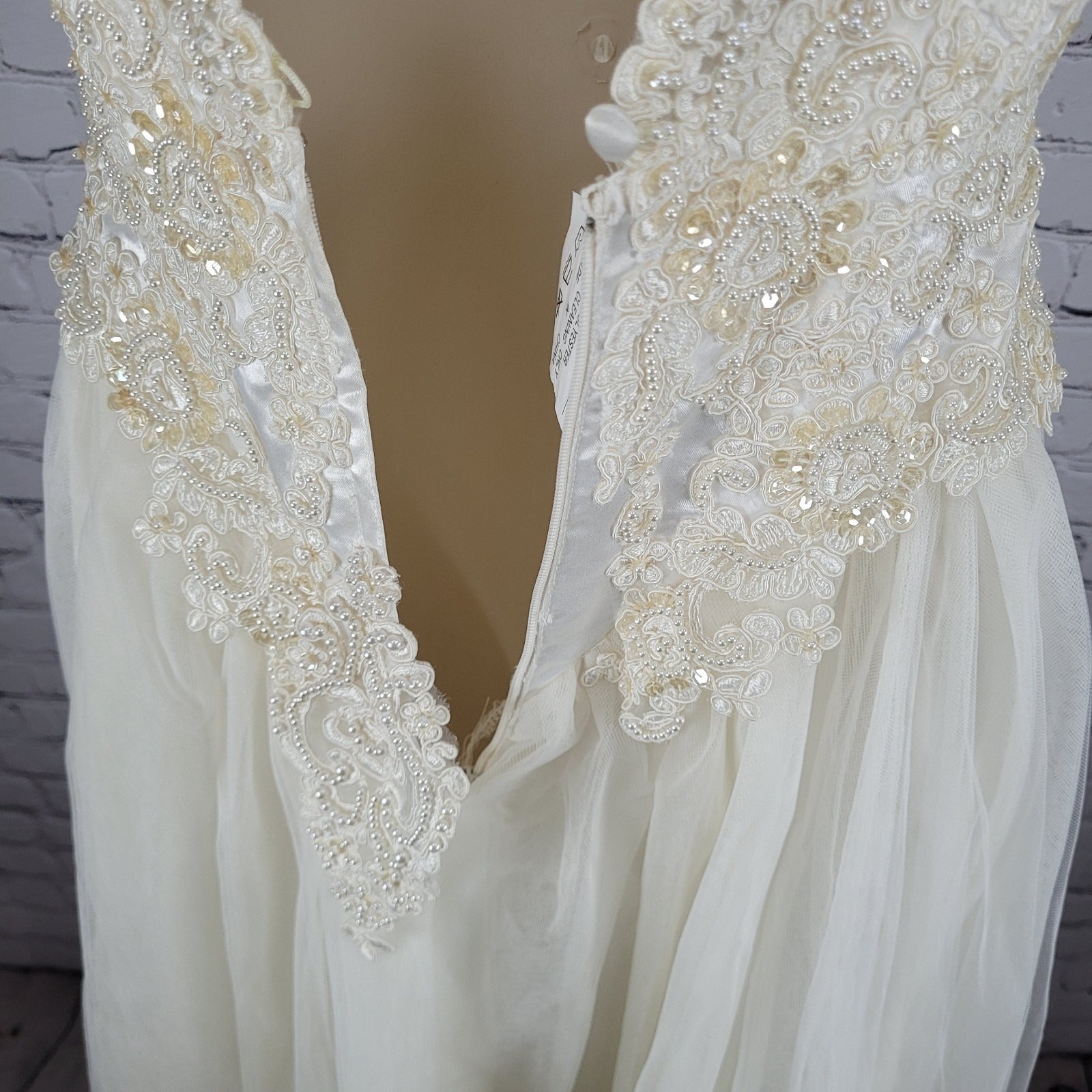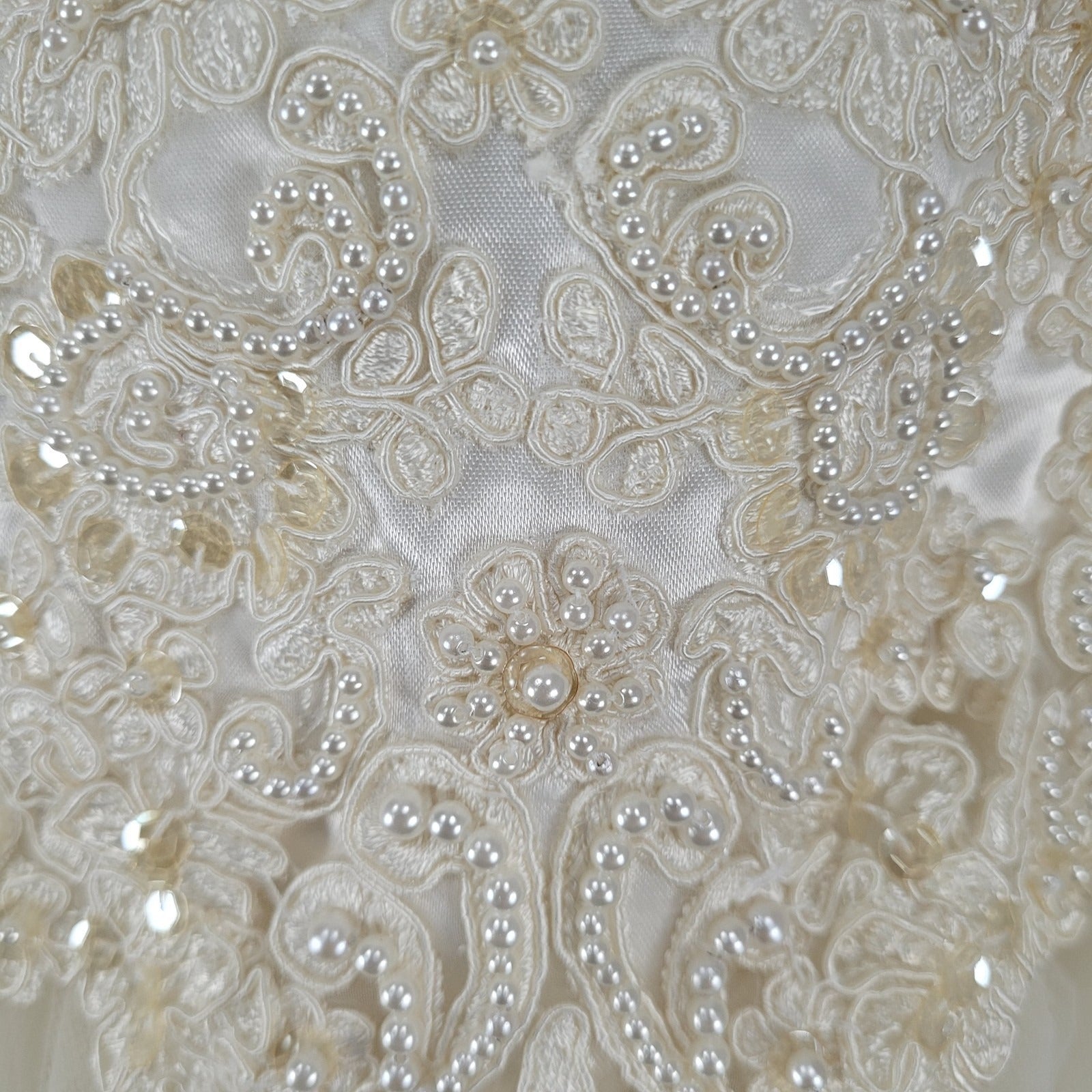 Pallas Athena Ivory Satin Embroidered Beaded Bridal Wedding Dress Gown Size P12