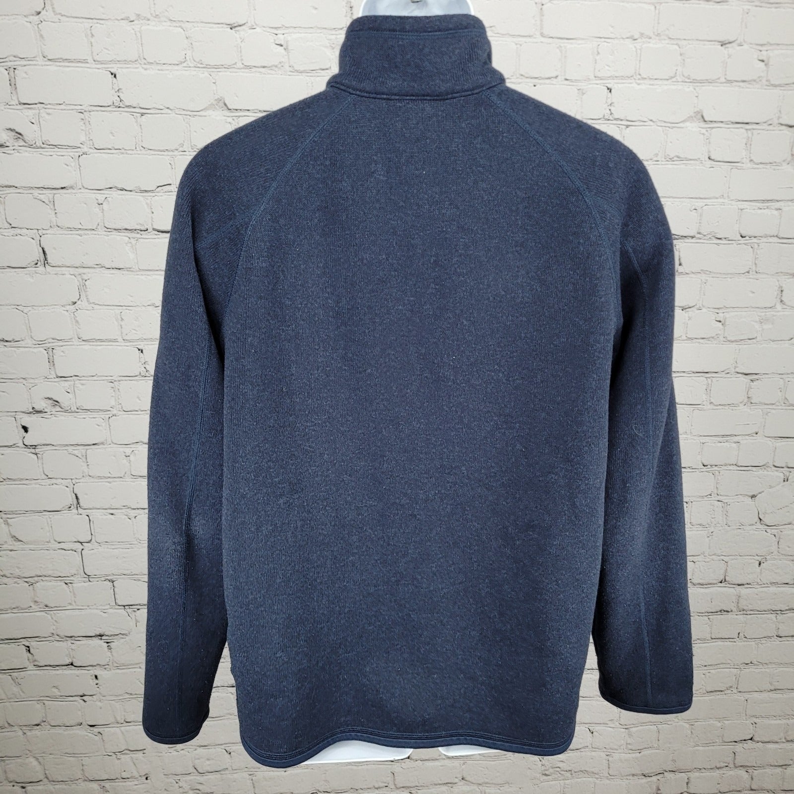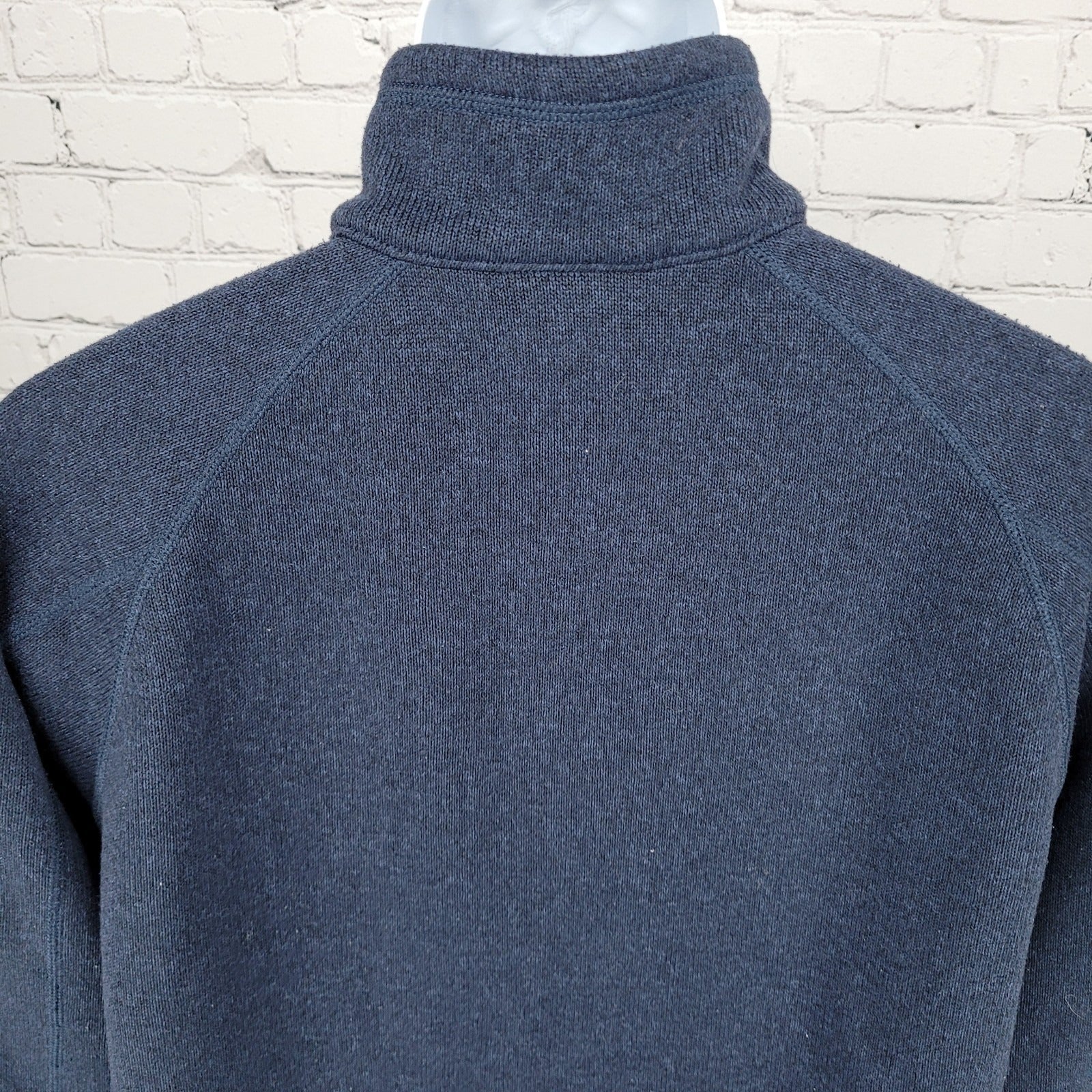 Patagonia Navy Knit Fleece Lined 1/4 Zip Logo Pullover Sweater Size Large L