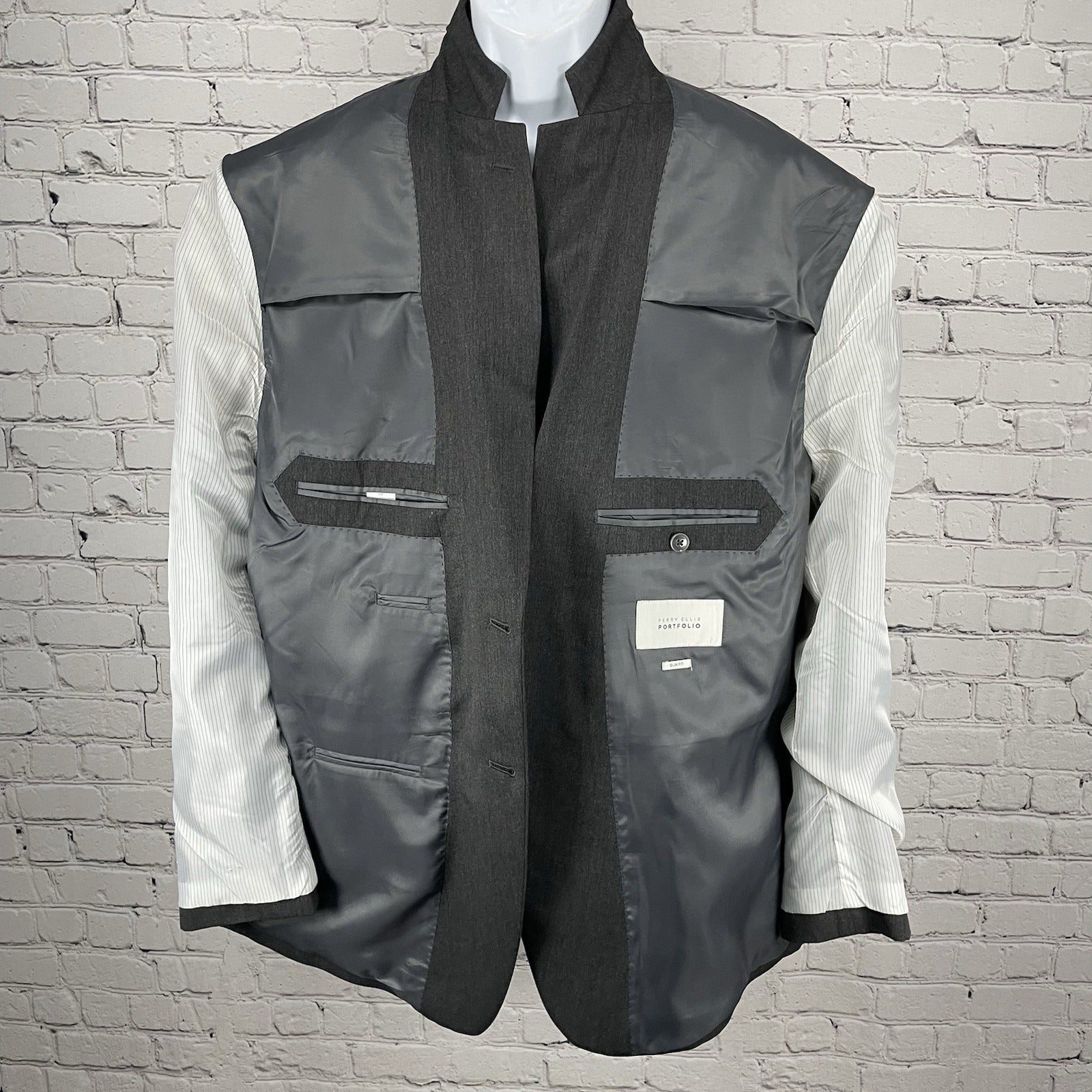 Perry Ellis Portfolio Grey Slim Fit 2 Button Notch Blazer Sport Coat Jacket 50R