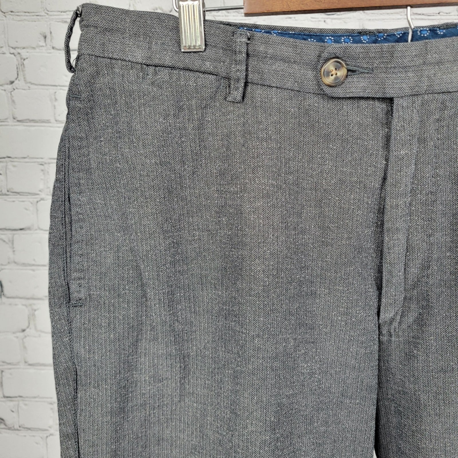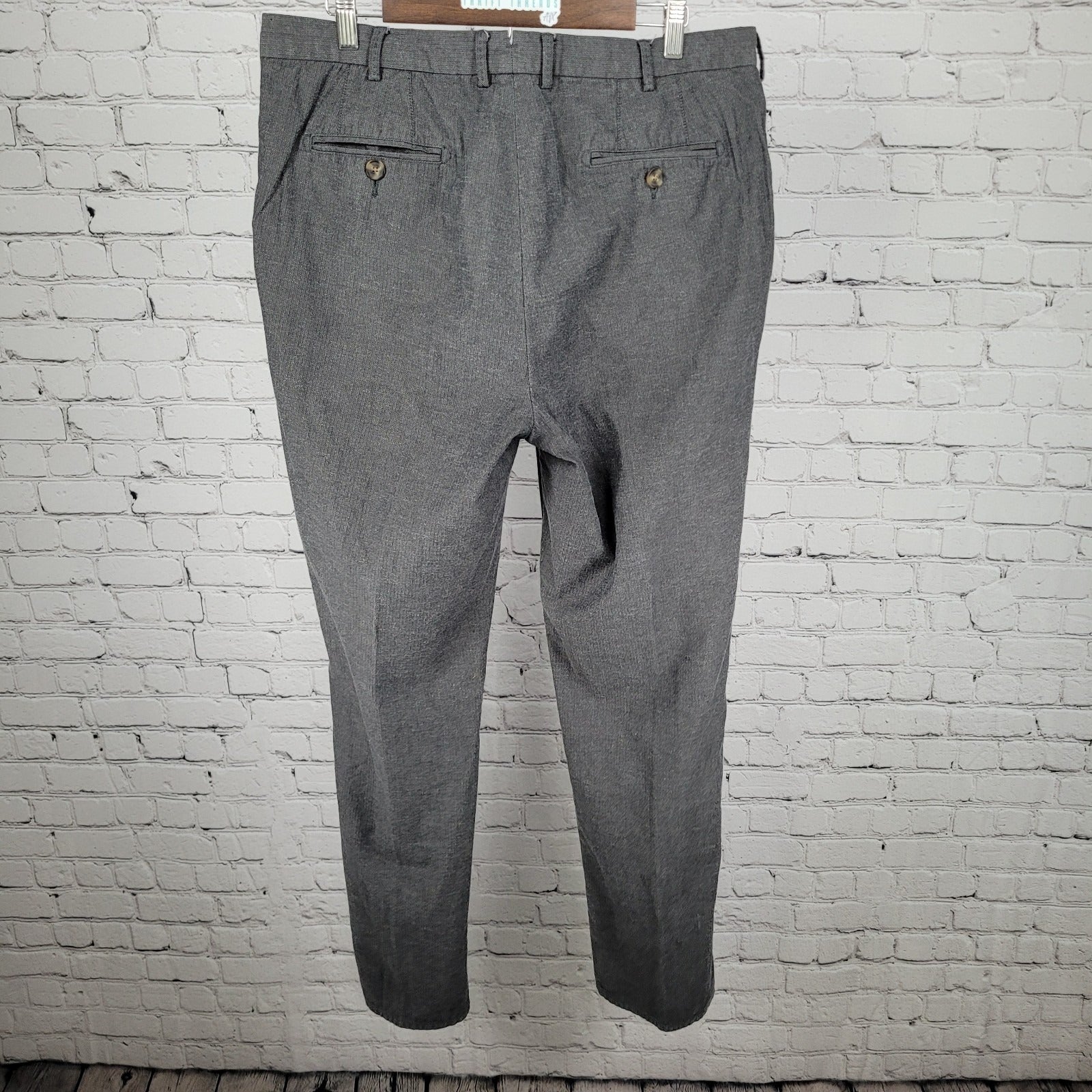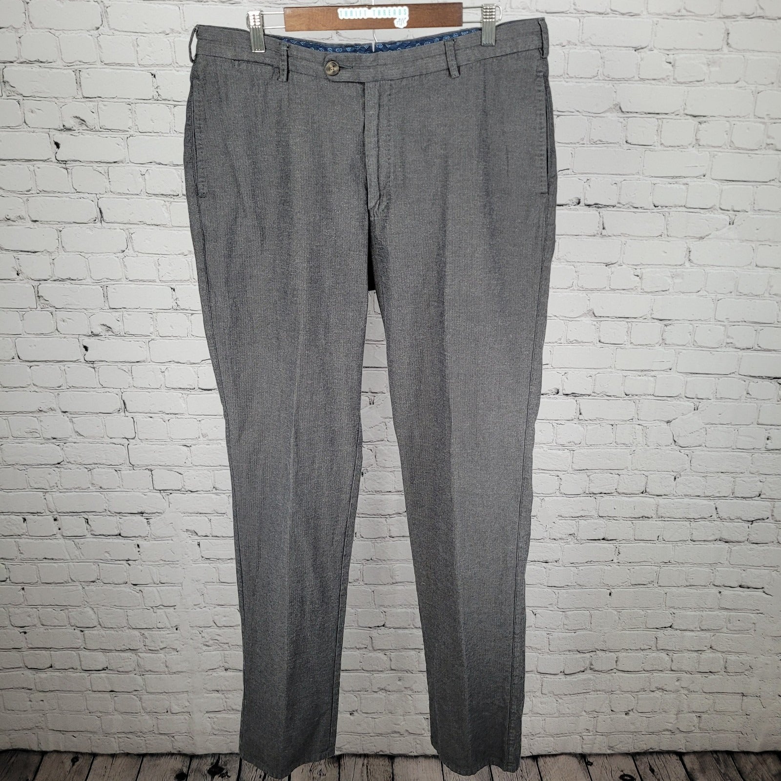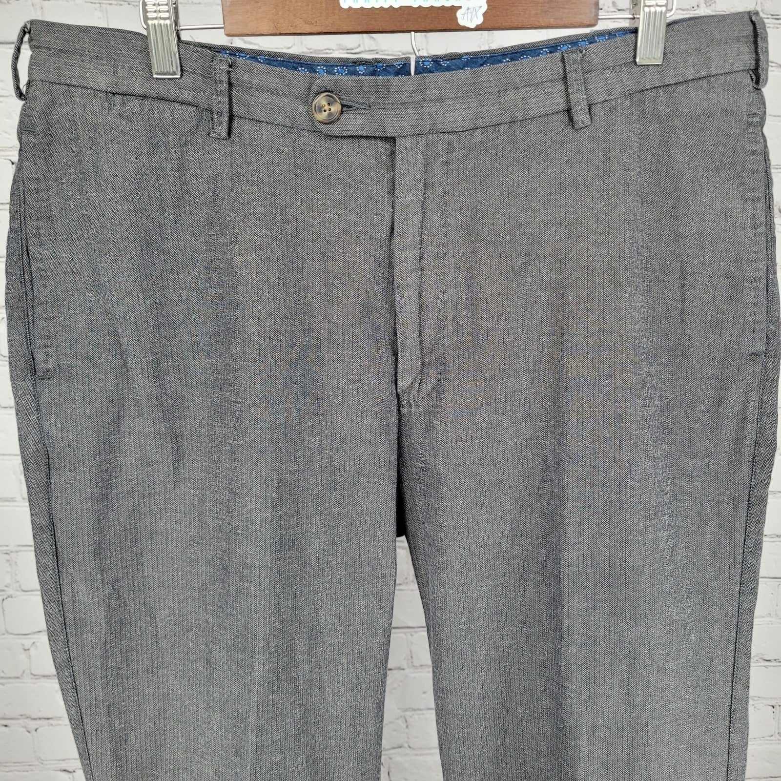 Peter Millar Grey 100% Cotton Herringbone Straight Dress Pants Size 36 (36x35)