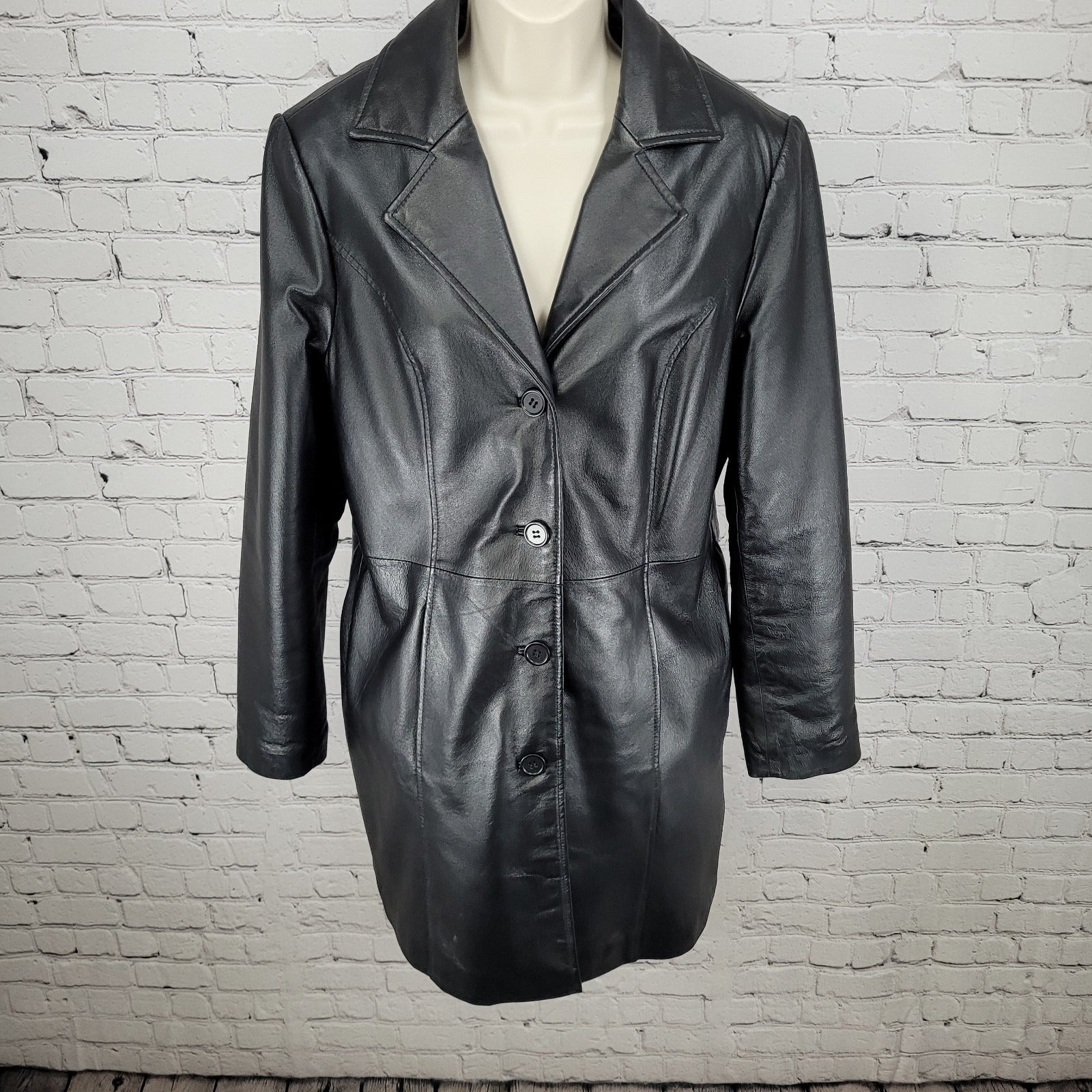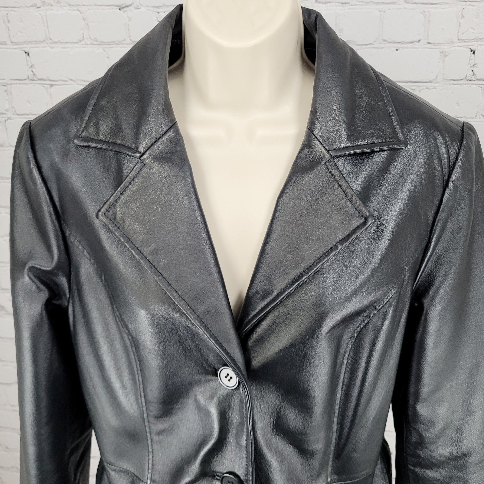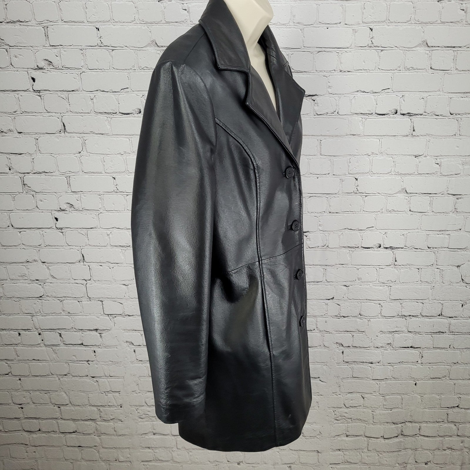 Phase Two Black Genuine Leather Buttoned Lined Inner Pocket Jacket Size Medium M