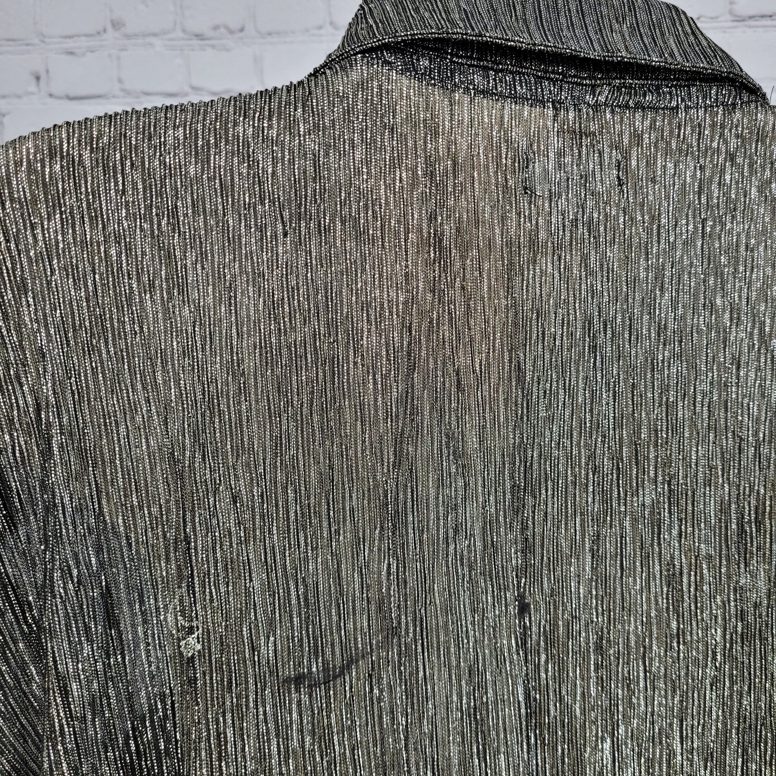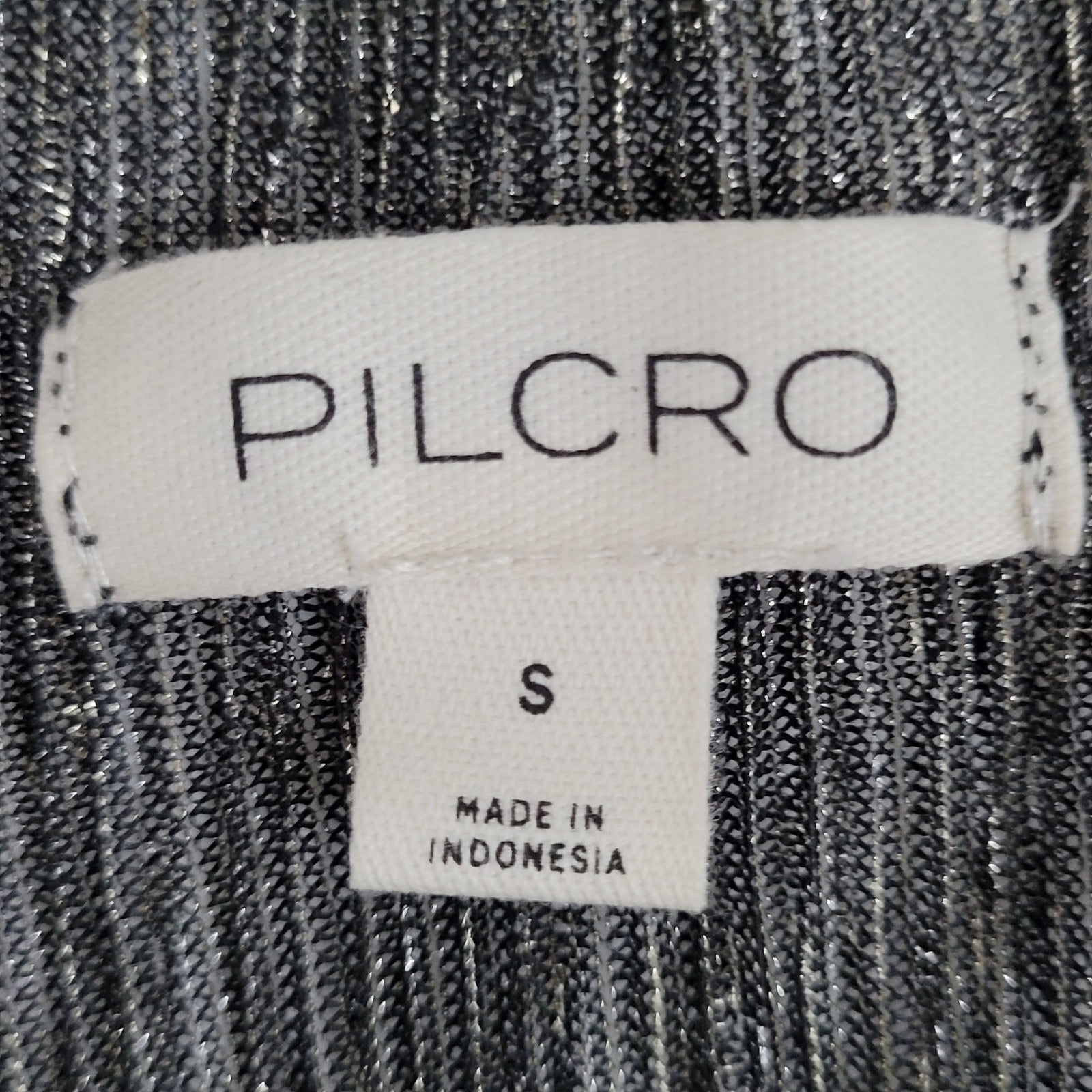 Pilcro Anthropologie Black Silver Metallic Sheer Long Sleeve Top Size Small S