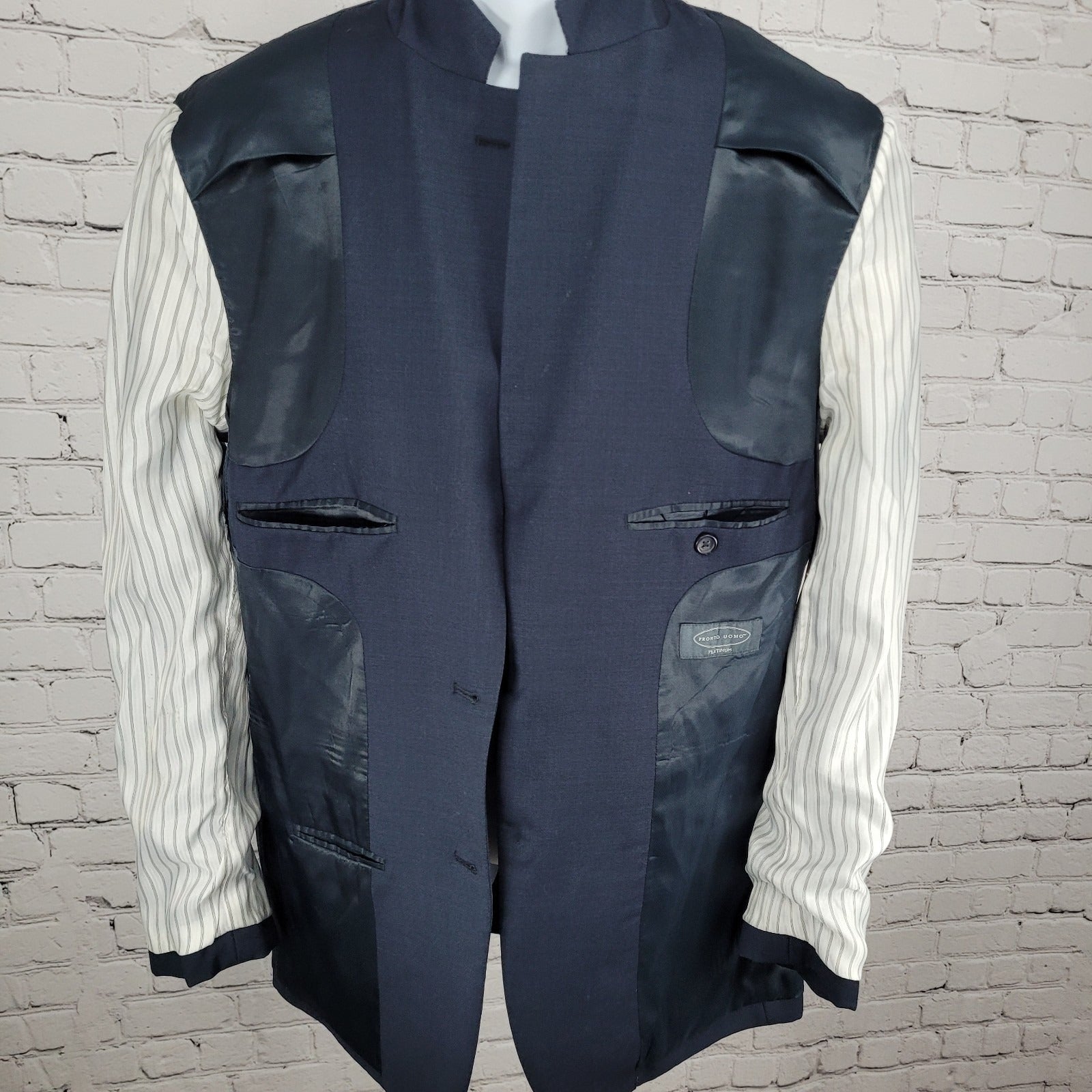 Pronto Uomo Platinum Navy 100% Wool 2 Button Notch Blazer Sport Coat Size 42L