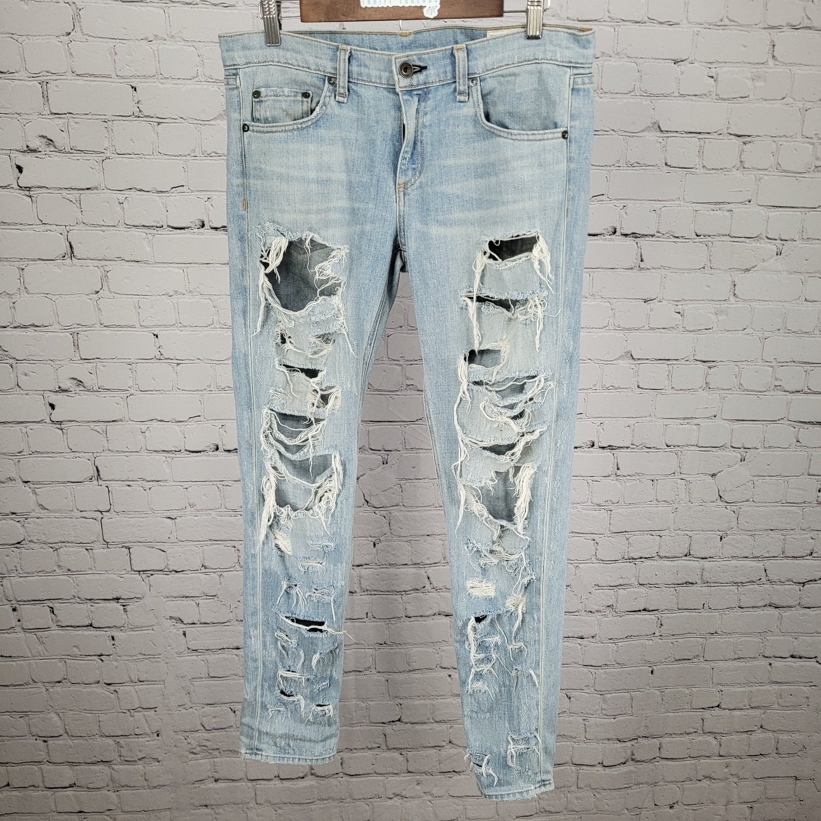 Rag & Bone Blue The Dre Distressed Light Wash Mid Rise Jeans USA Size 28 (33x31)
