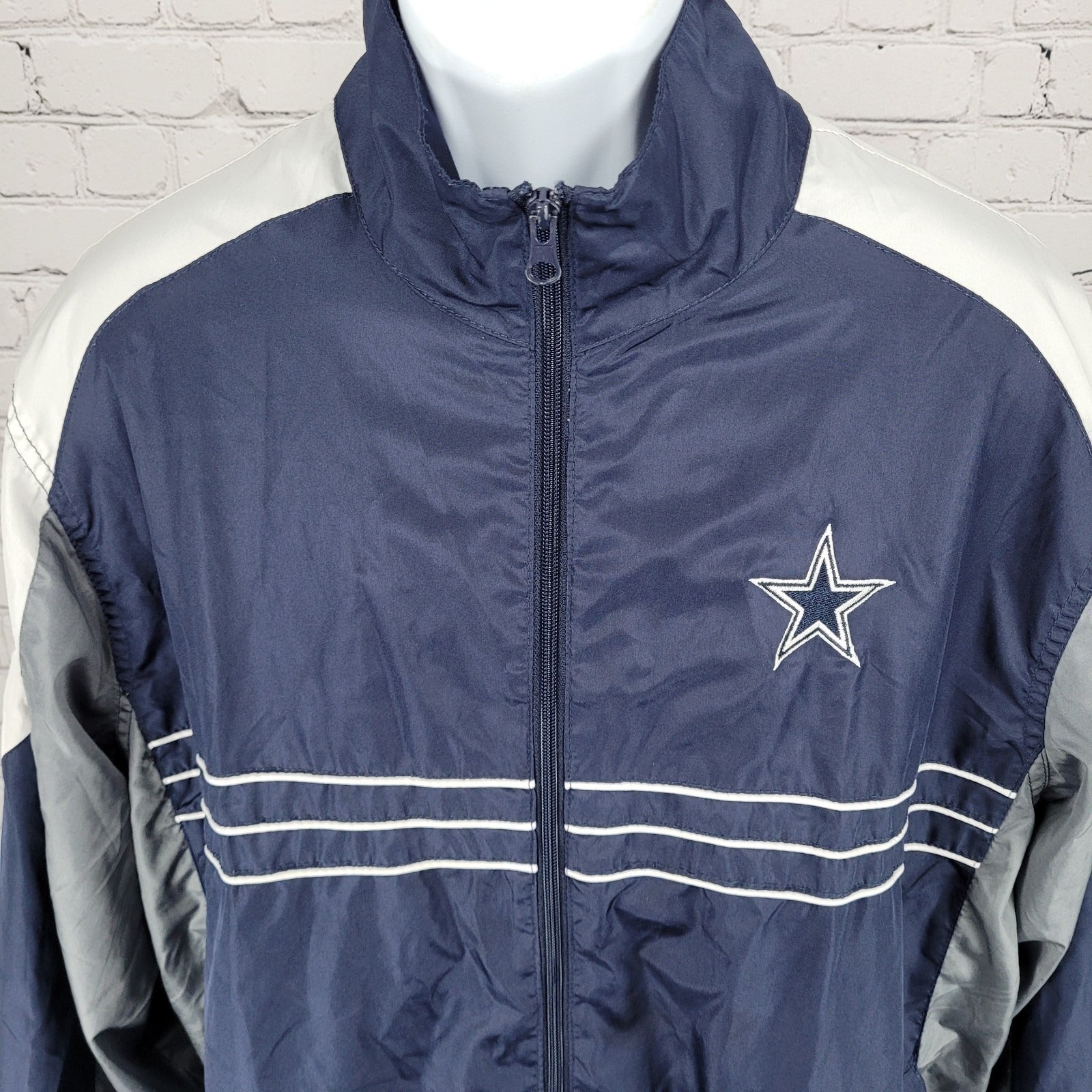 Reebok Team Apparel Navy NFL Cowboys Full Zip Pockets Windbreaker Jacket Size XL