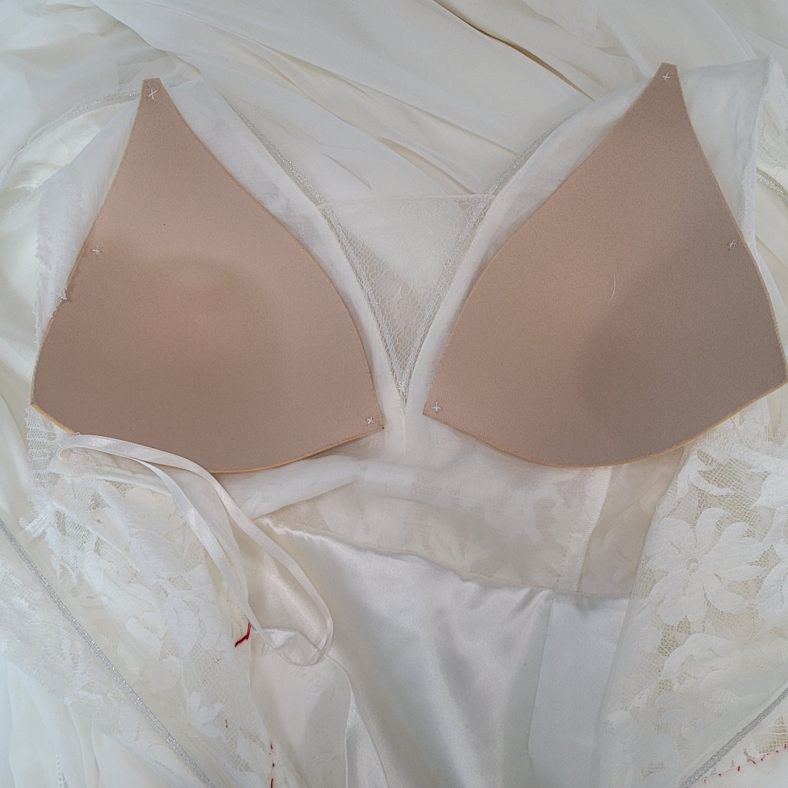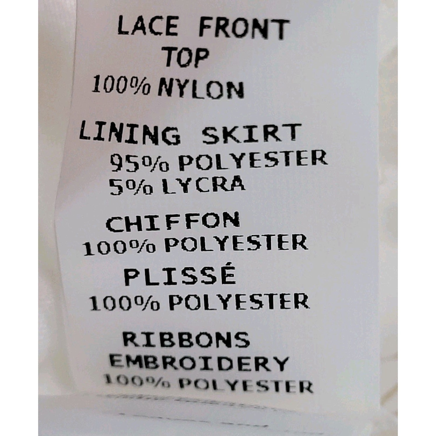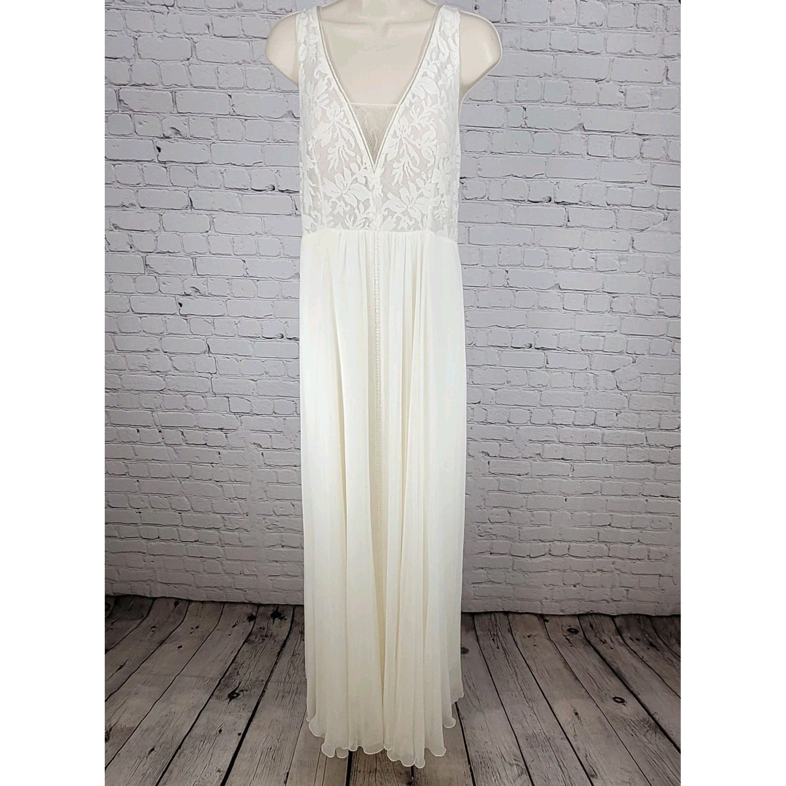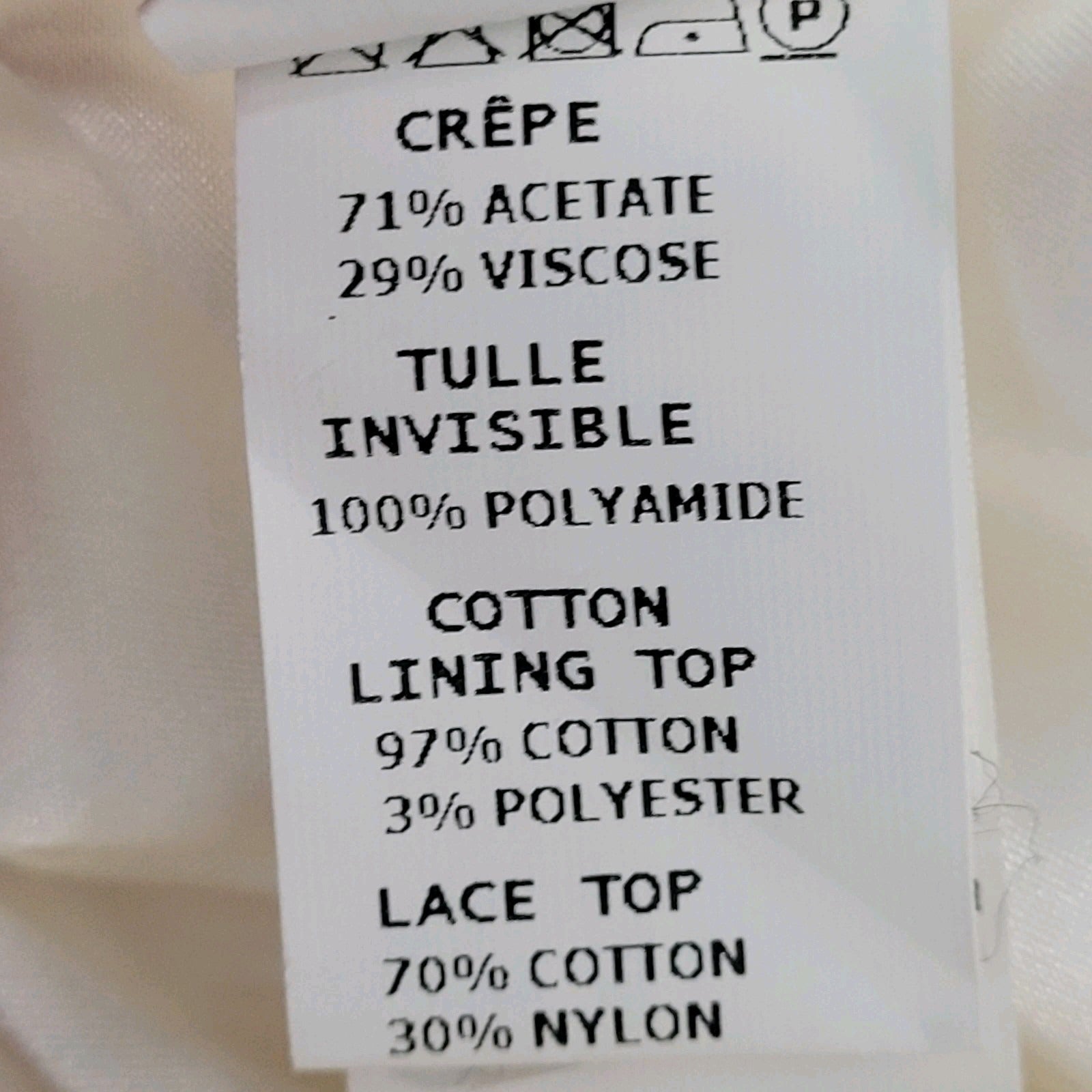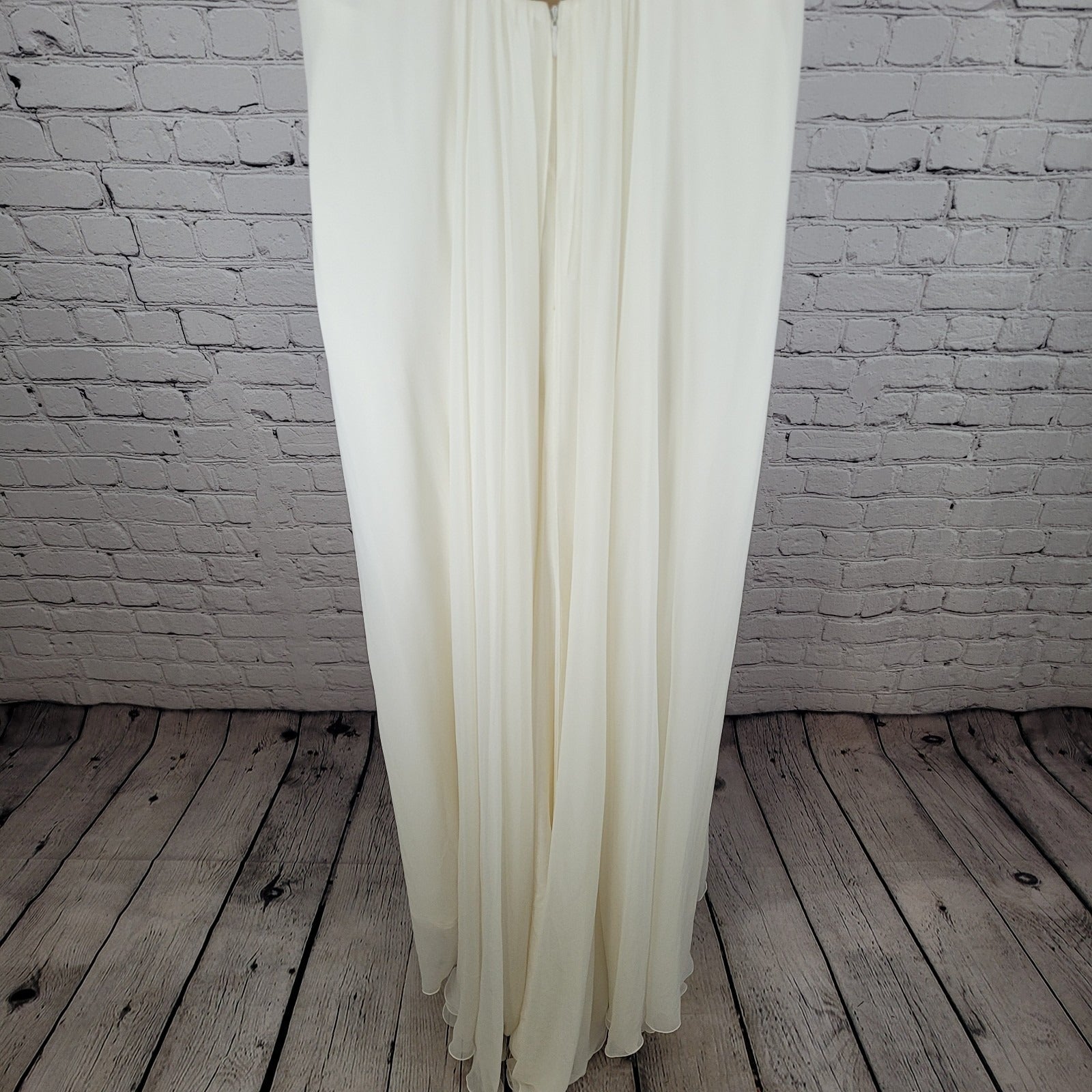 The Rembo Styling Ivory Lace Padded Top Wedding Dress is a stunning formal gown perfect for a bride or special occasion. Made in Europe, this size US XL dress features a feminine style with a delicate ivory lace top and padded design. With a chest size of 34 inches and a shoulder to hem length of 62 inches, this dress is sure to make a timeless statement.