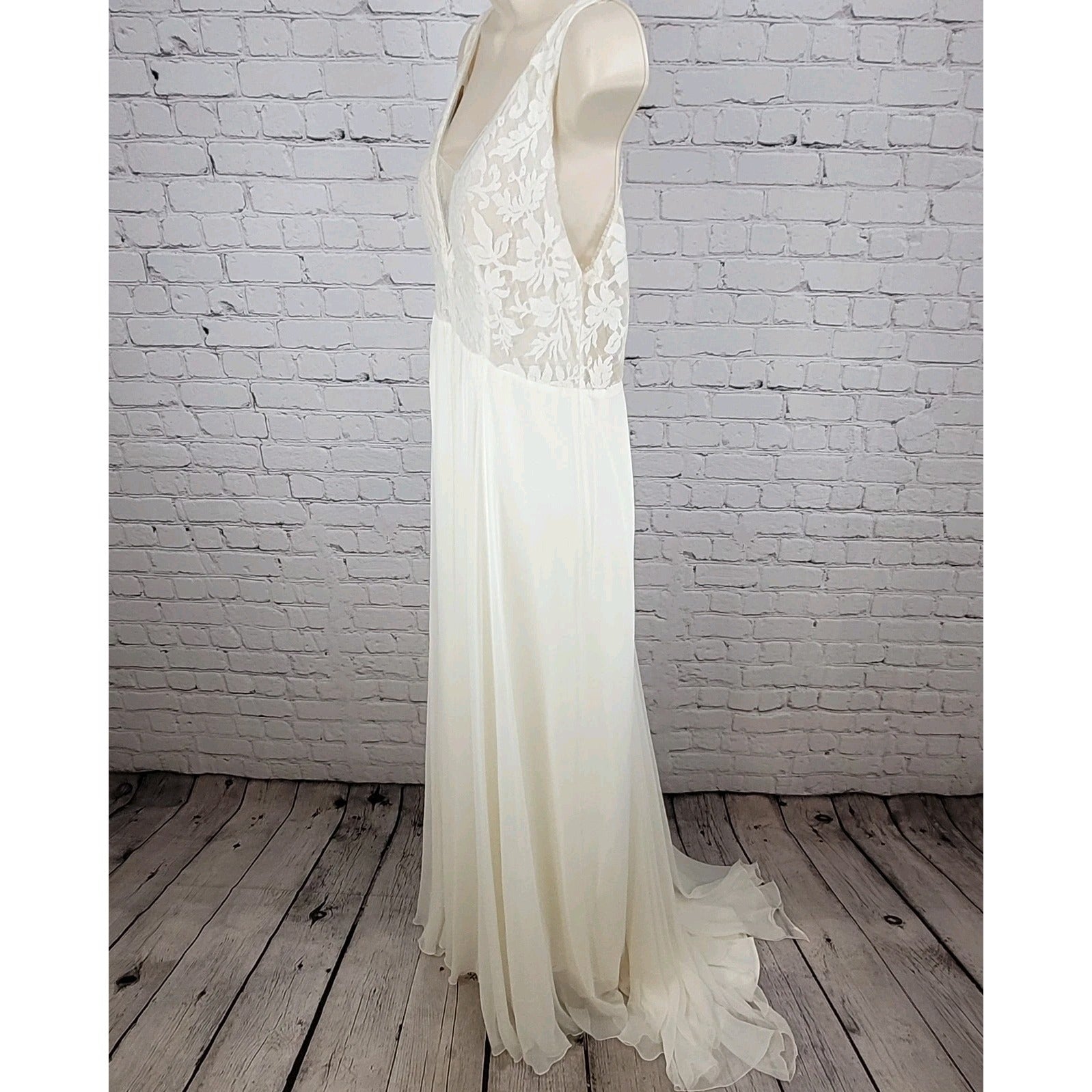 Rembo Styling Ivory Feminine Lace V-Neck Backless Wedding Dress Europe US XL