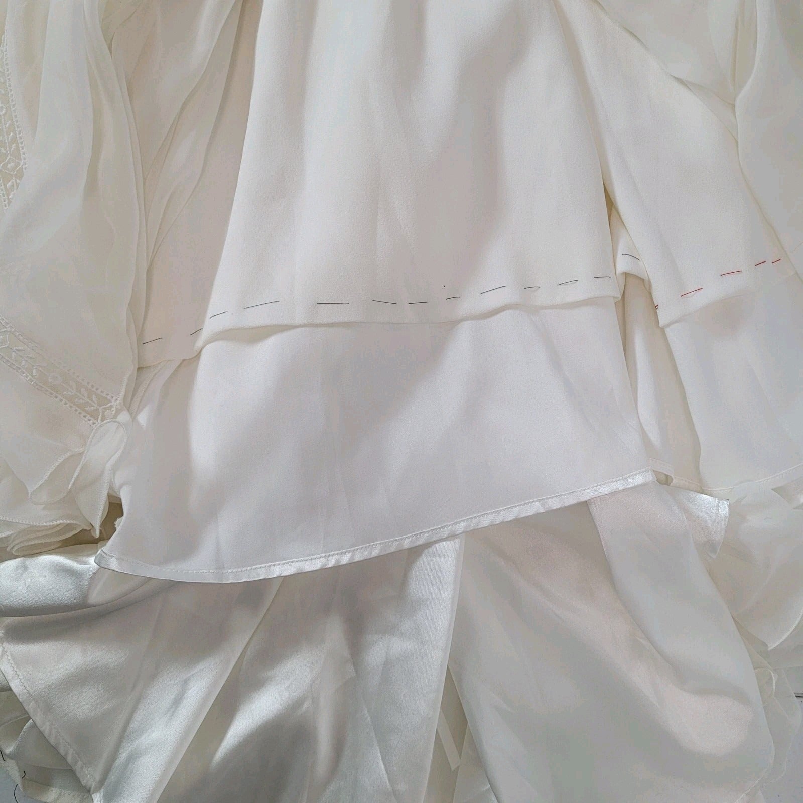 Red & black thread used to make altercations on back and bottom hem, as pictured.