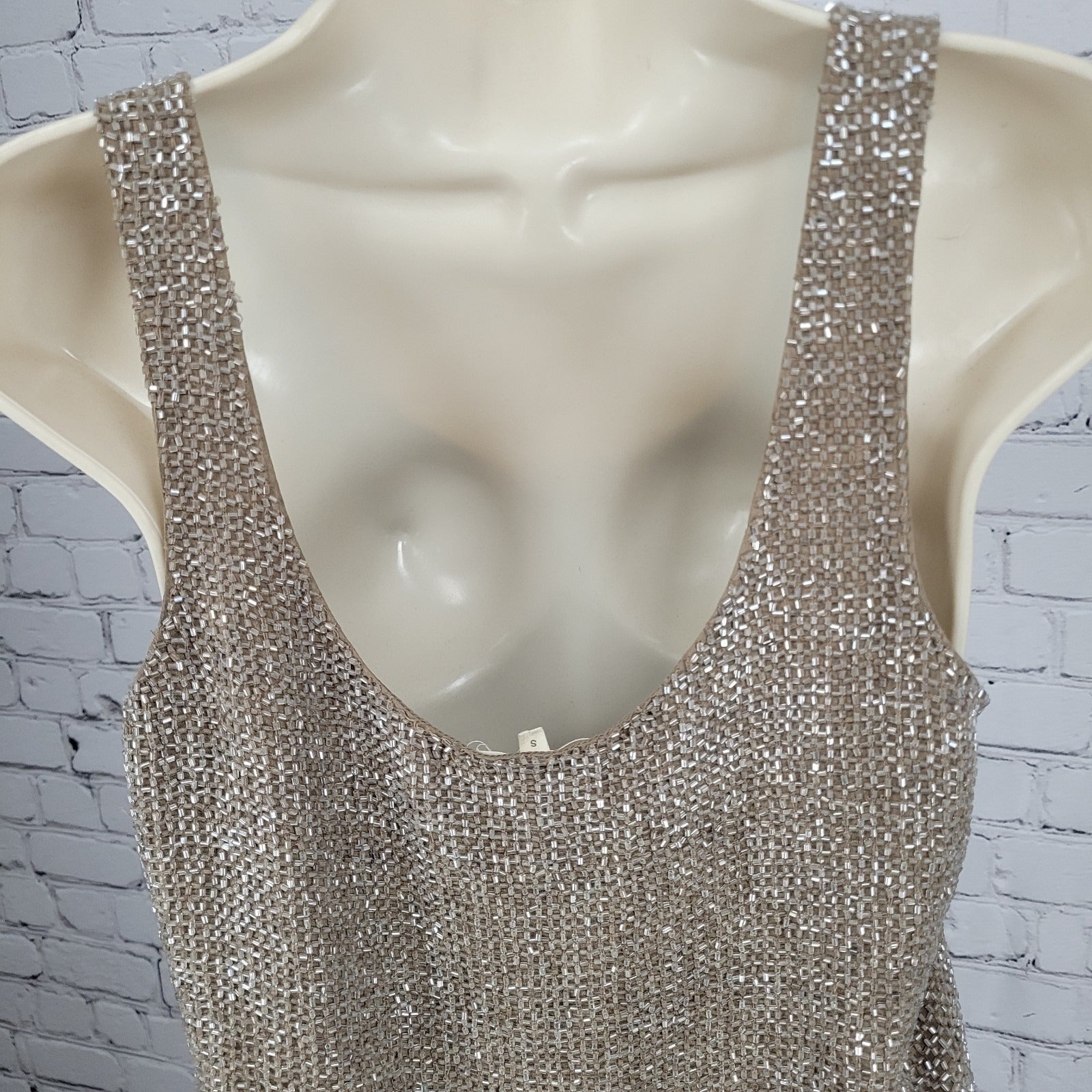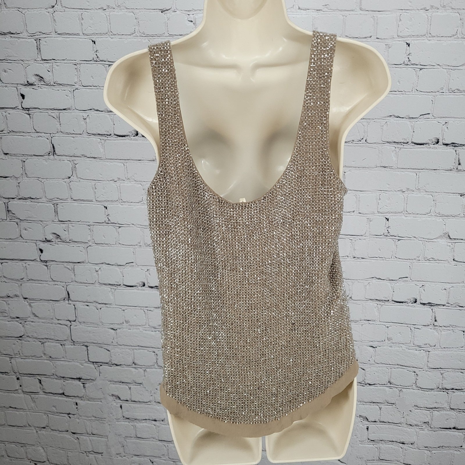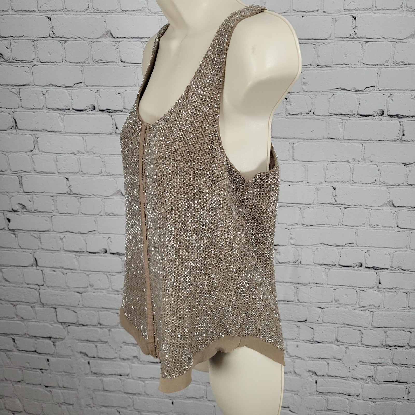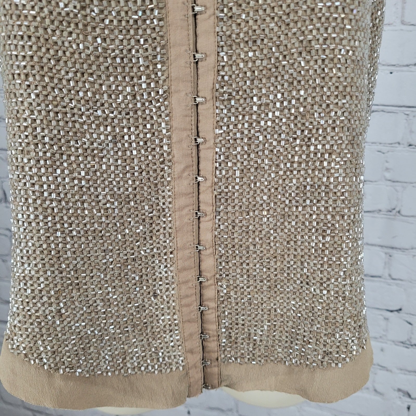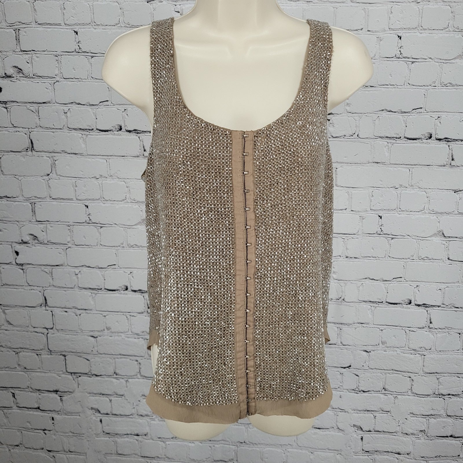 Renzo + Kai Brown 100% Silk Heavy Beaded Hook & Eye Lined Tank Top Size Small S