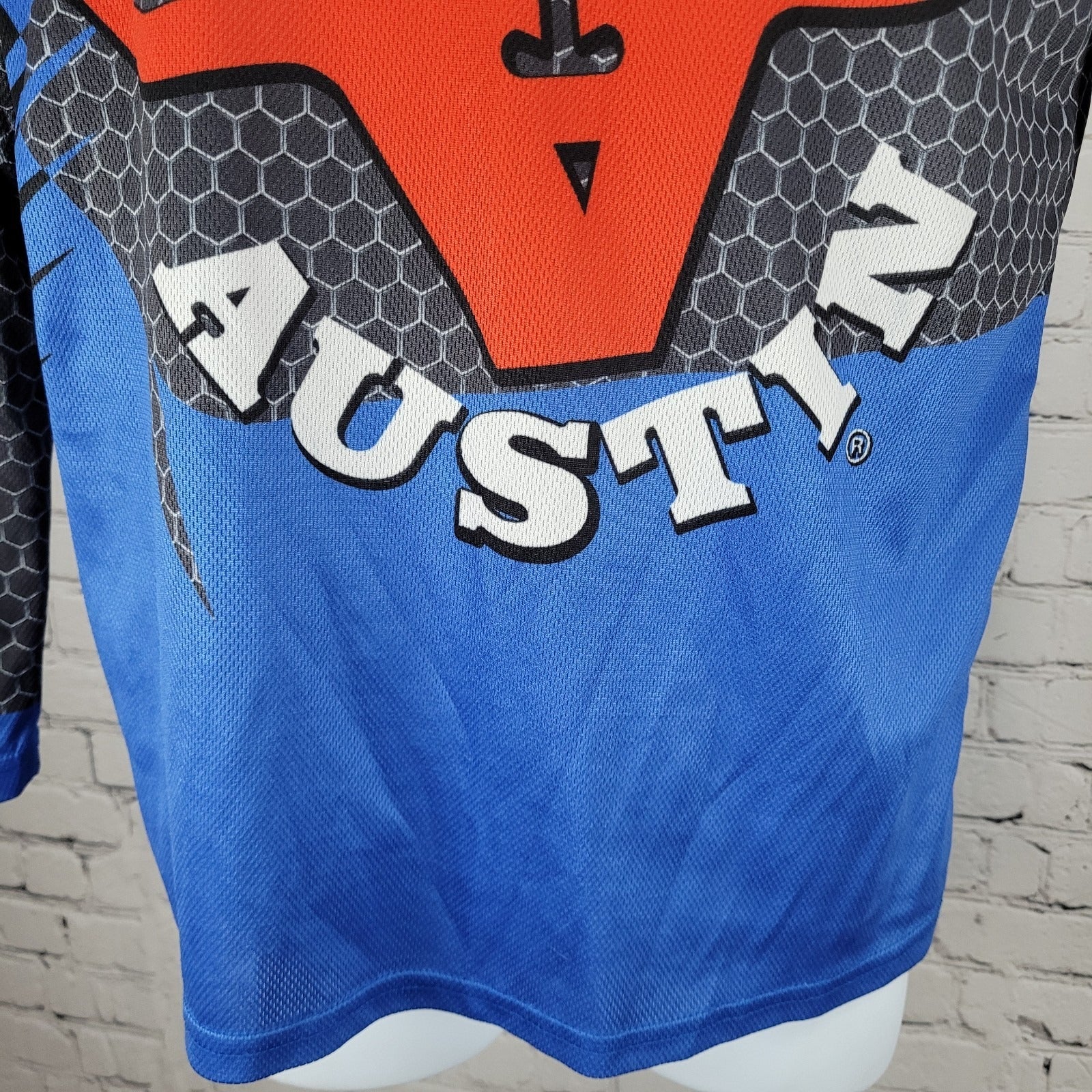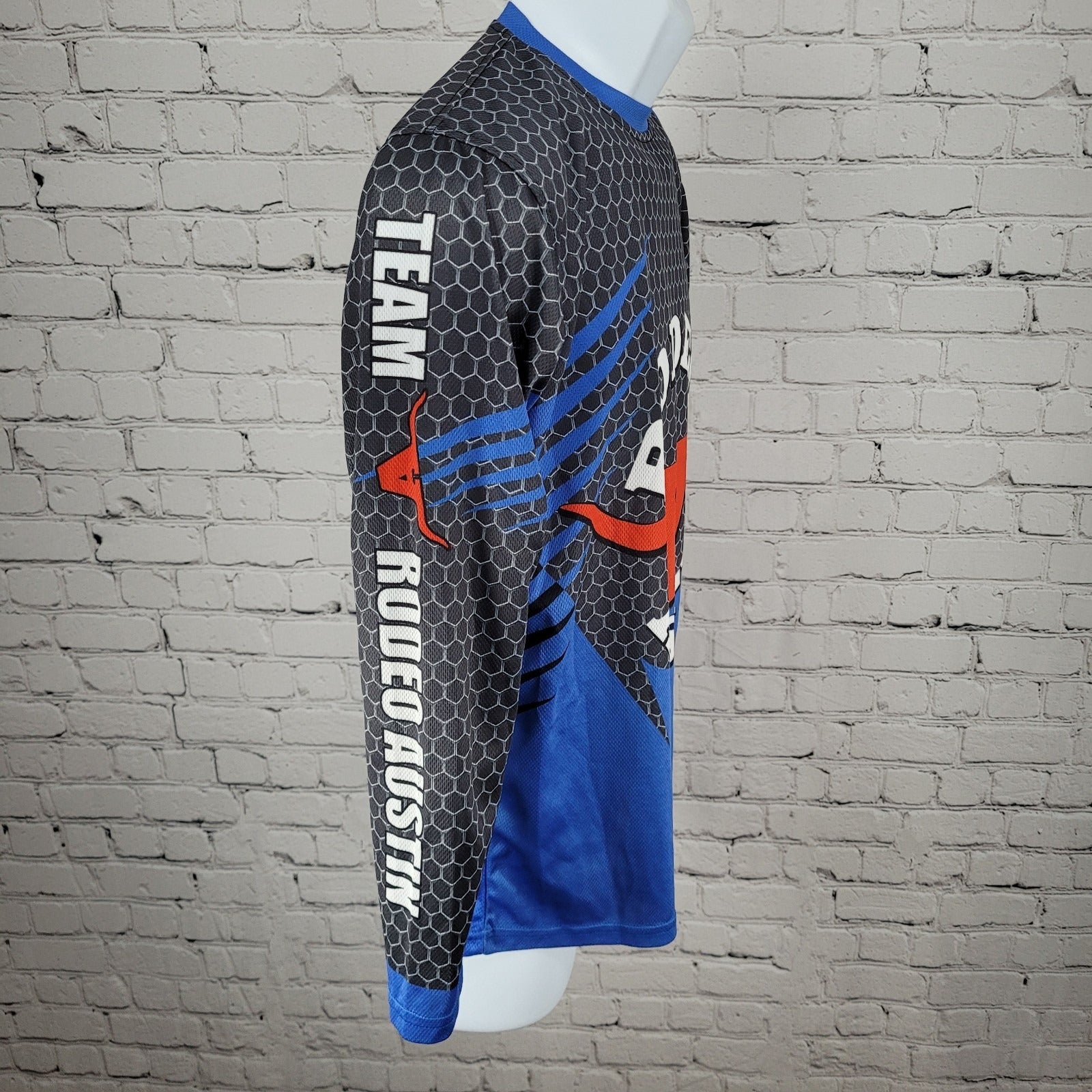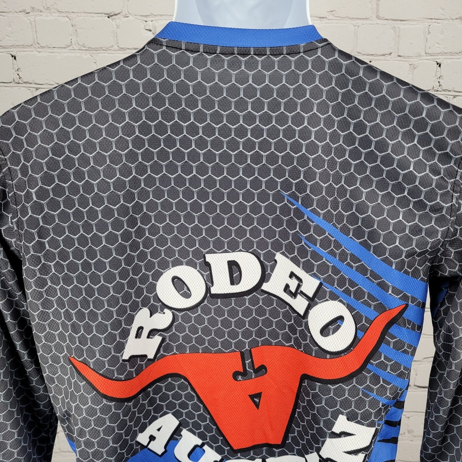 Rodeo Austin Texas USA Grey Blue Bullfighter Jersey Long Sleeve Shirt Small S