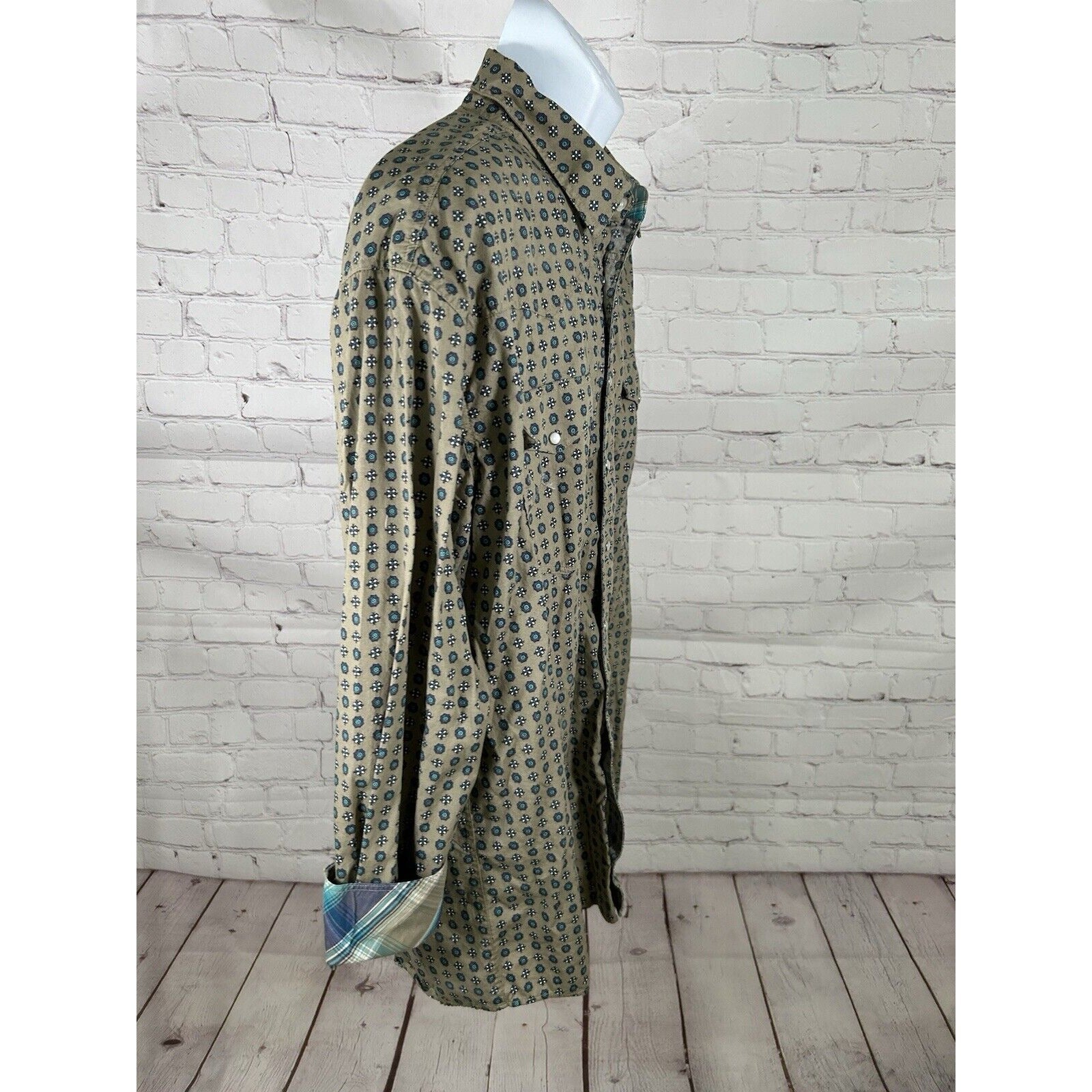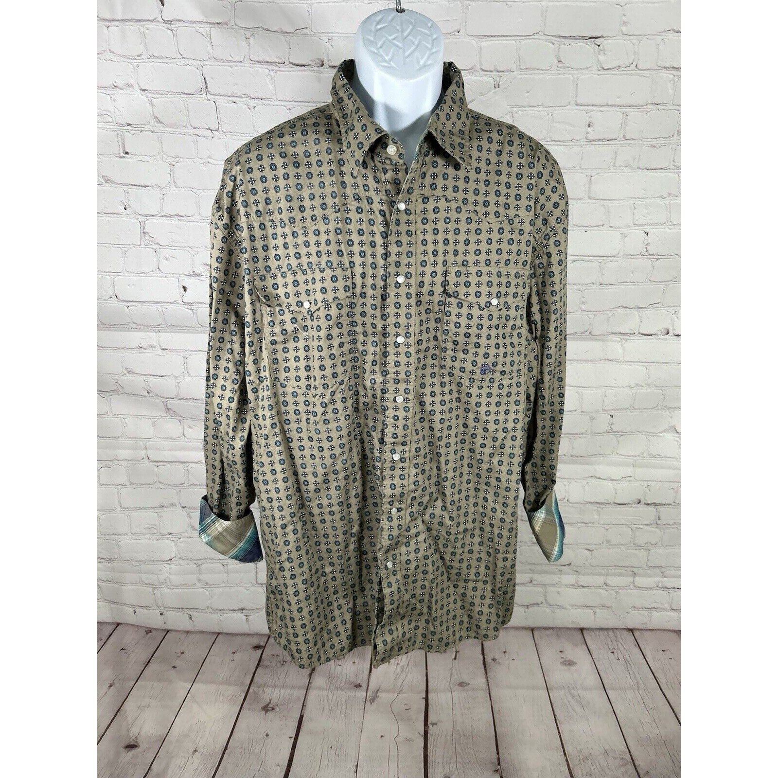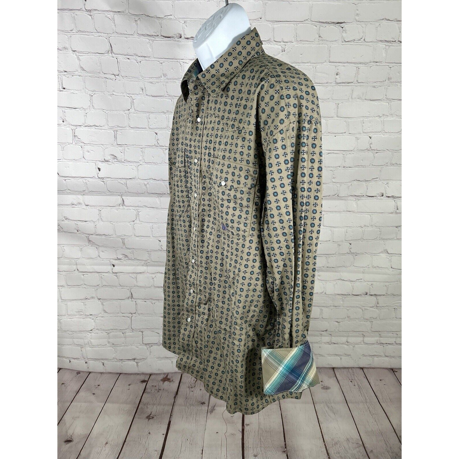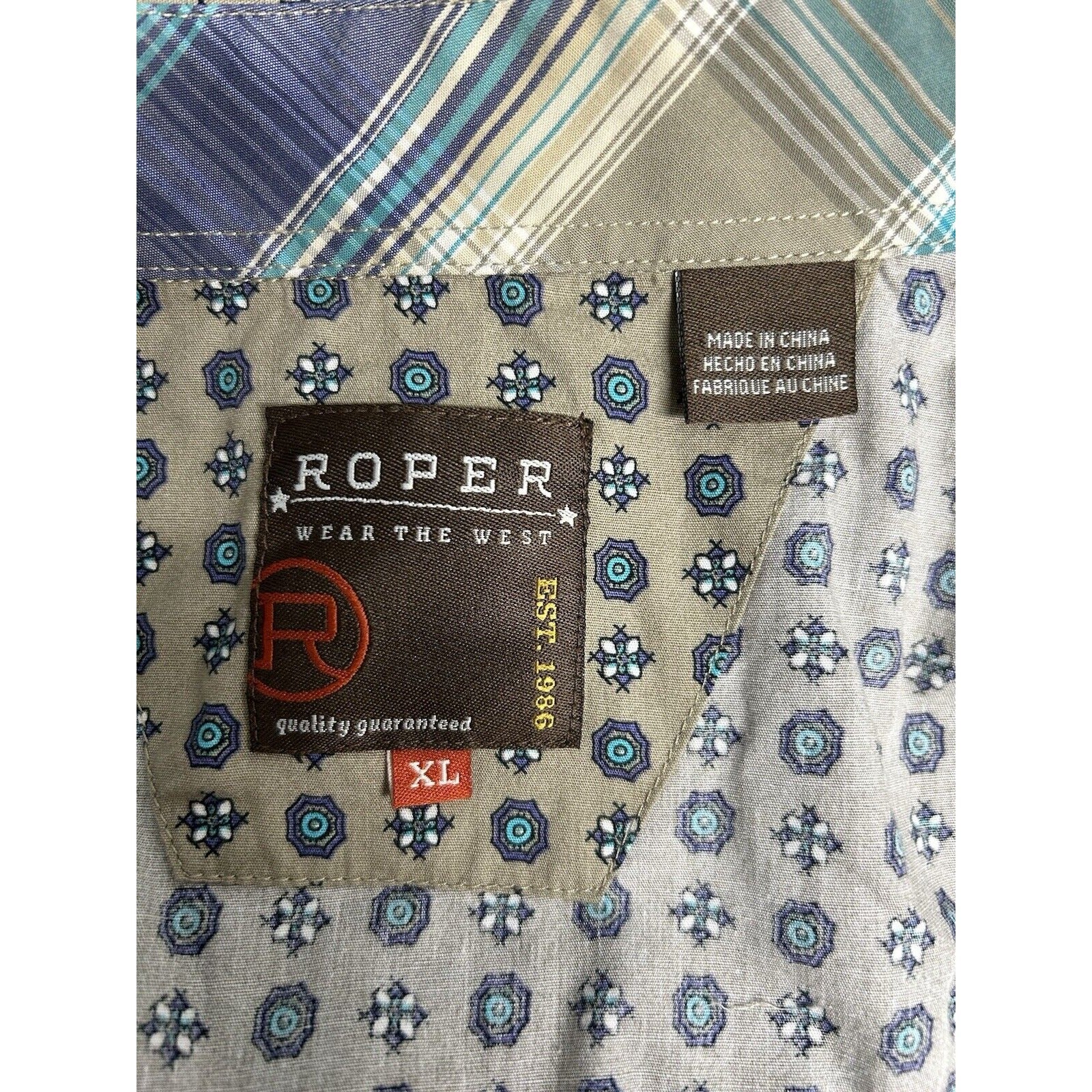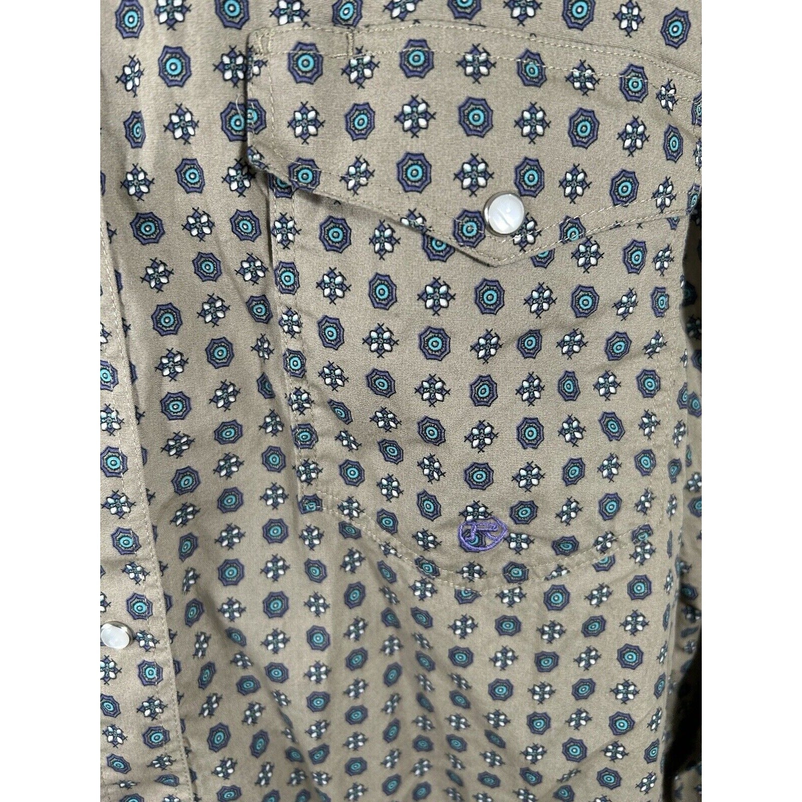 Roper Wear The West Geometric Green Blue Purple Long Sleeve Pearl Snap Shirt XL