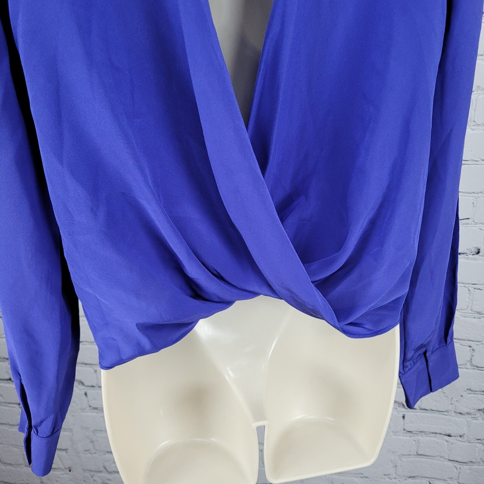 Rory Beca Blue 100% Silk Open Back Snap Closure Long Sleeve Top USA Small S