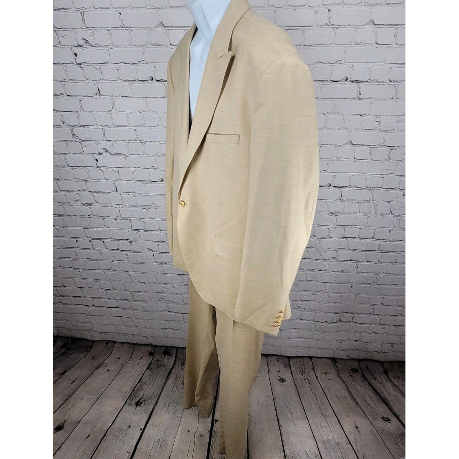 Rossi Man Cream Beige Slim Fit Full Suit 1 Button Peak Jacket 50 Pants 43x35