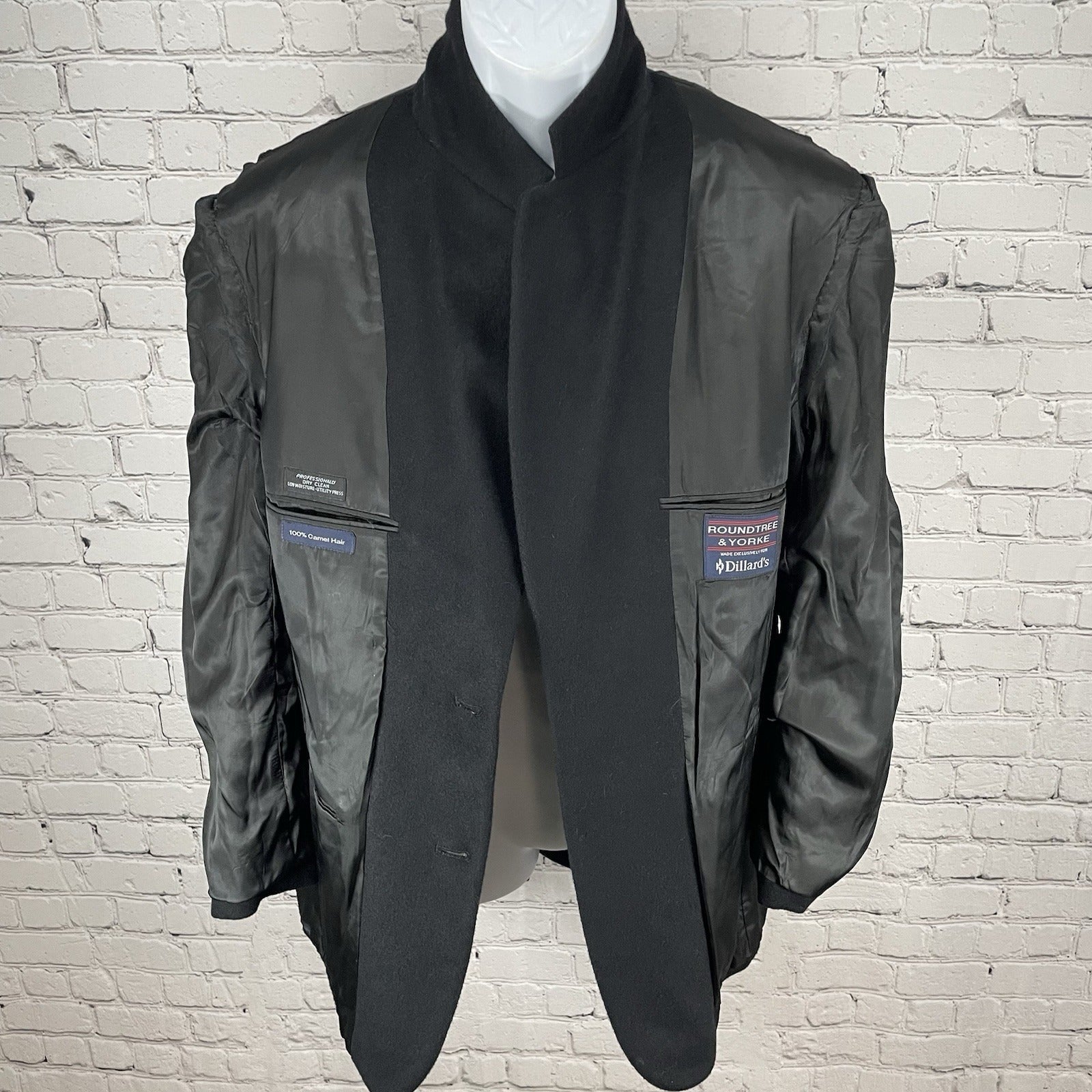 Roundtree & Yorke Black Camelhair 2 Button Vented Notch Blazer Jacket Size 38R