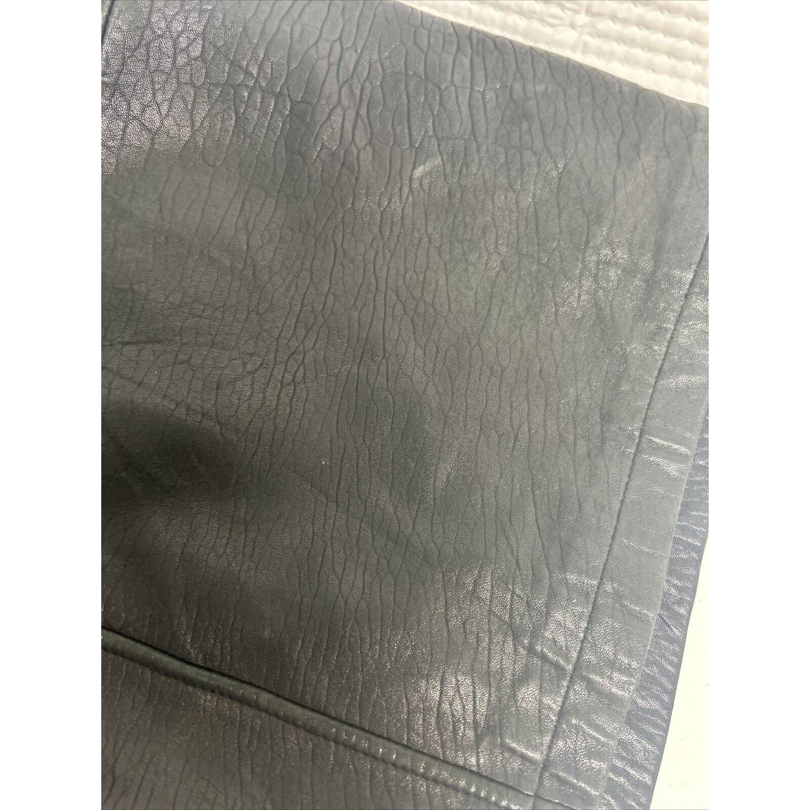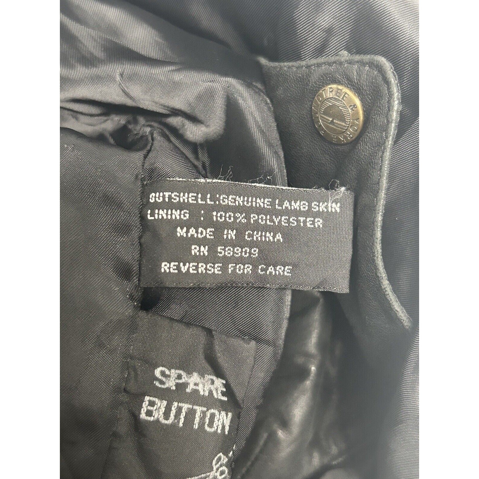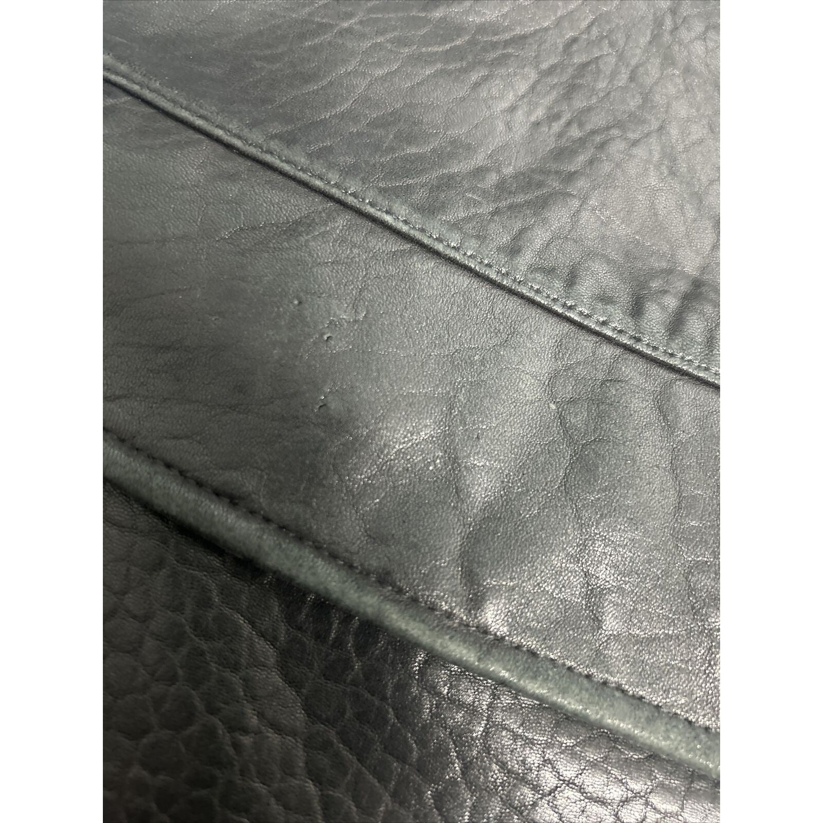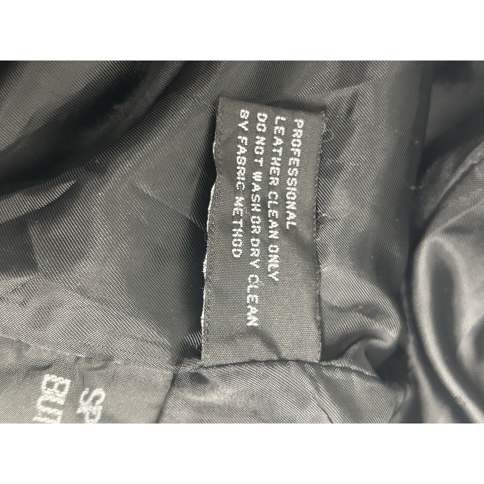 Some obvious wear on sleeves and down center front of jacket. Both sleeve buttons are missing. Defects to leather on upper back just below collar, left shoulder, right side pocket flap, left side above pocket, lower back side, and on collar. See pictures for reference.