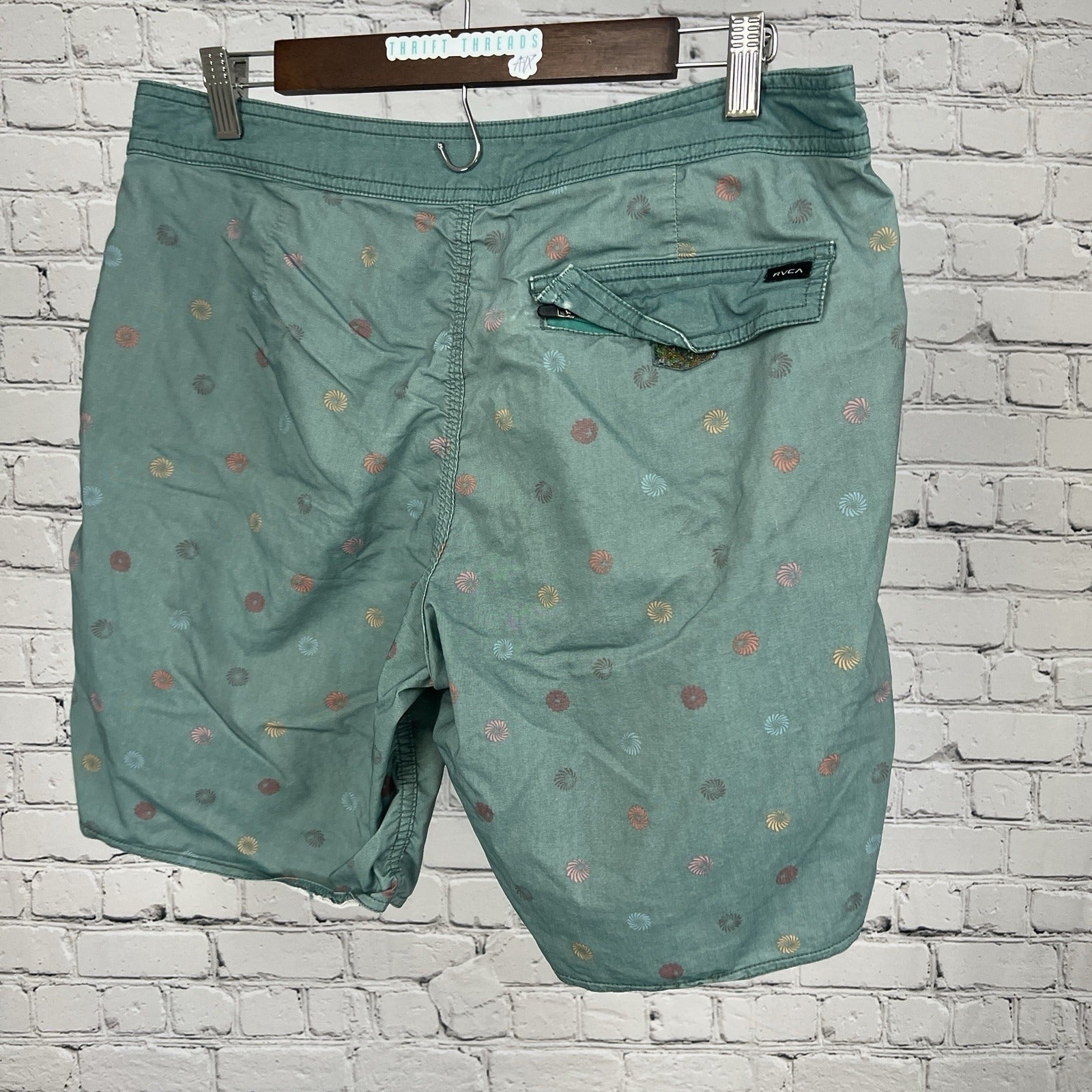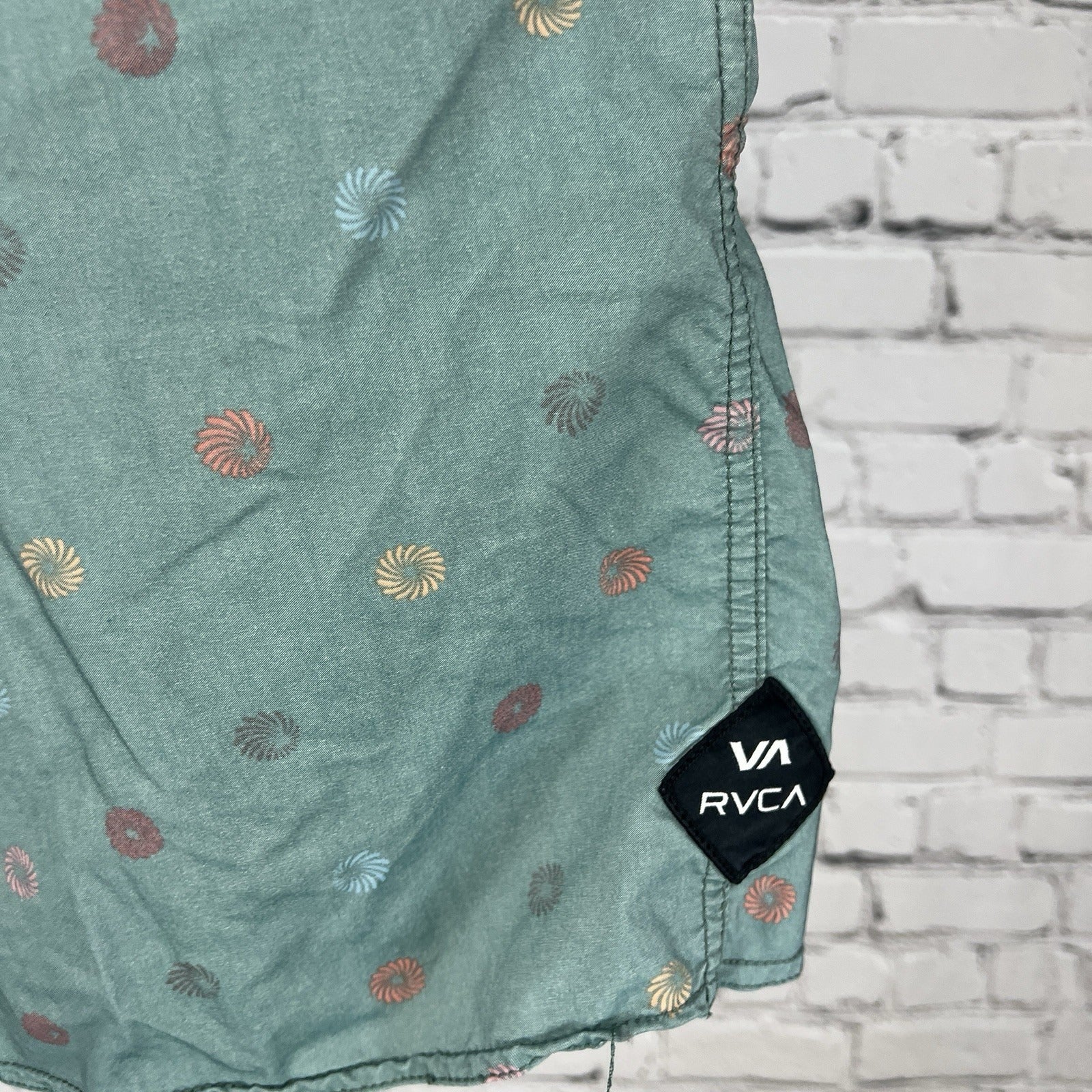 RVCA Nature Green Board Shorts Swim Trunks Beach Surfwear Drawstring Men’s 32